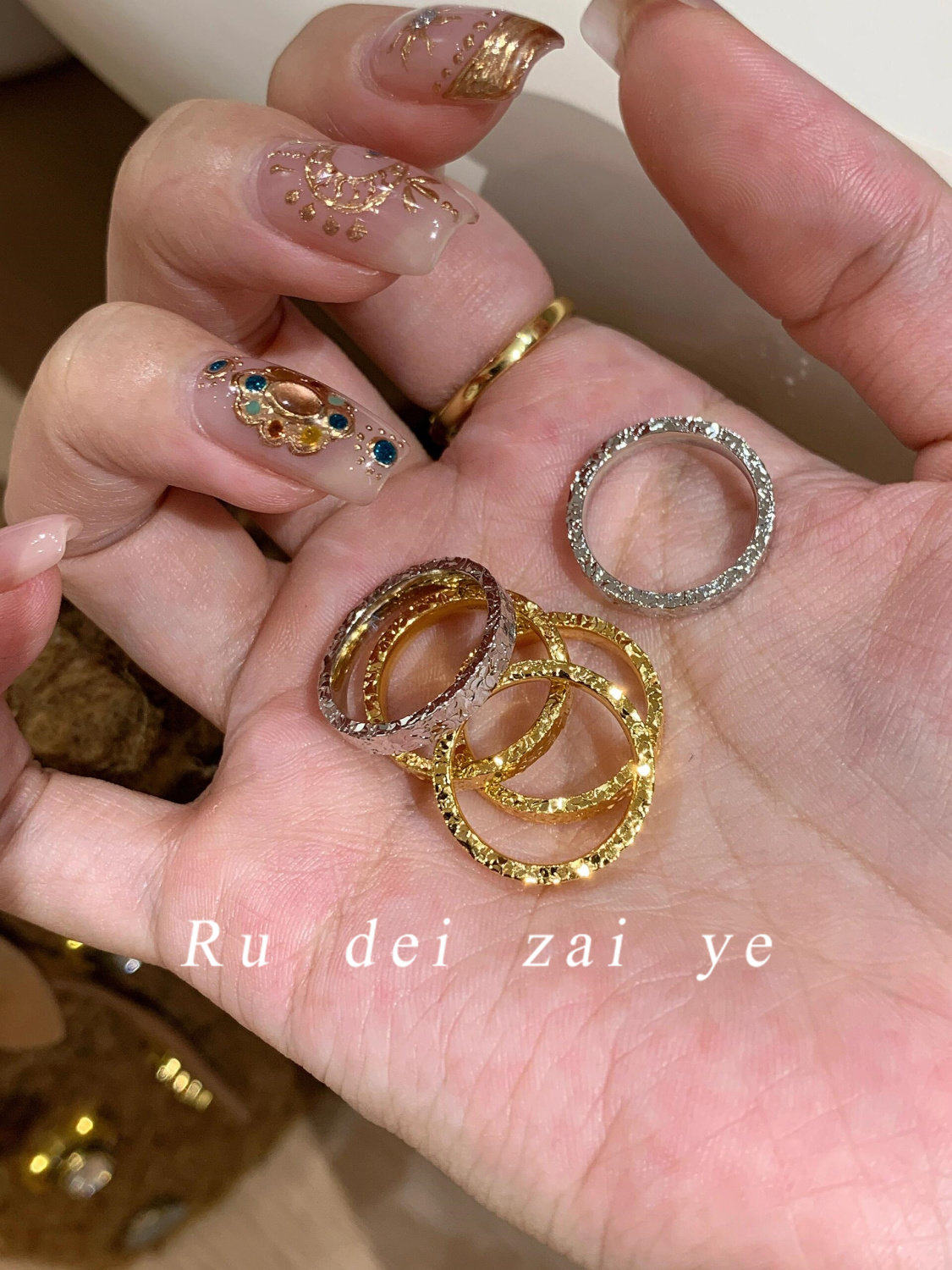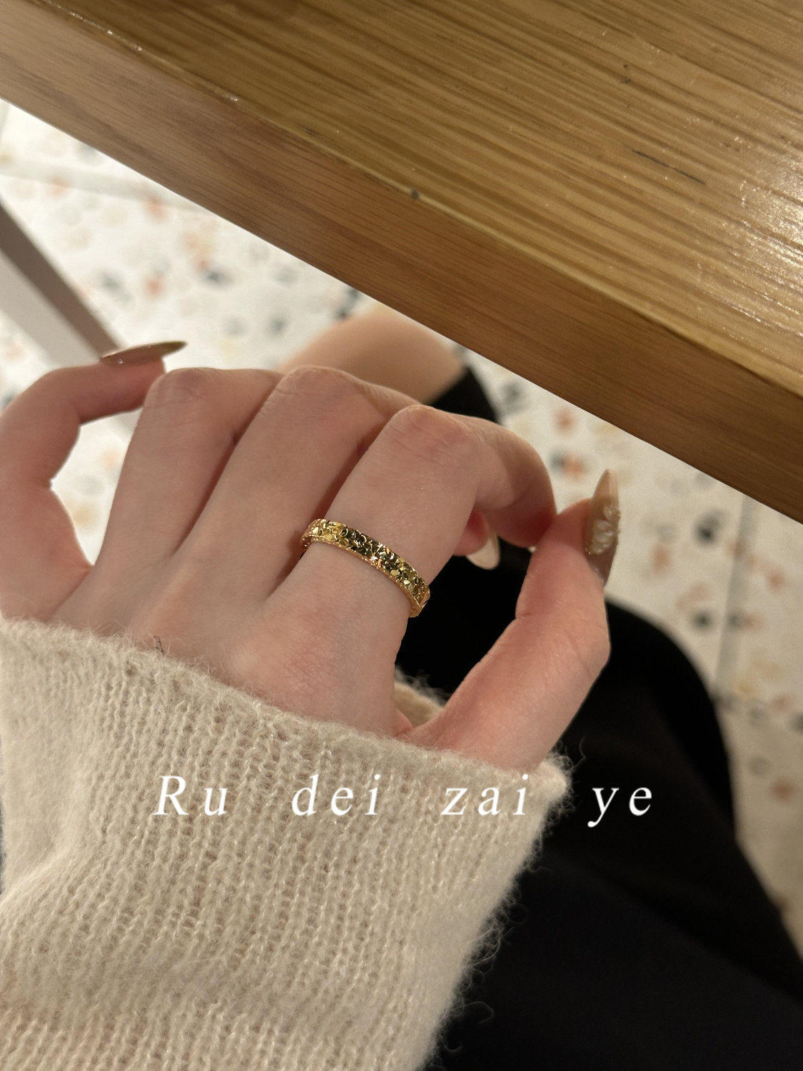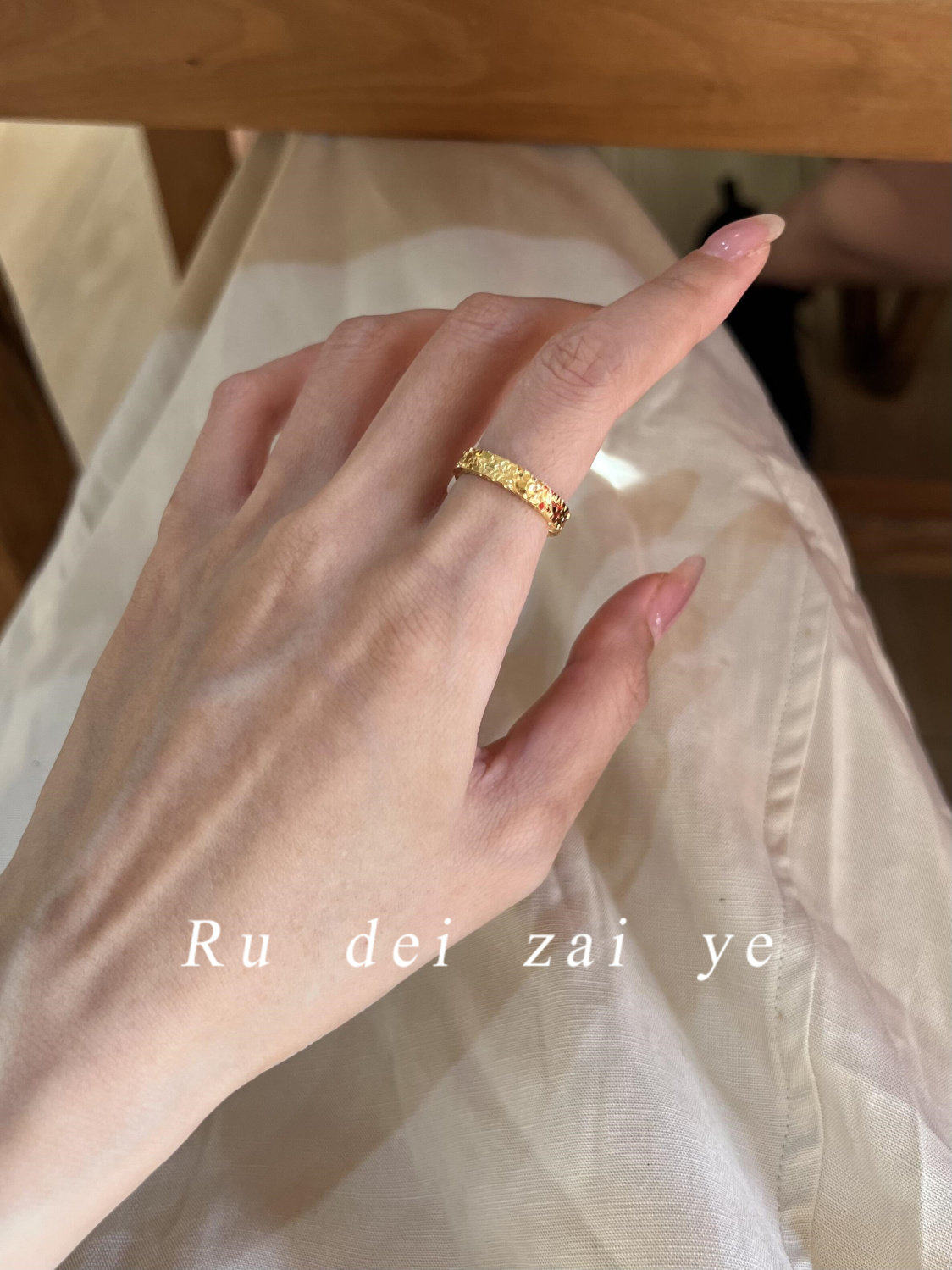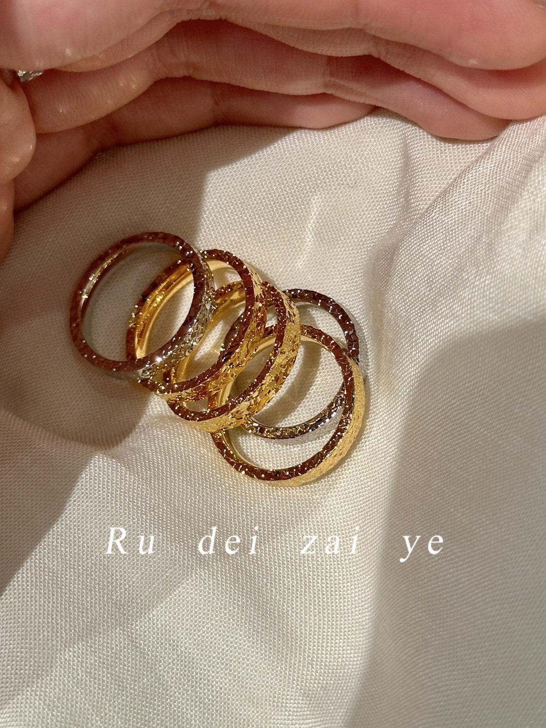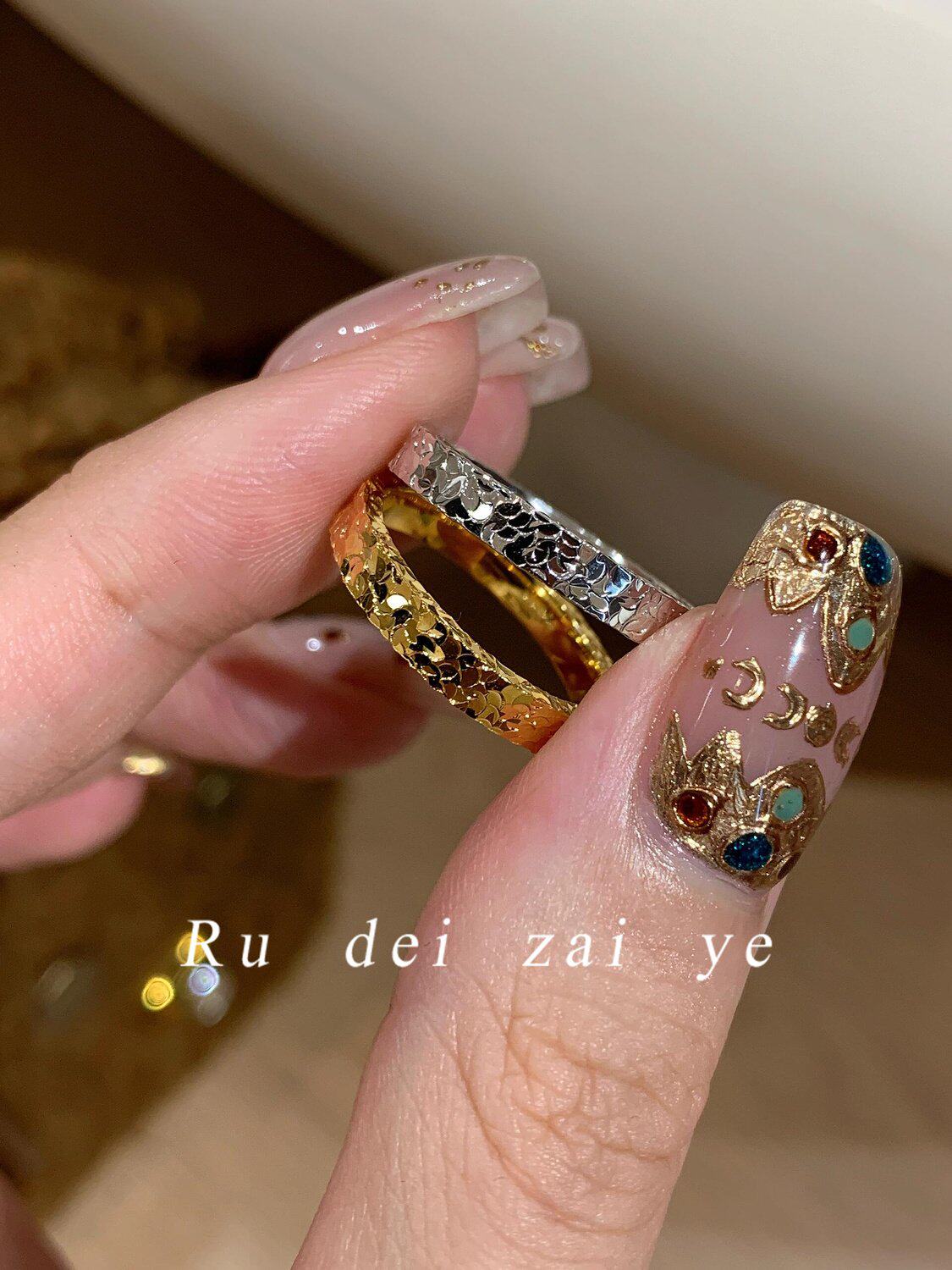 如蝶在野 碎冰冰超閃素圈高保色戒指中式復古高級感精緻百搭戒指