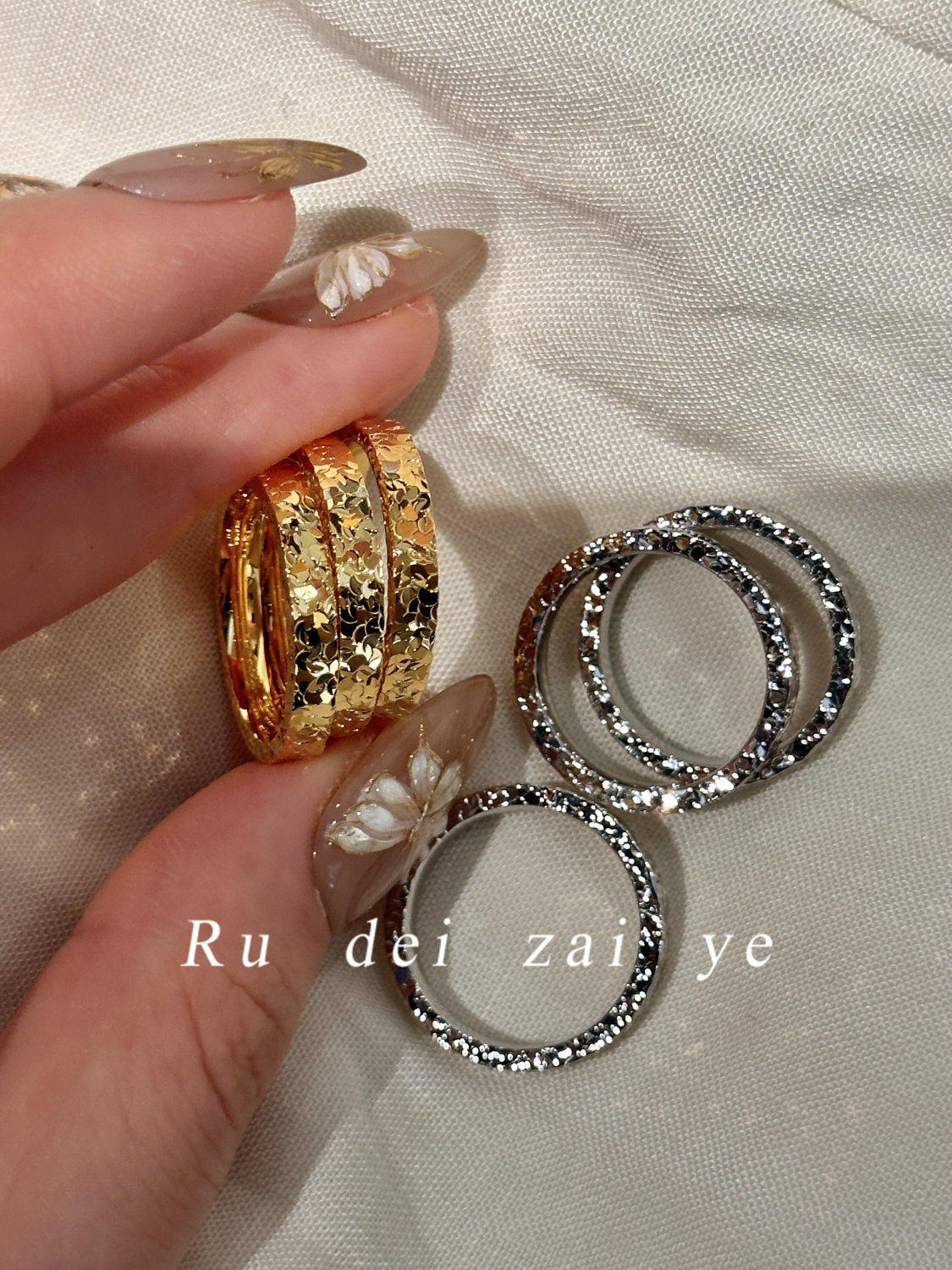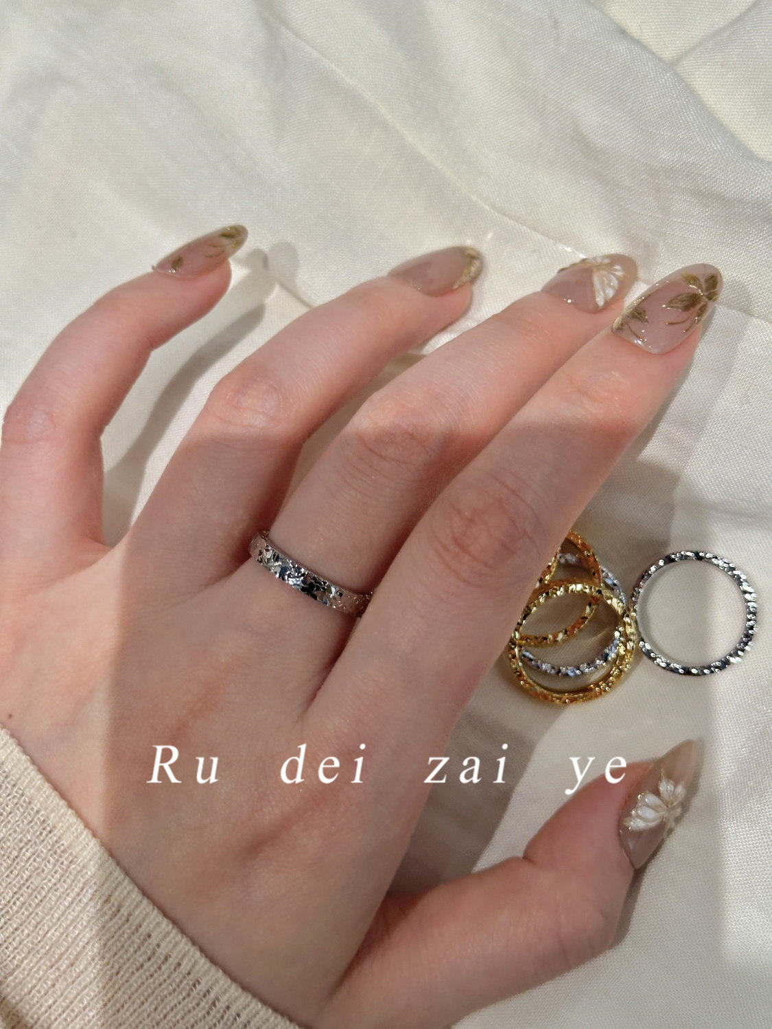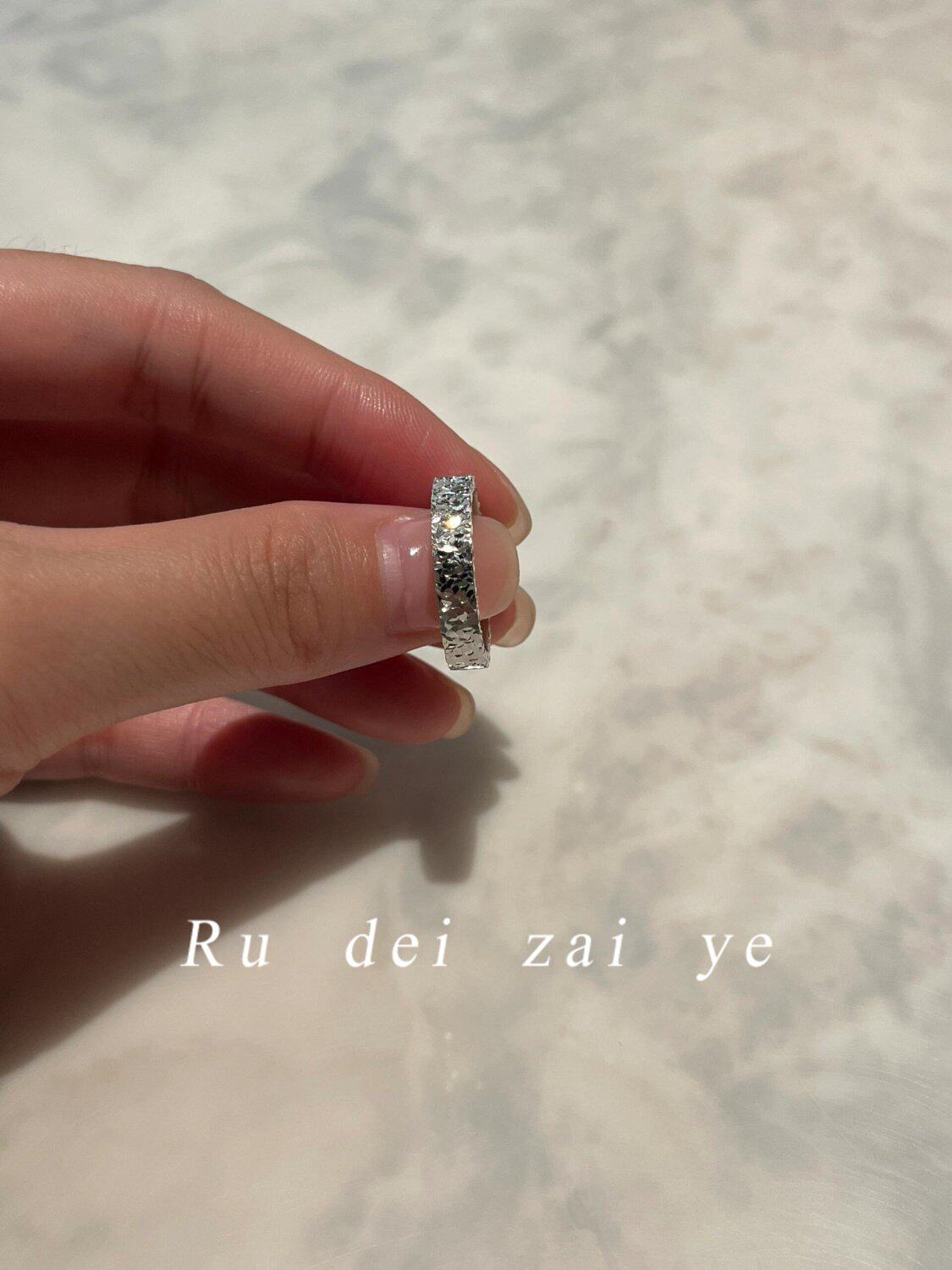 如蝶在野  碎冰冰超閃素圈高保色戒指中式復古高級感精緻百搭戒指