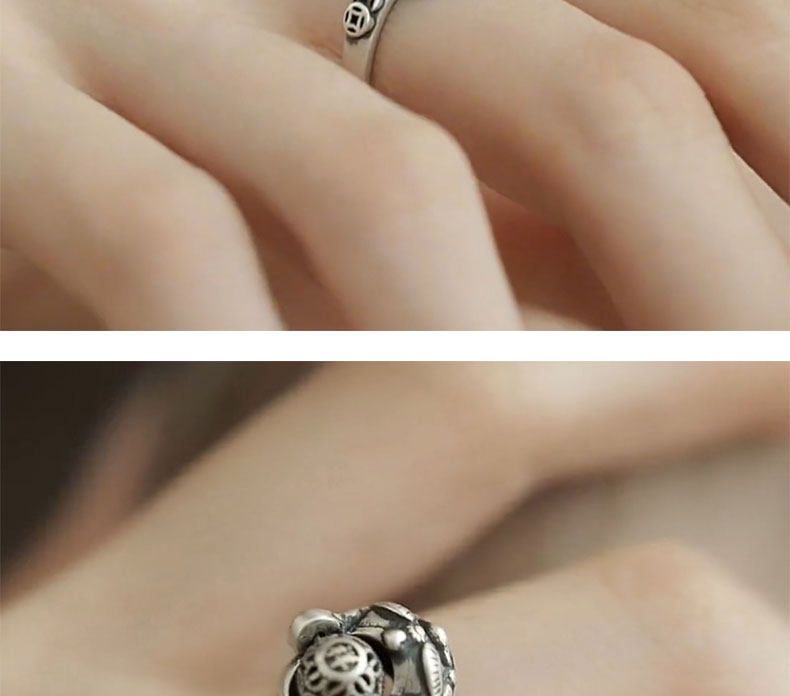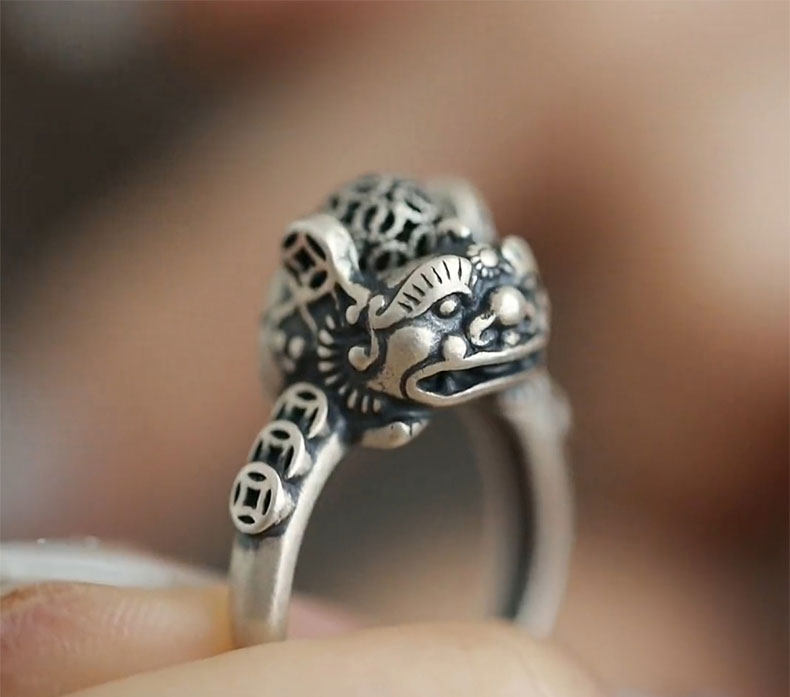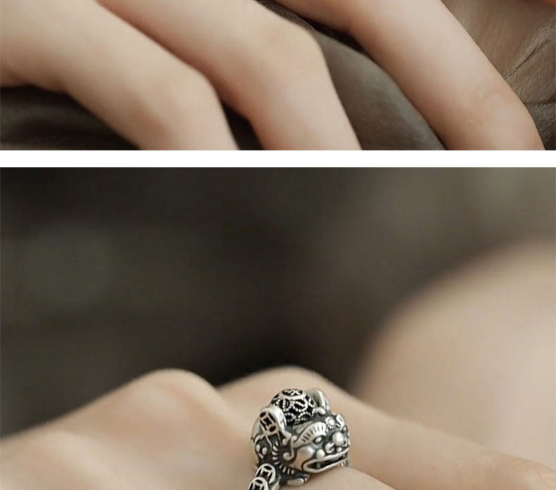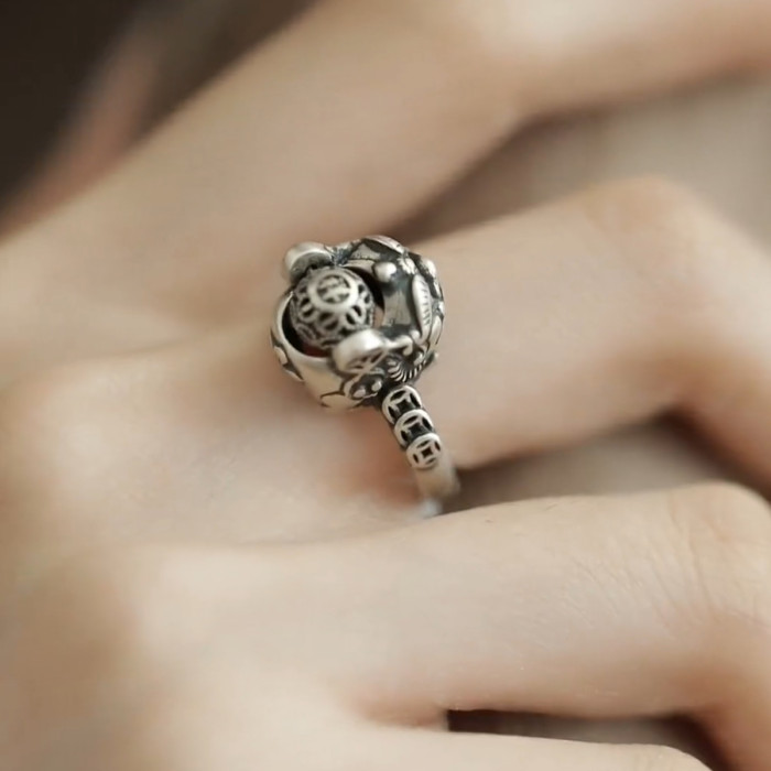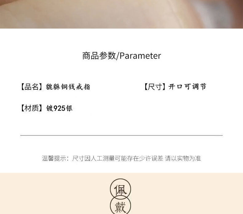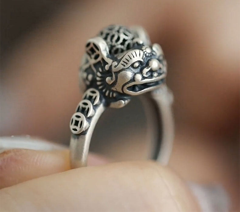 銅錢貔貅S925銀戒指女士設計感小衆復古做舊國風招財轉運活口指環