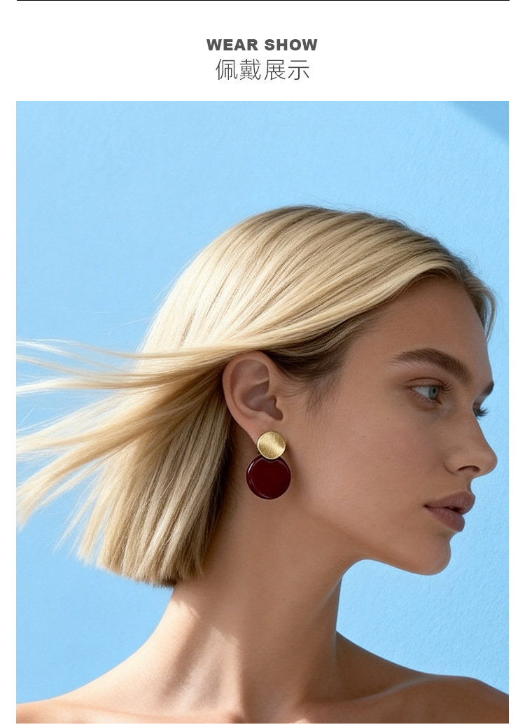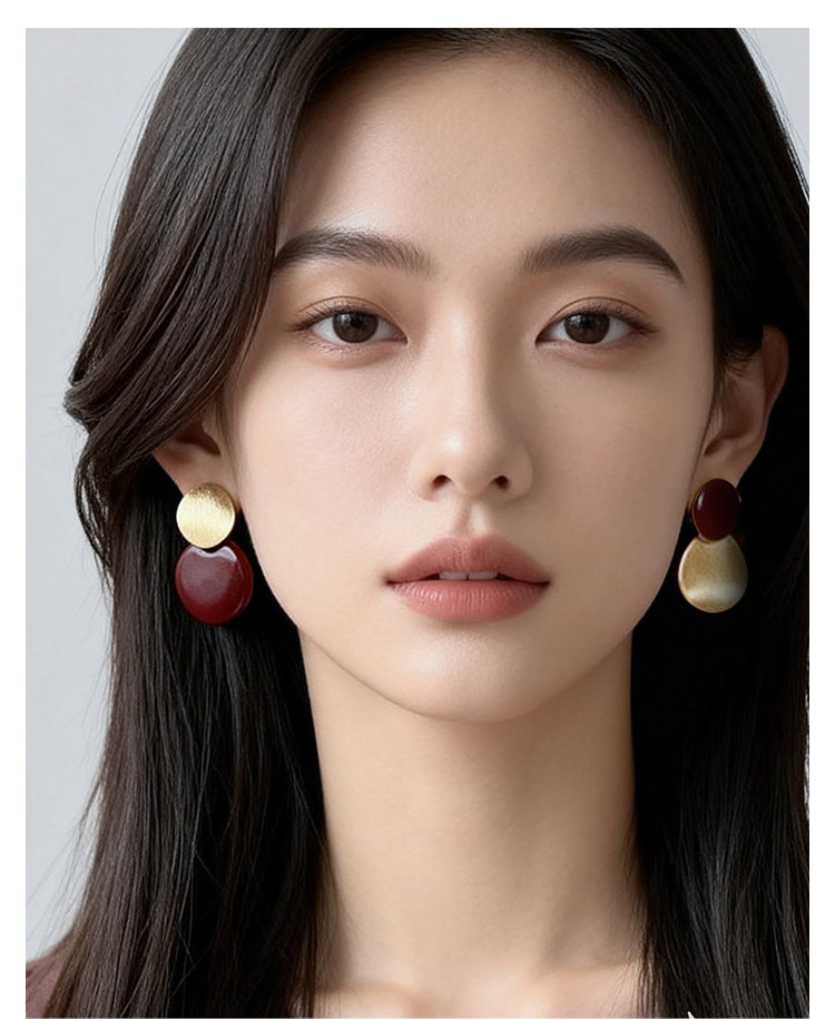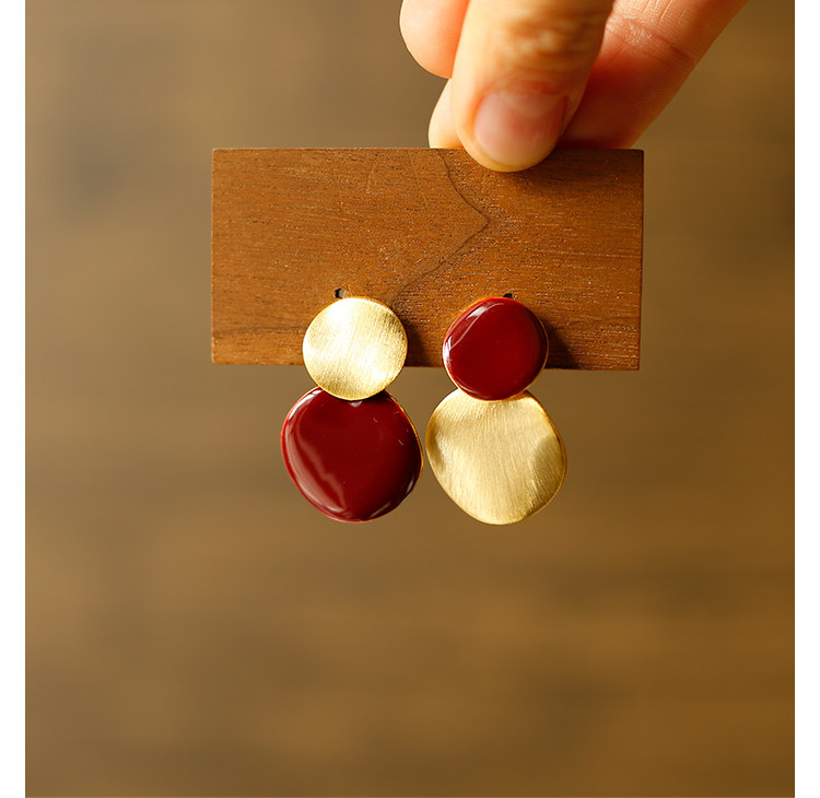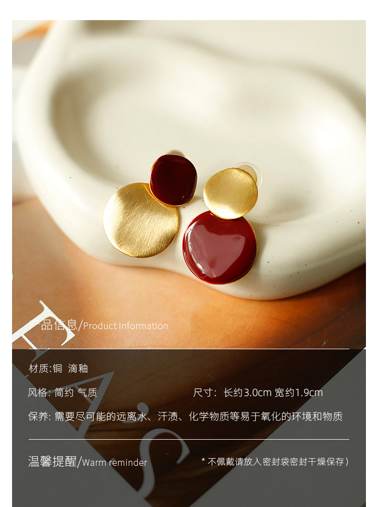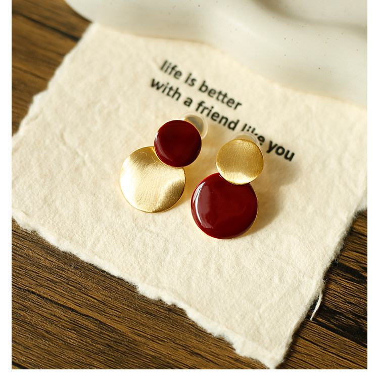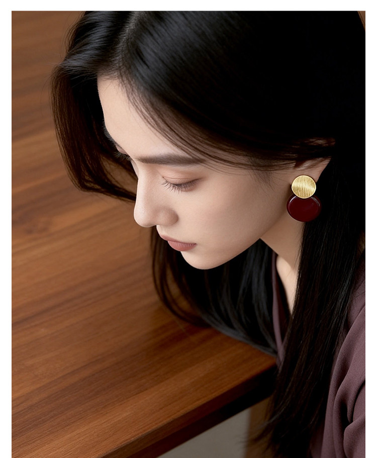 秋冬氛圍感拉絲啞光紅色圓盤耳夾小衆設計感方圓臉氣質無耳洞耳飾