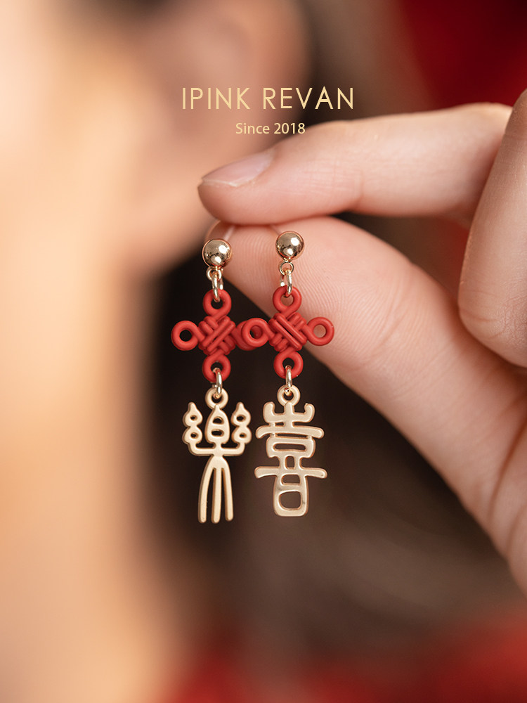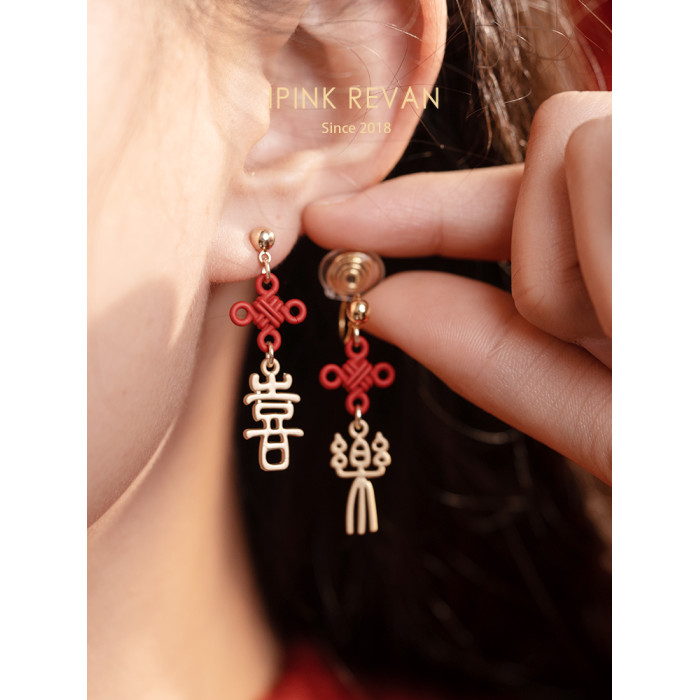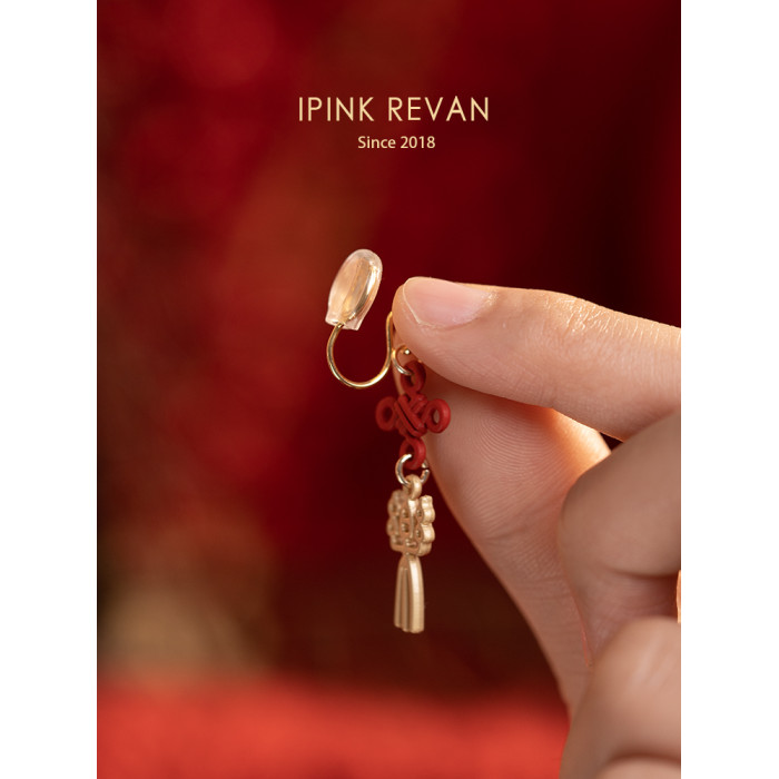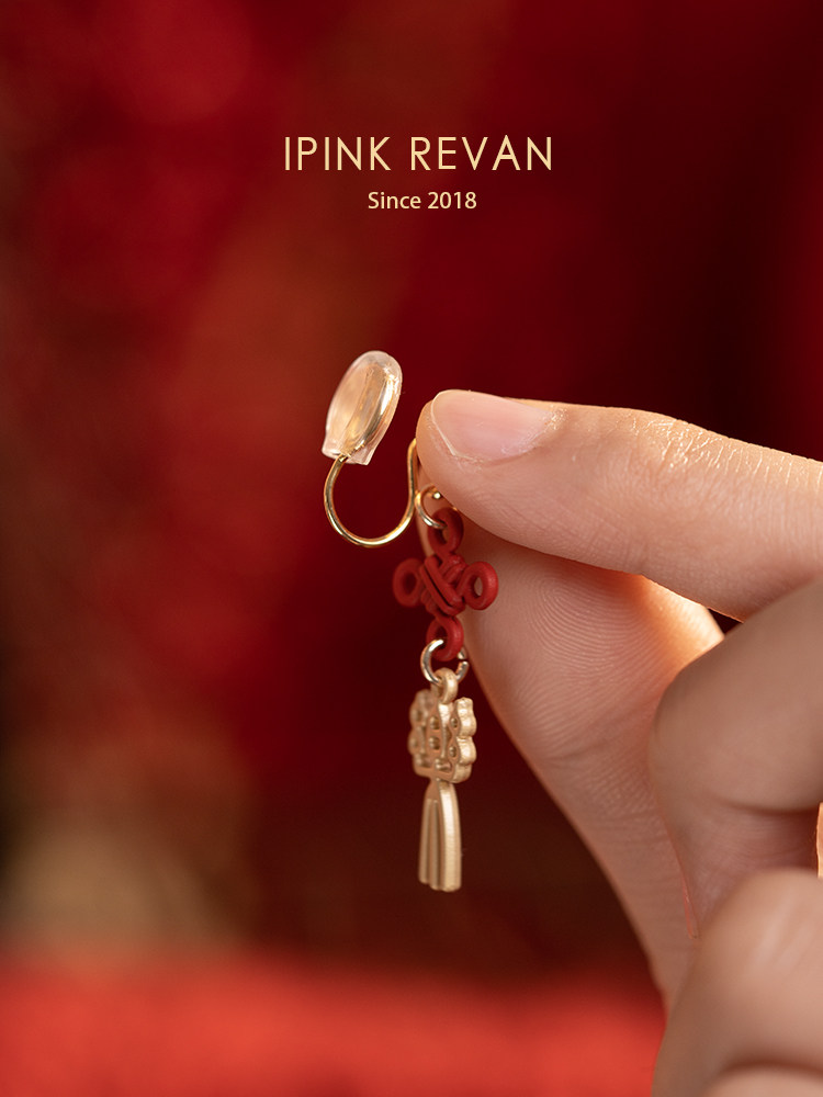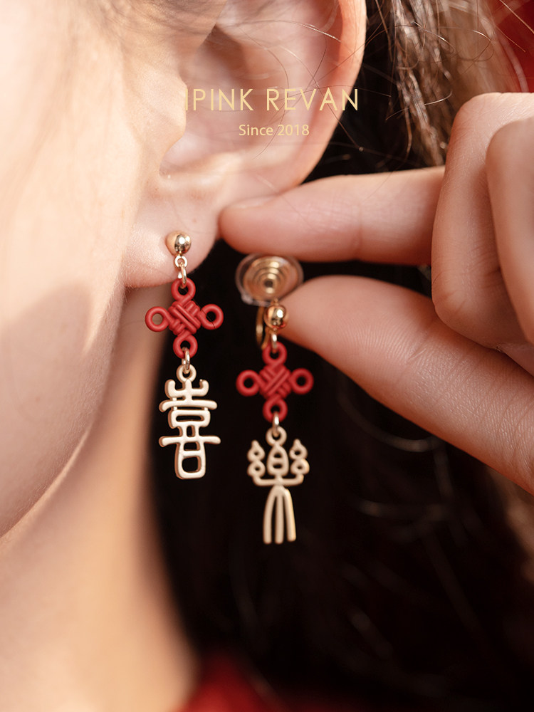 IPINK原創喜樂訂婚耳飾喜慶紅色耳夾無耳洞女故宮上新了結婚耳飾