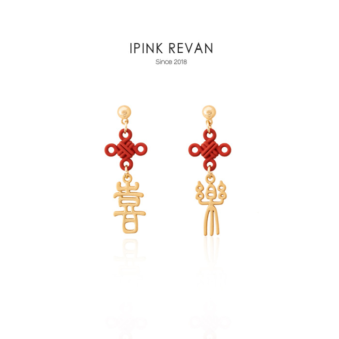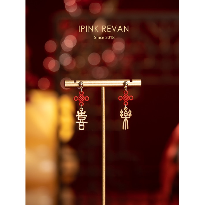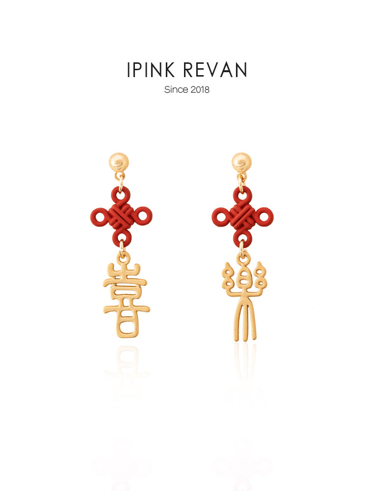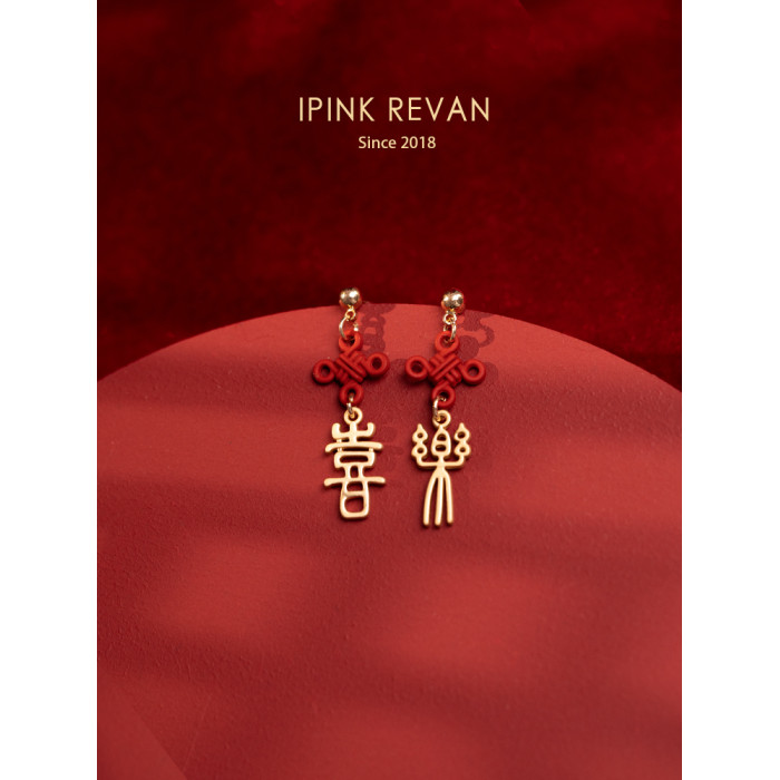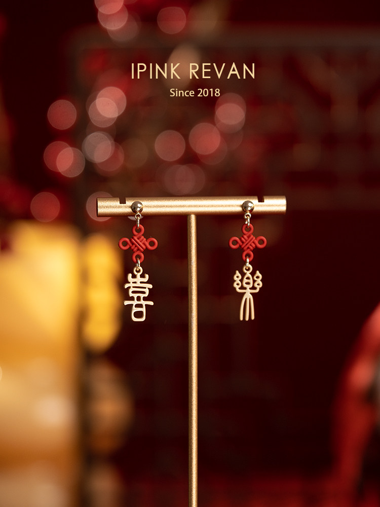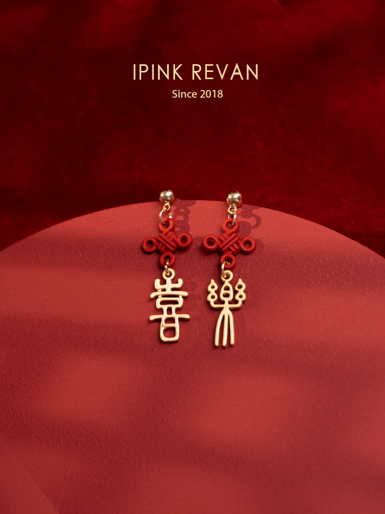 IPINK原創喜樂訂婚耳飾喜慶紅色耳夾無耳洞女故宮上新了結婚耳飾