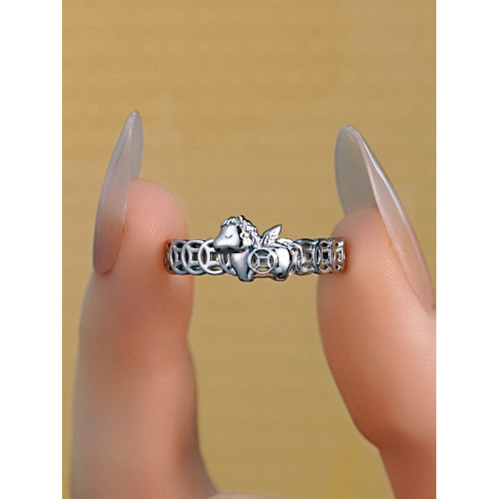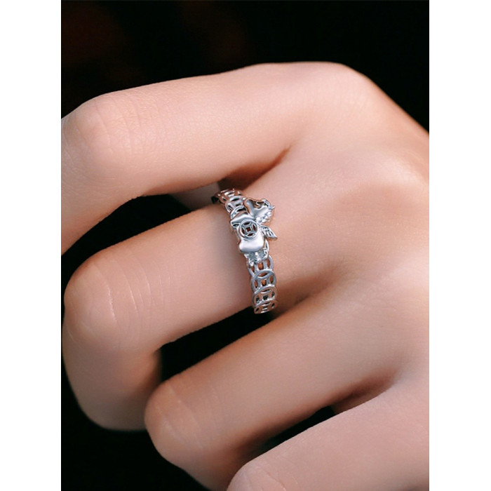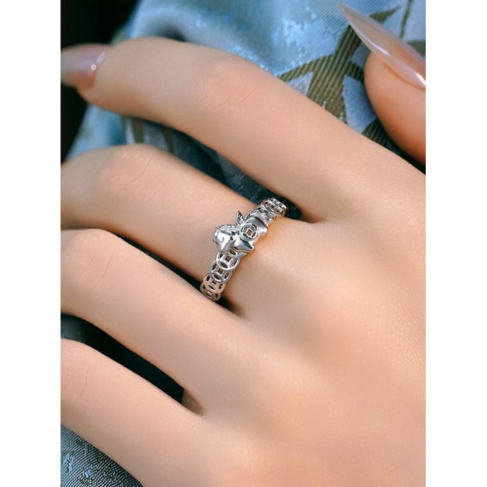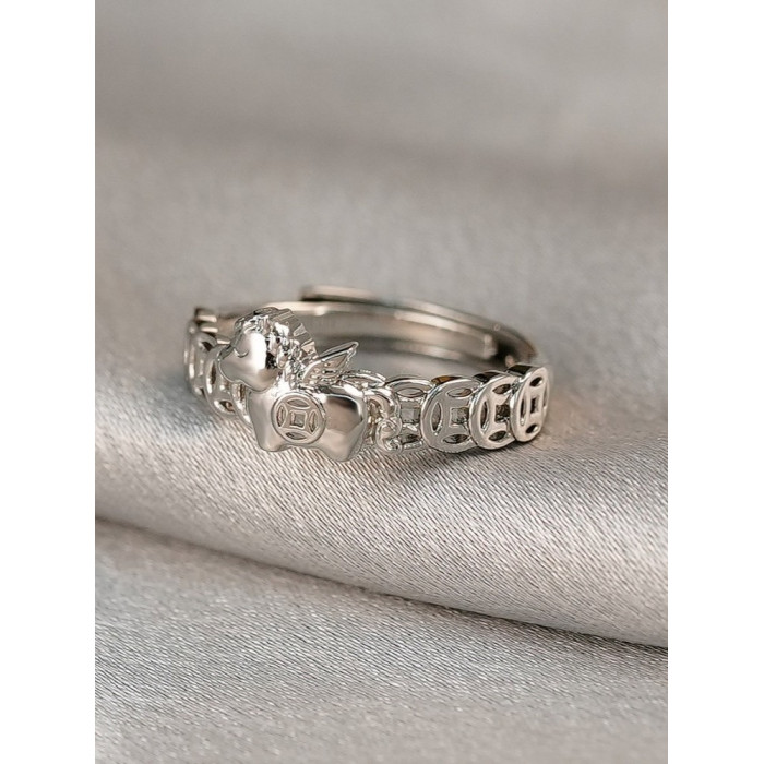 銀色馬上有錢銅錢戒指女小衆設計感2026新款本命年招財運食指指環