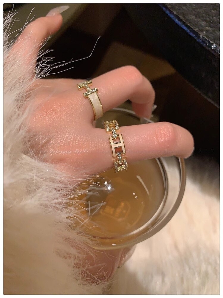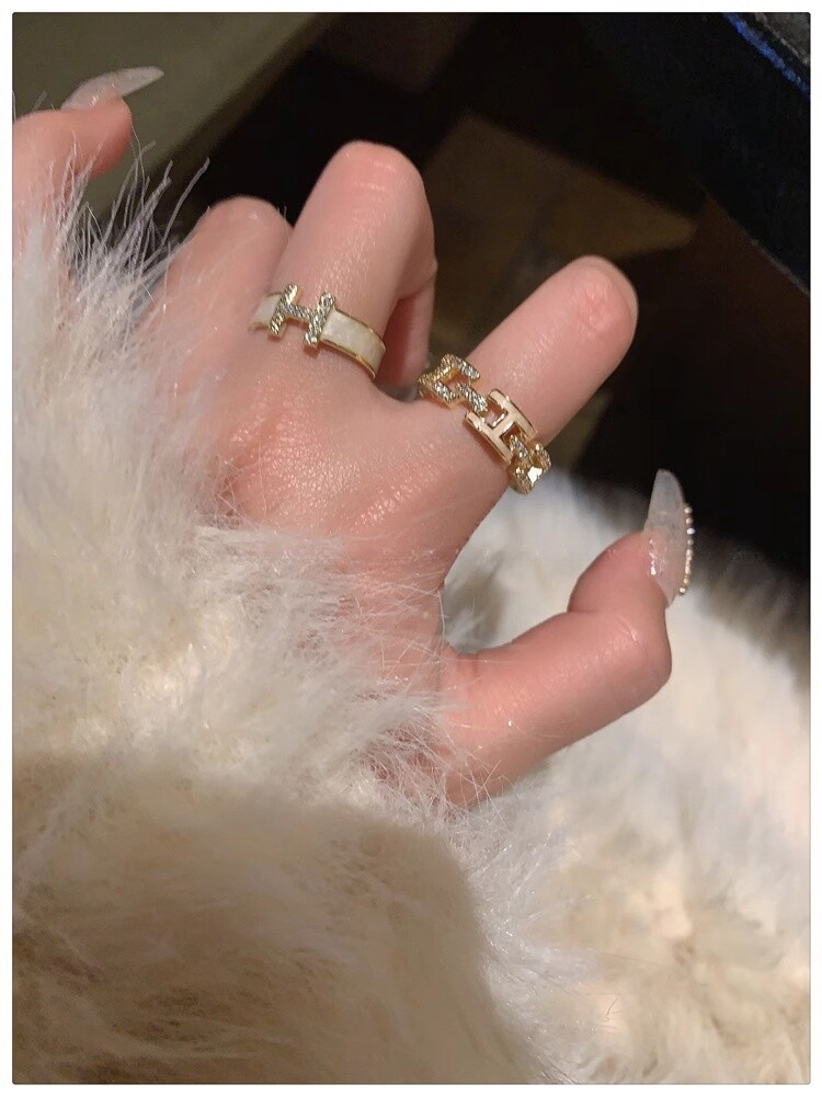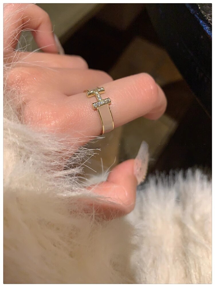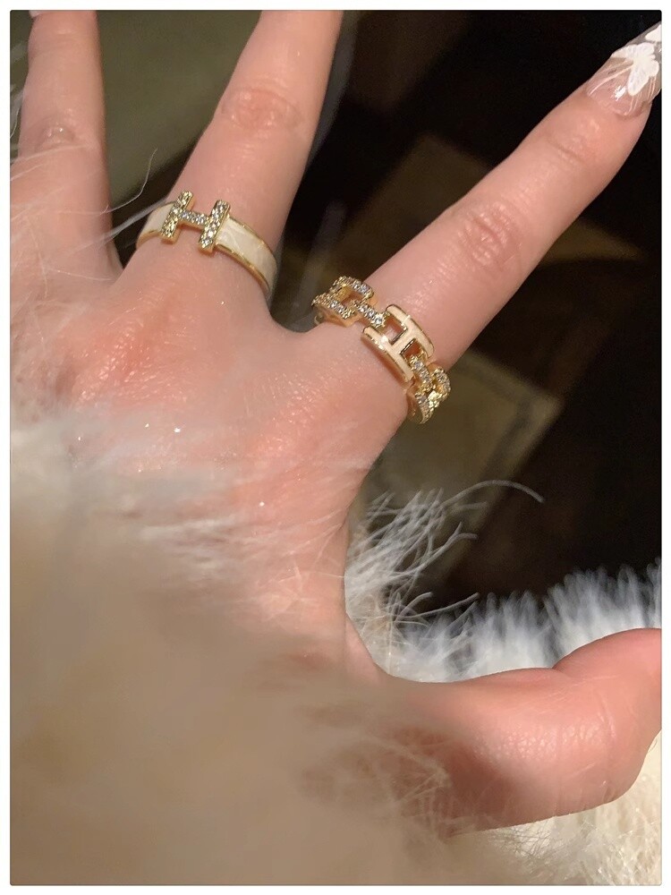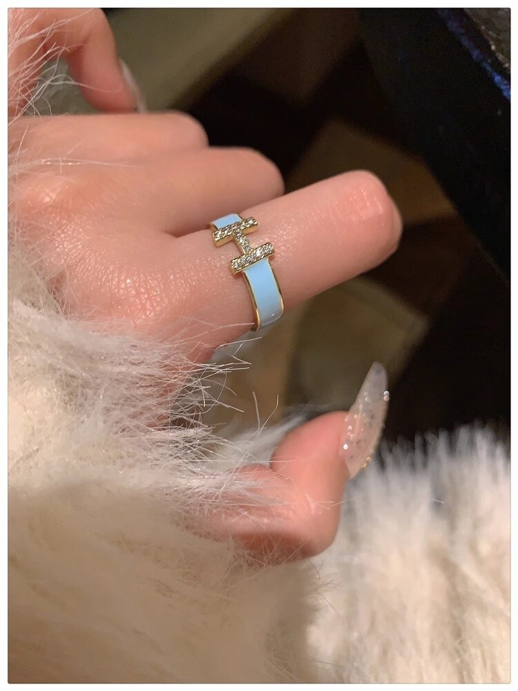 H字母戒指~鍍真金!琺瑯滴油高級感輕奢開口食指戒獨特小衆指環女