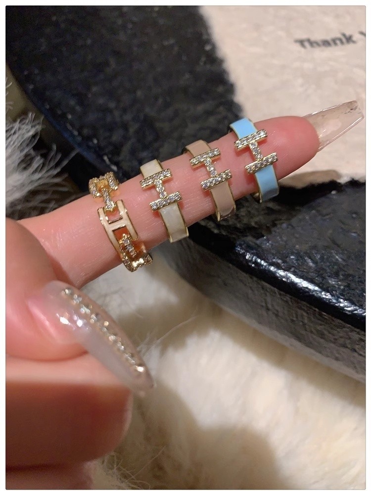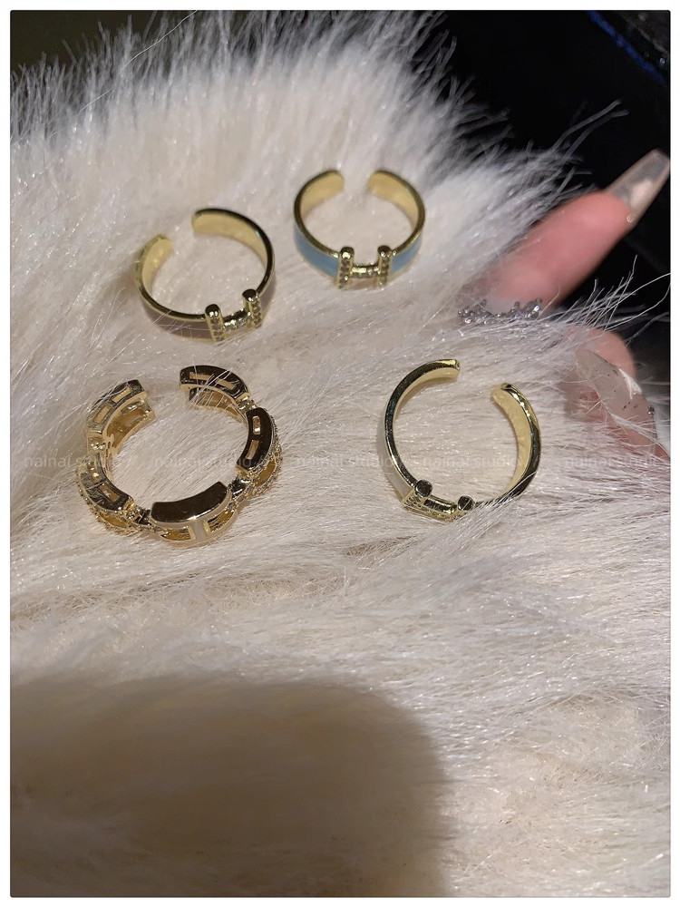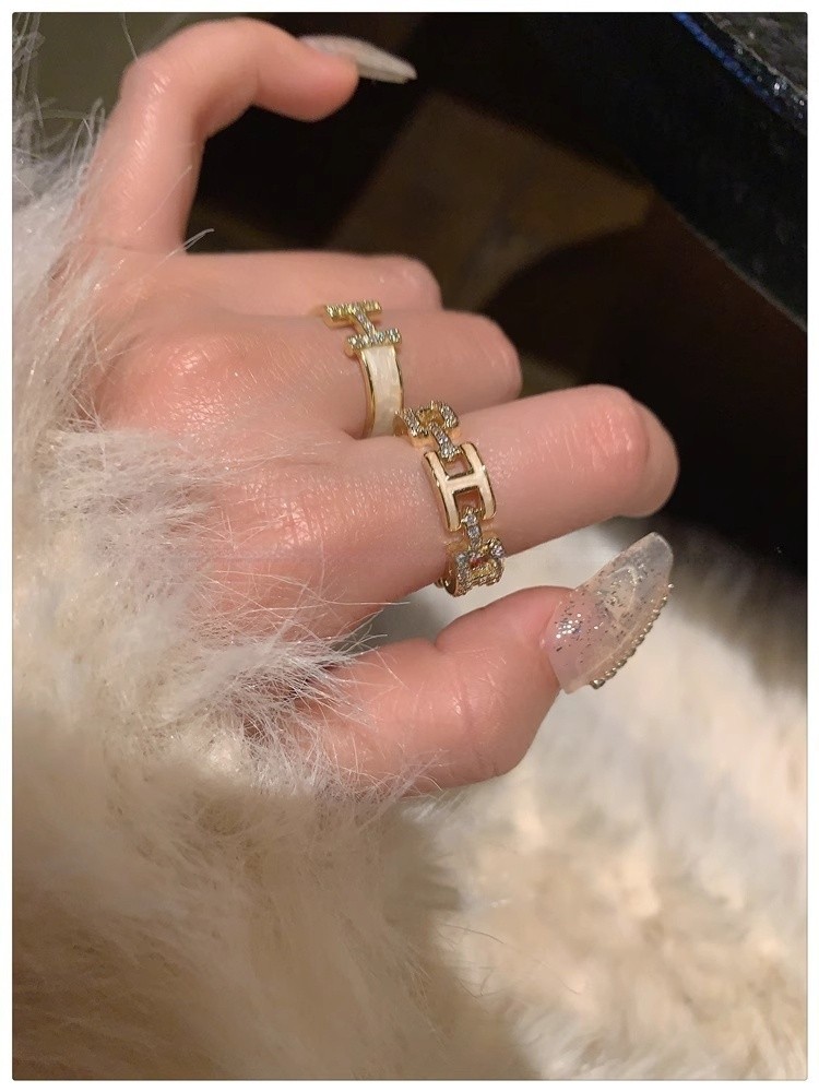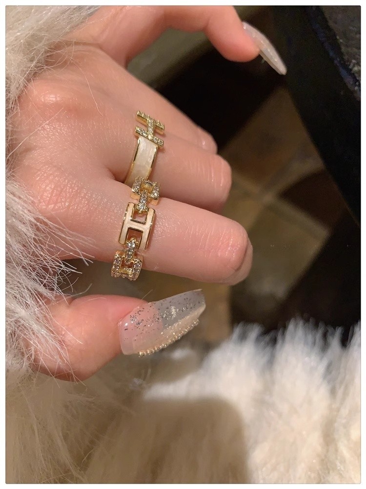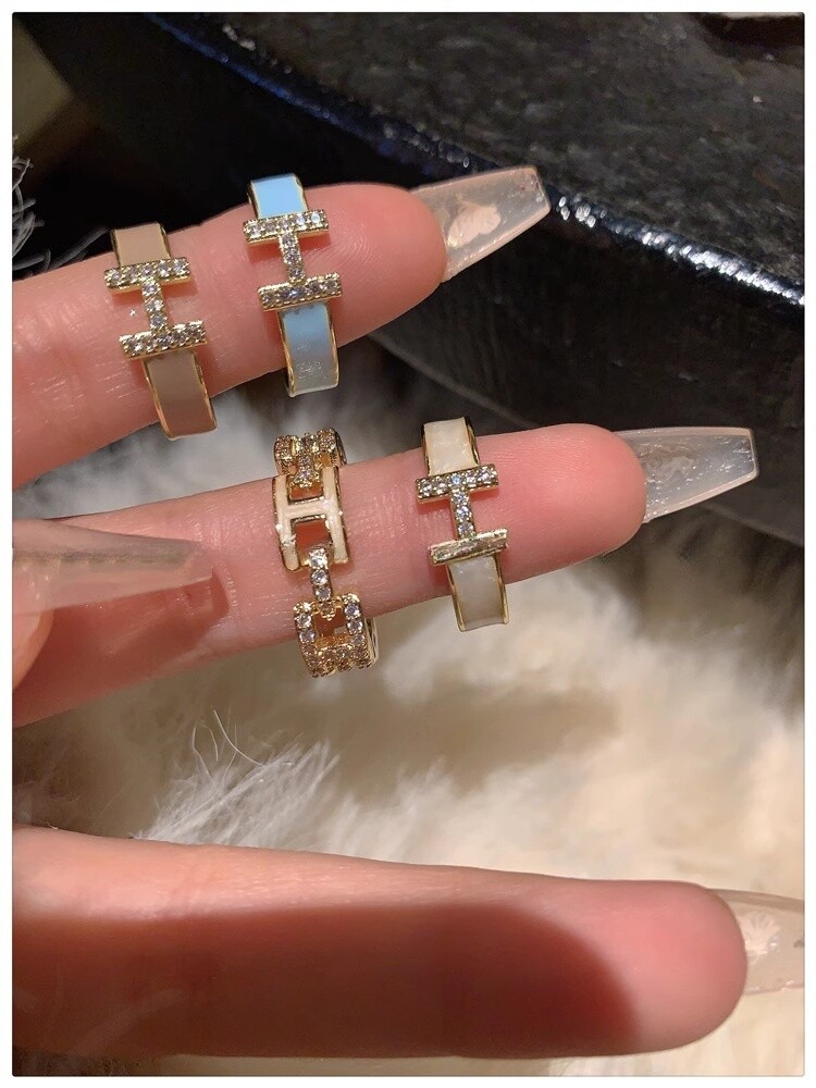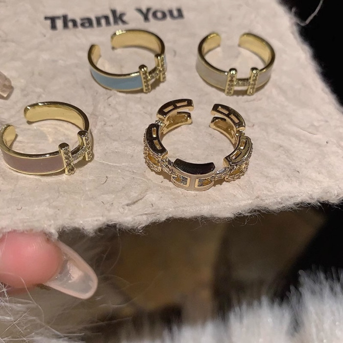 H字母戒指~鍍真金!琺瑯滴油高級感輕奢開口食指戒獨特小衆指環女