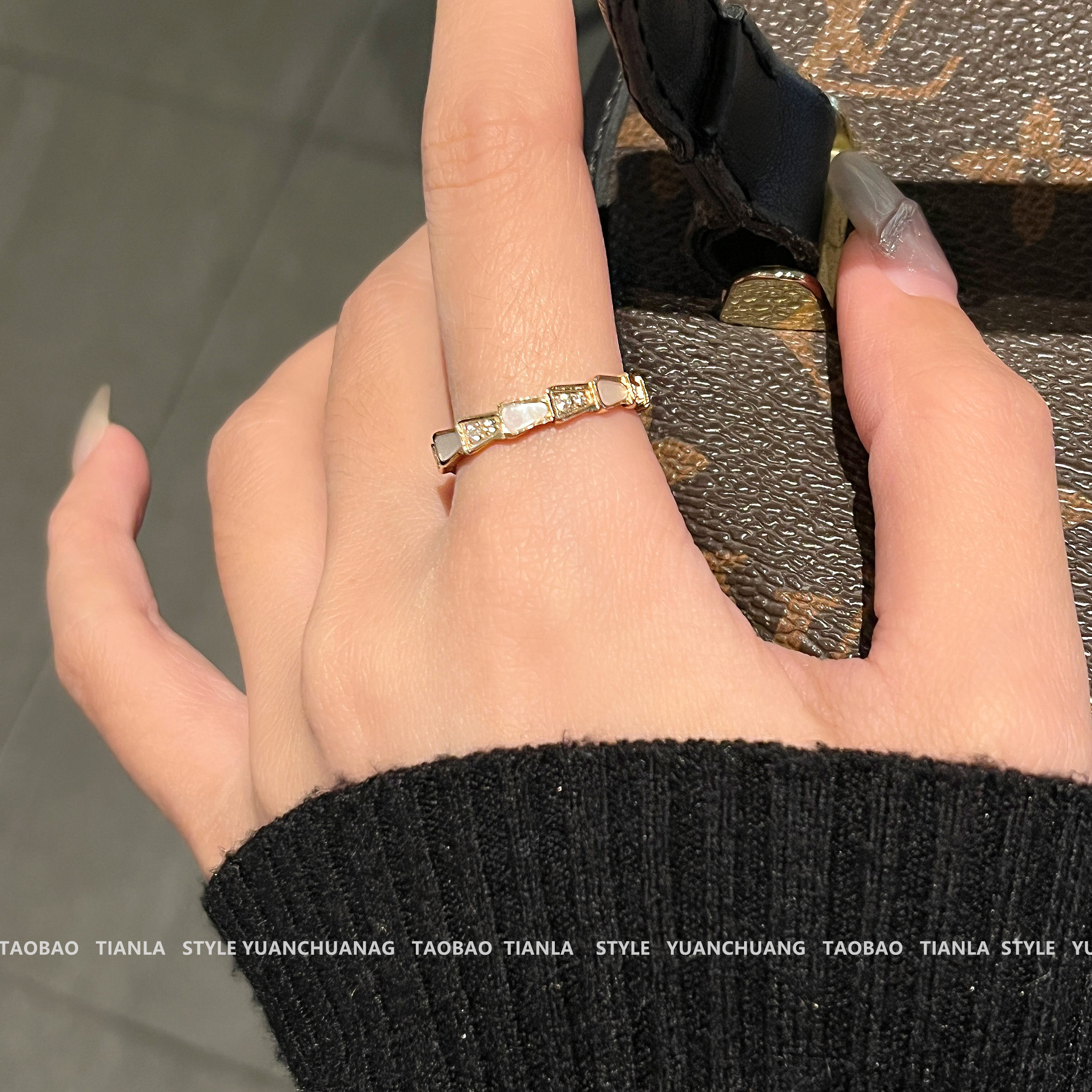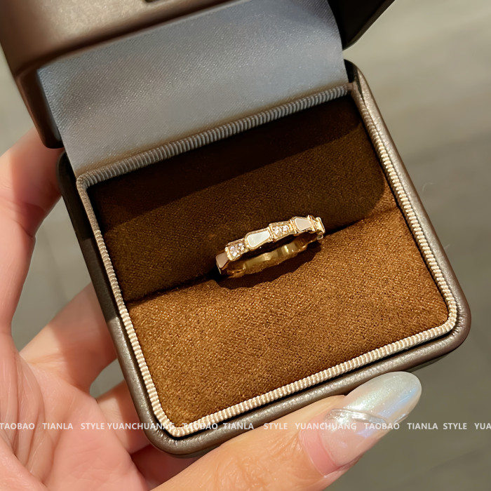 高版本~鈦鋼不掉色鍍18K金蛇骨戒指女小衆簡約高級感輕奢時尚指環