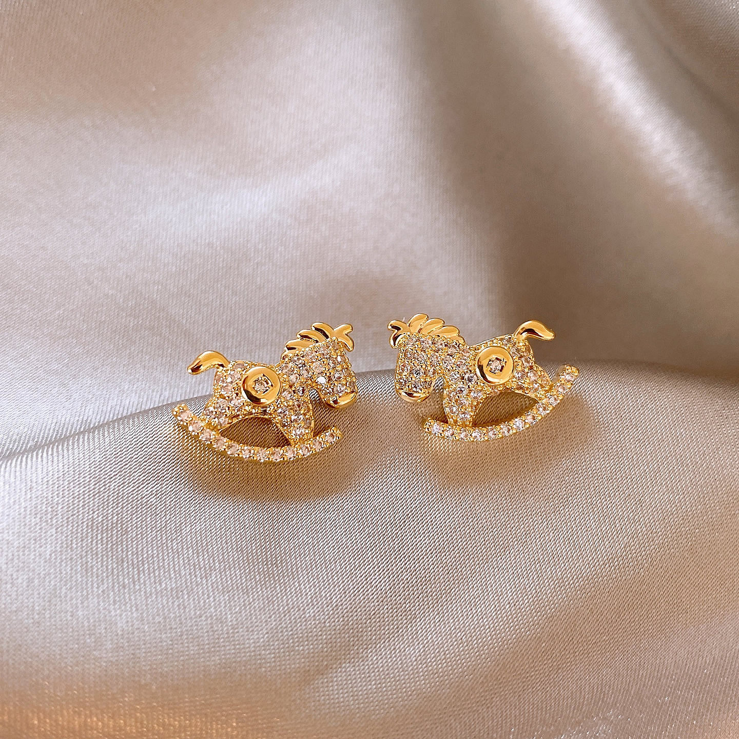 金色小馬錢幣耳釘女2026年新款爆款高級感本命年耳飾馬上有錢耳環