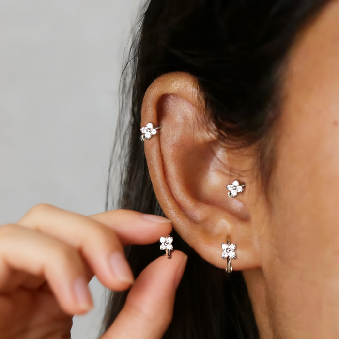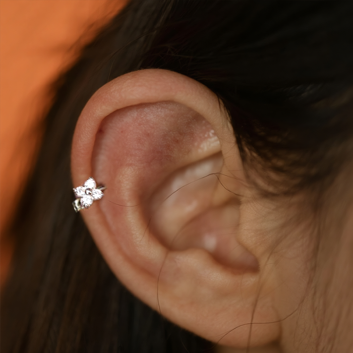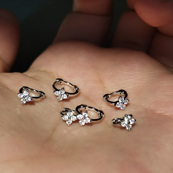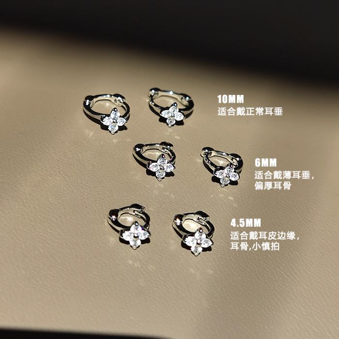 超閃微鑲四葉草耳環925銀針養耳洞耳釘耳骨釘邊緣耳圈小耳釦耳飾