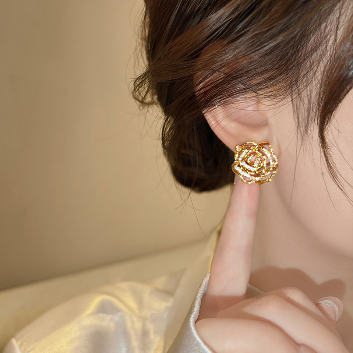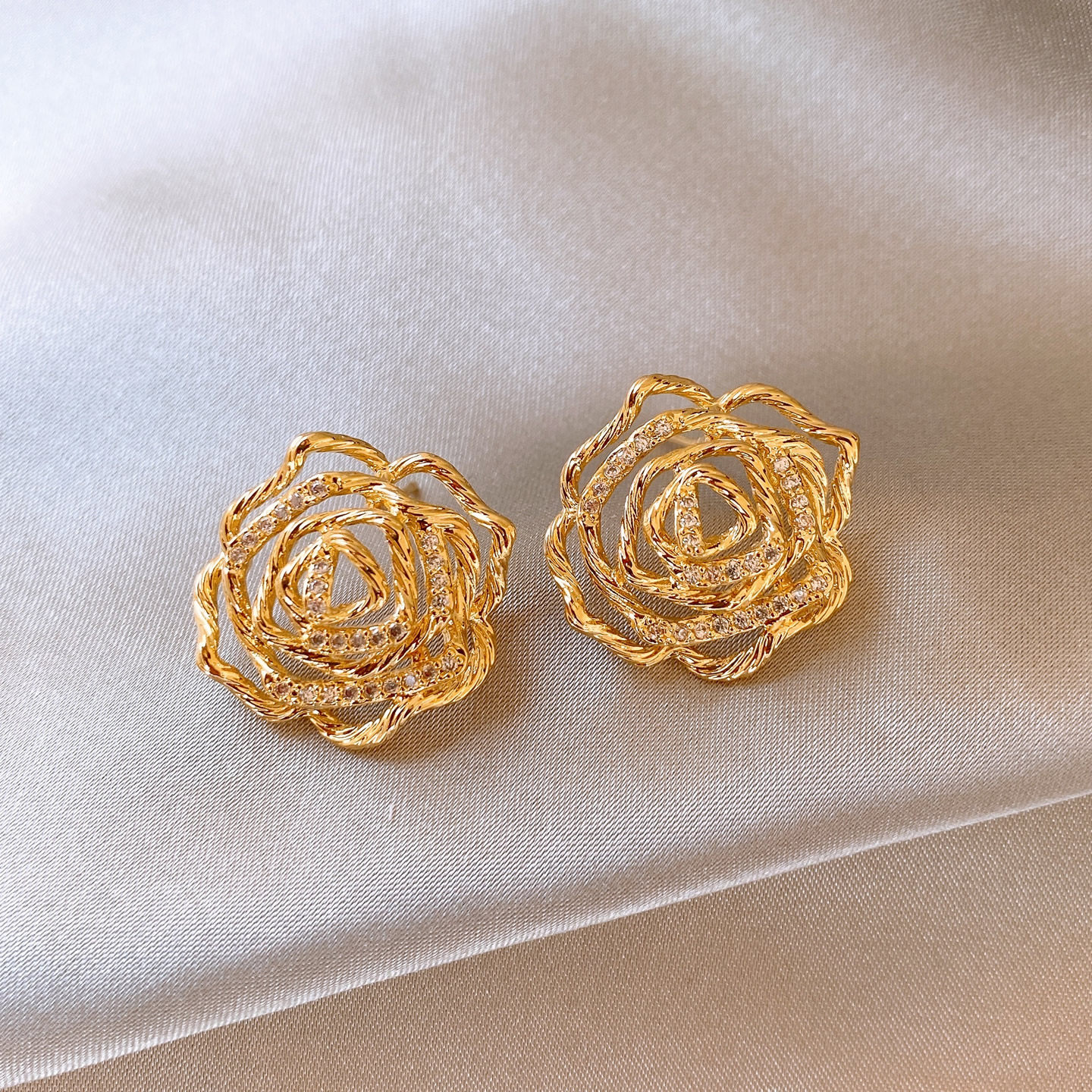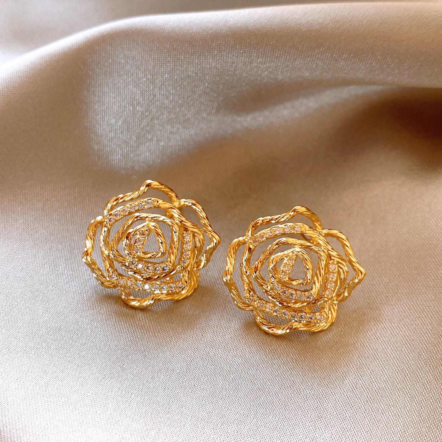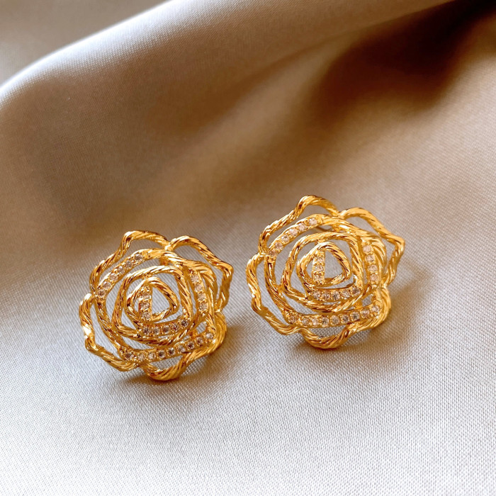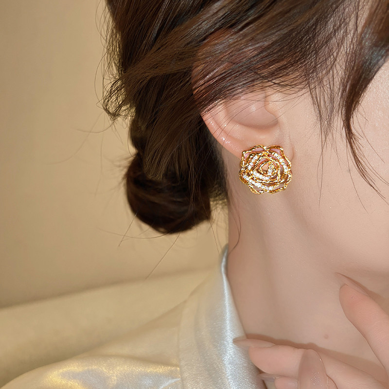 金色扭紋鏤空花朵耳釘女高級感獨特漂亮耳飾2026新款爆款秋冬耳環