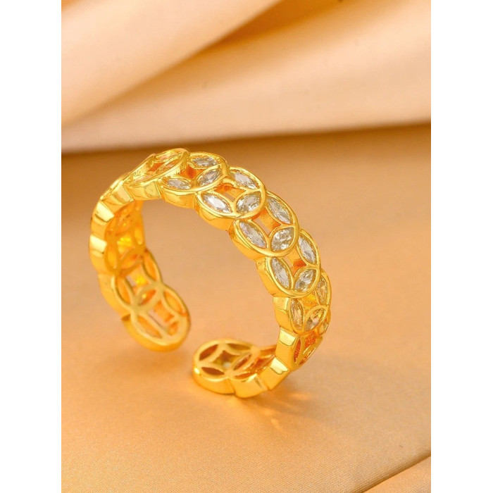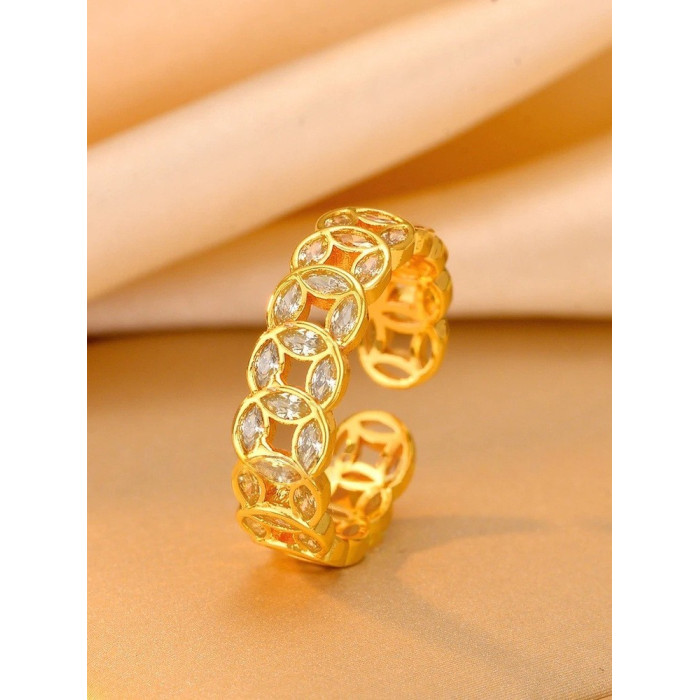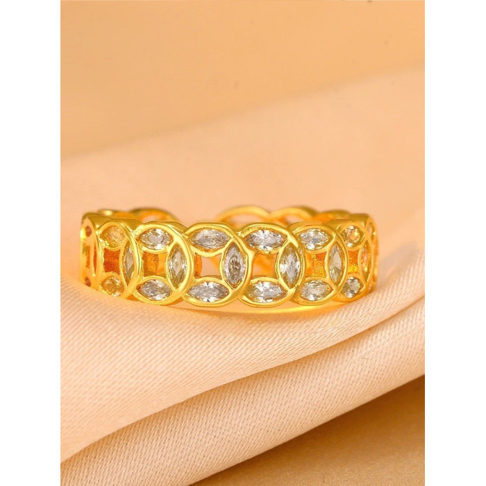 18k金新中式銅錢招財轉運戒指女款小衆設計感復古不掉色開口指環