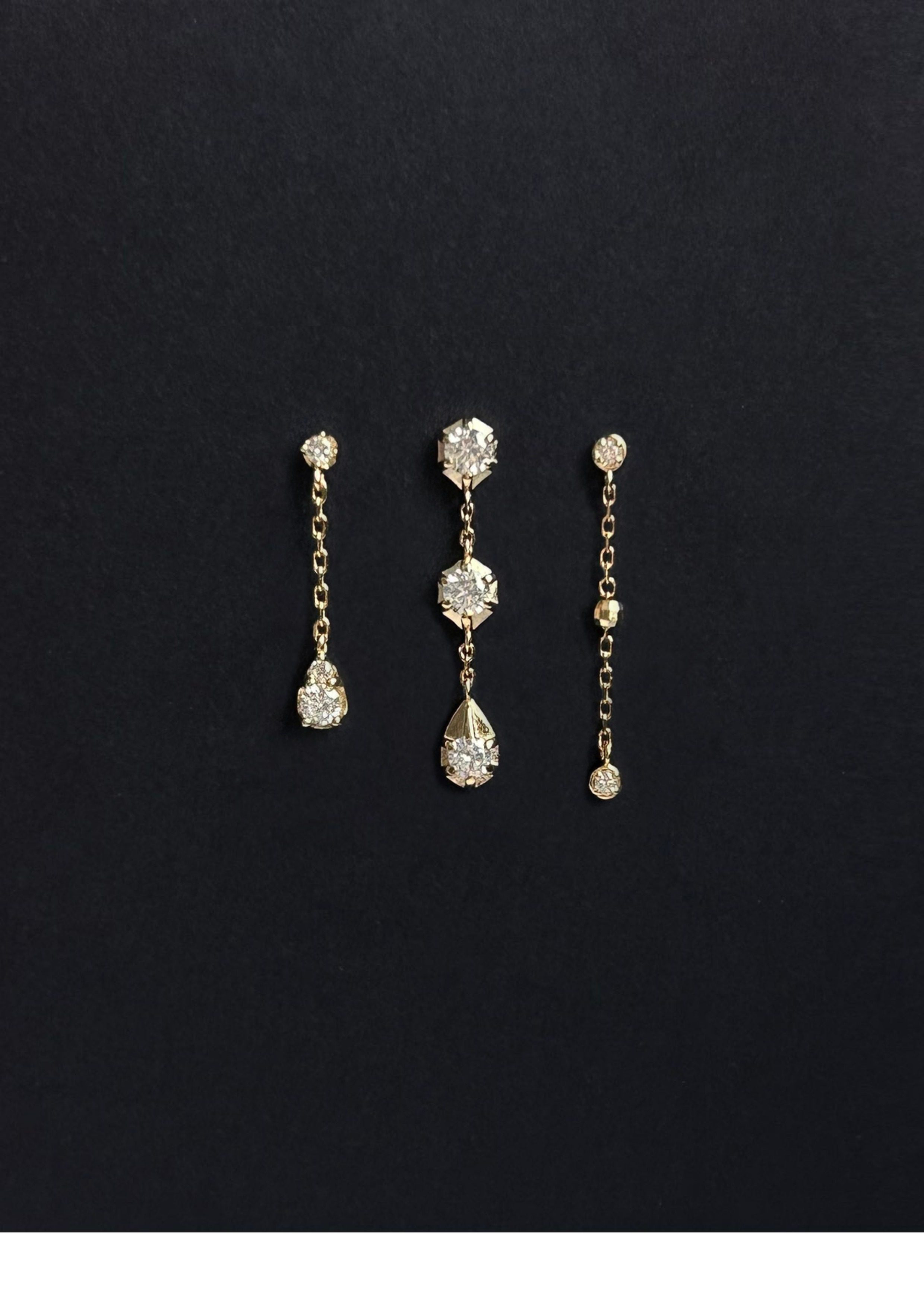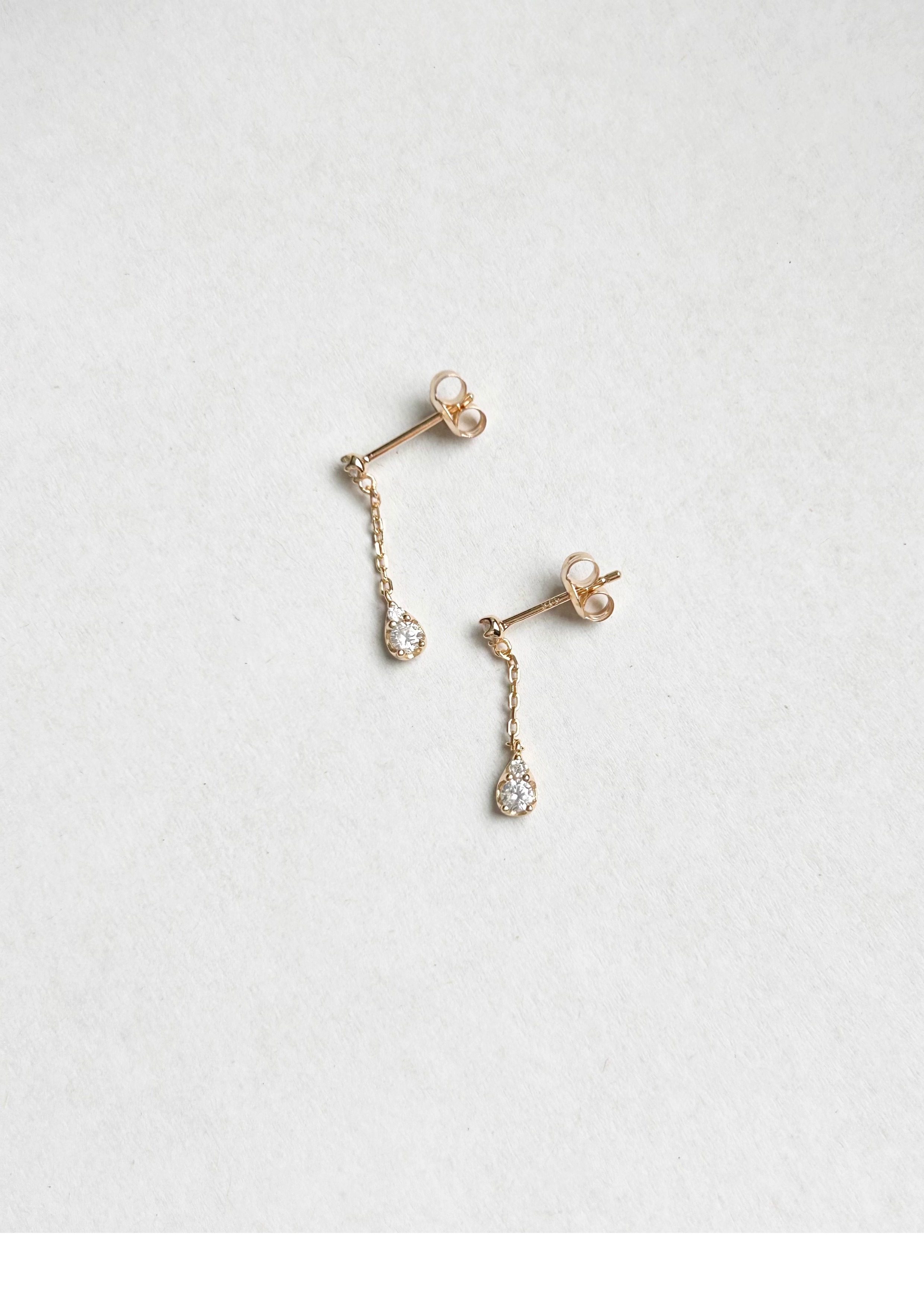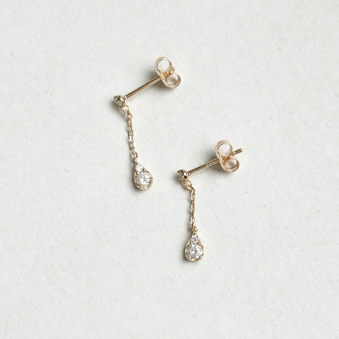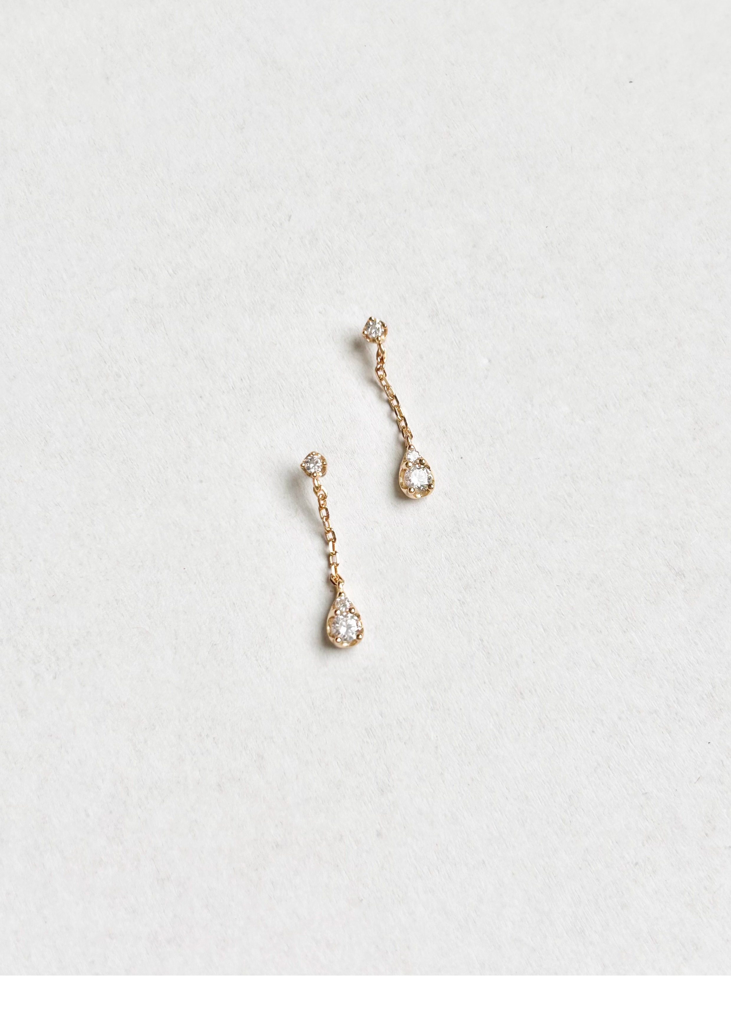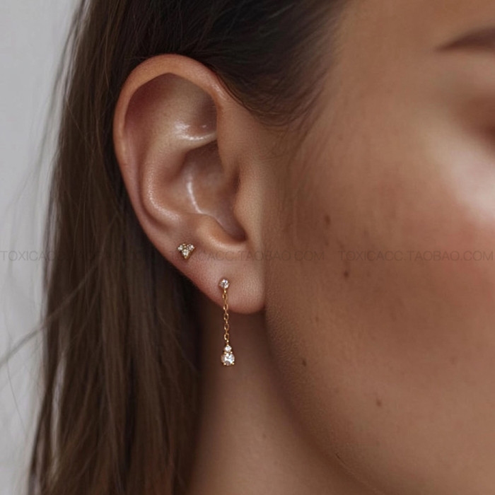 「朝露」TOXIC設計師款金色鑲鑽水滴925銀迷你精緻鏈條吊墜耳釘