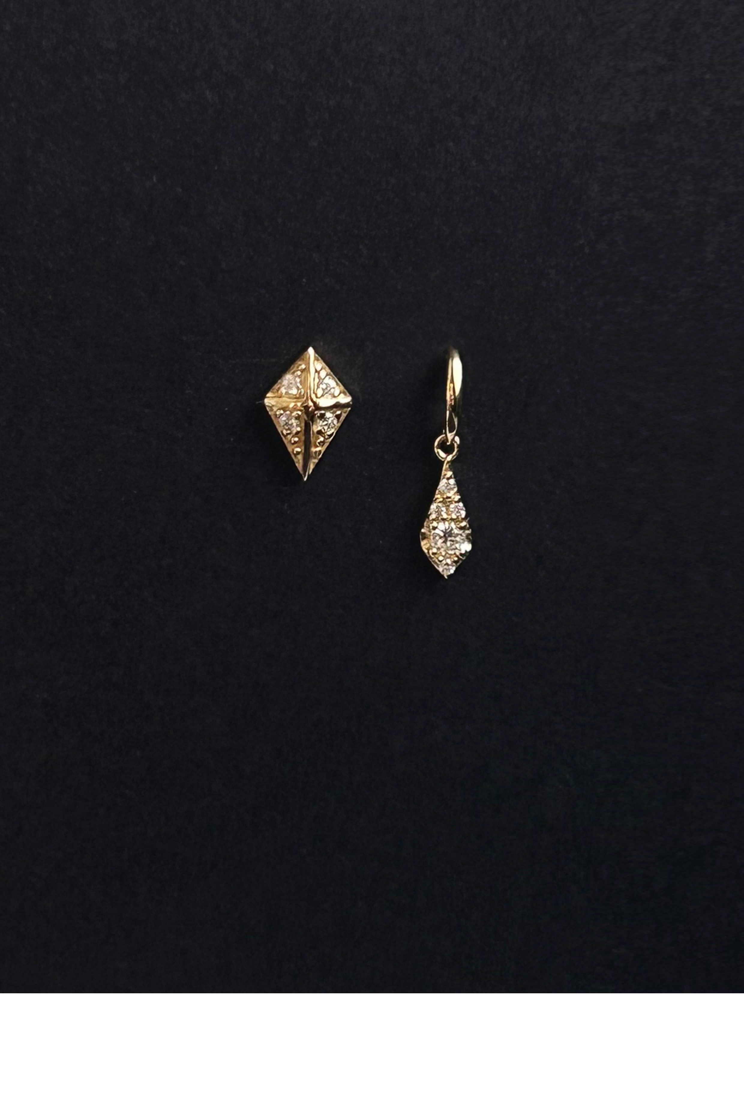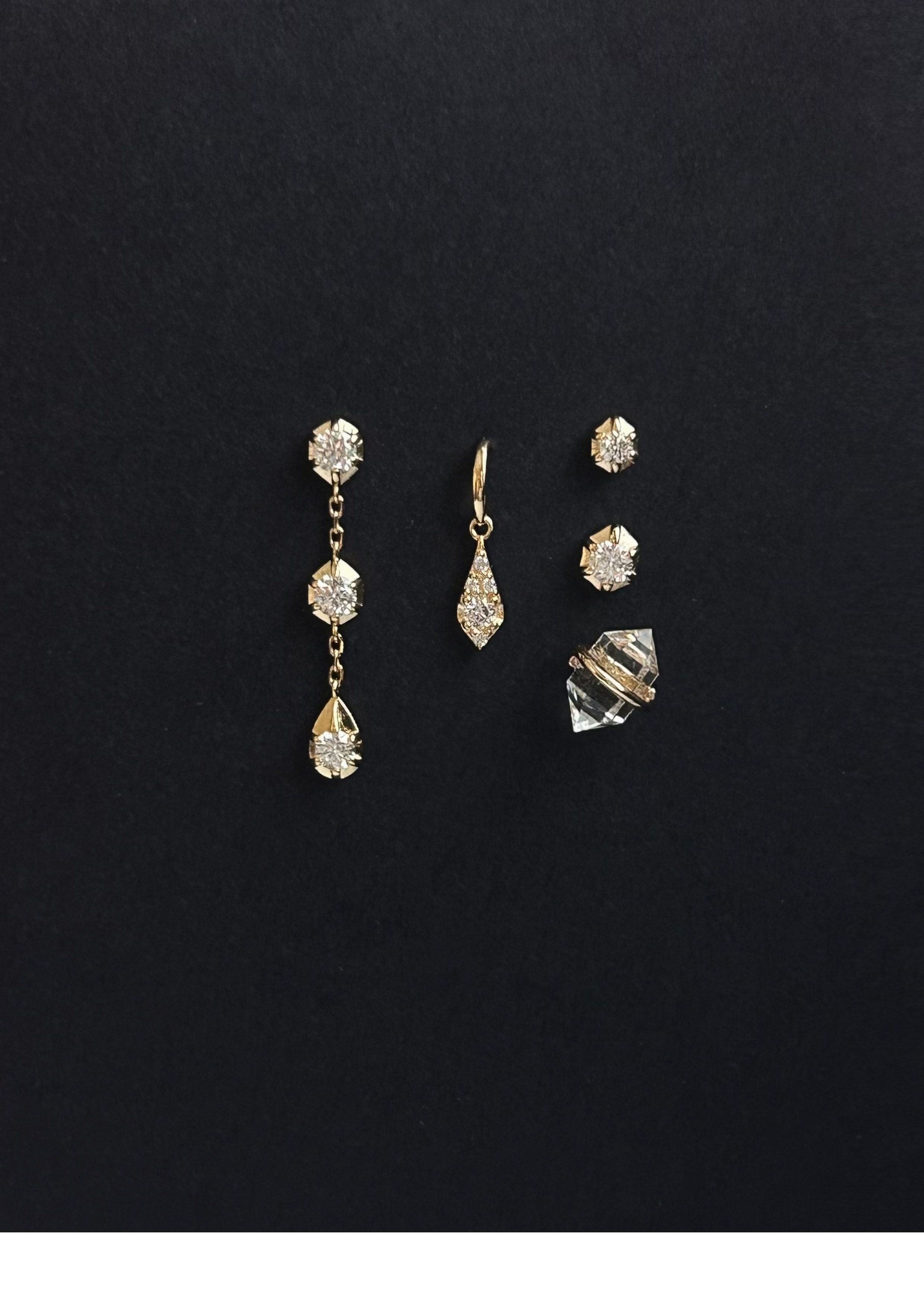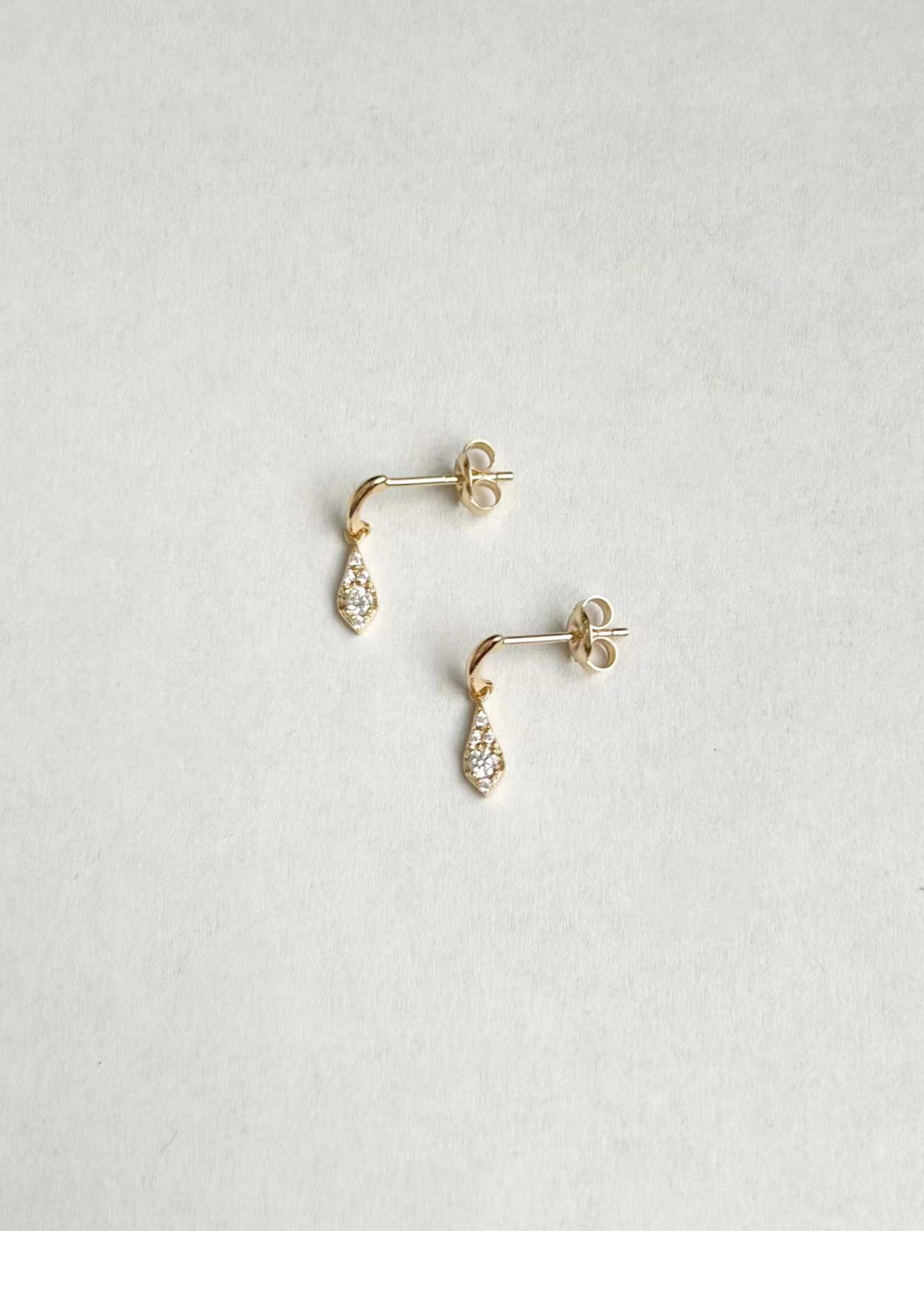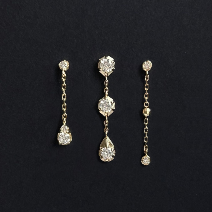 「朝露」TOXIC設計師款金色鑲鑽水滴925銀迷你精緻鏈條吊墜耳釘