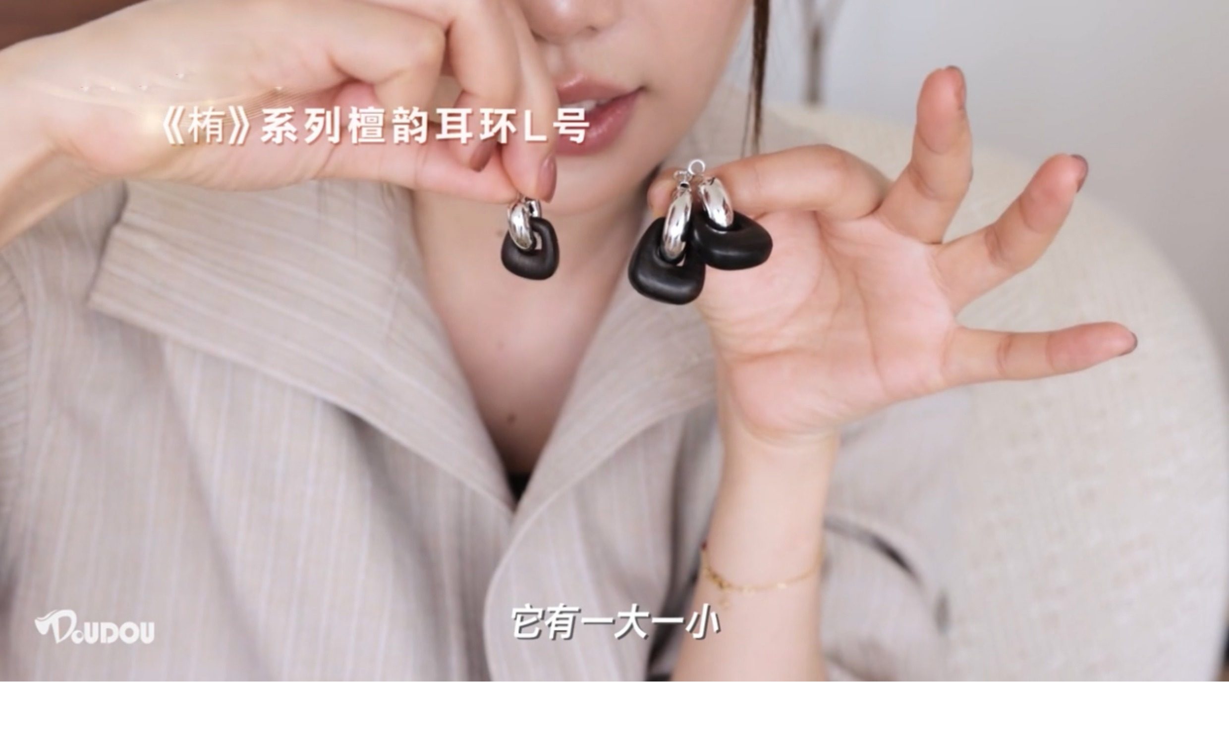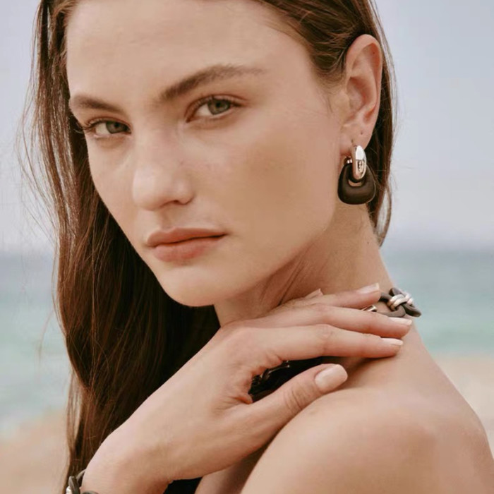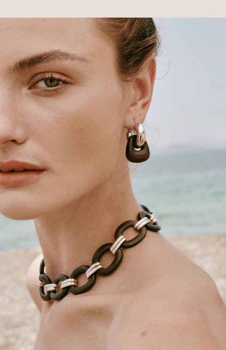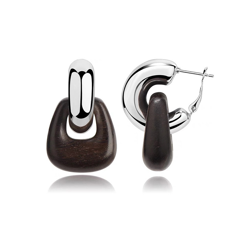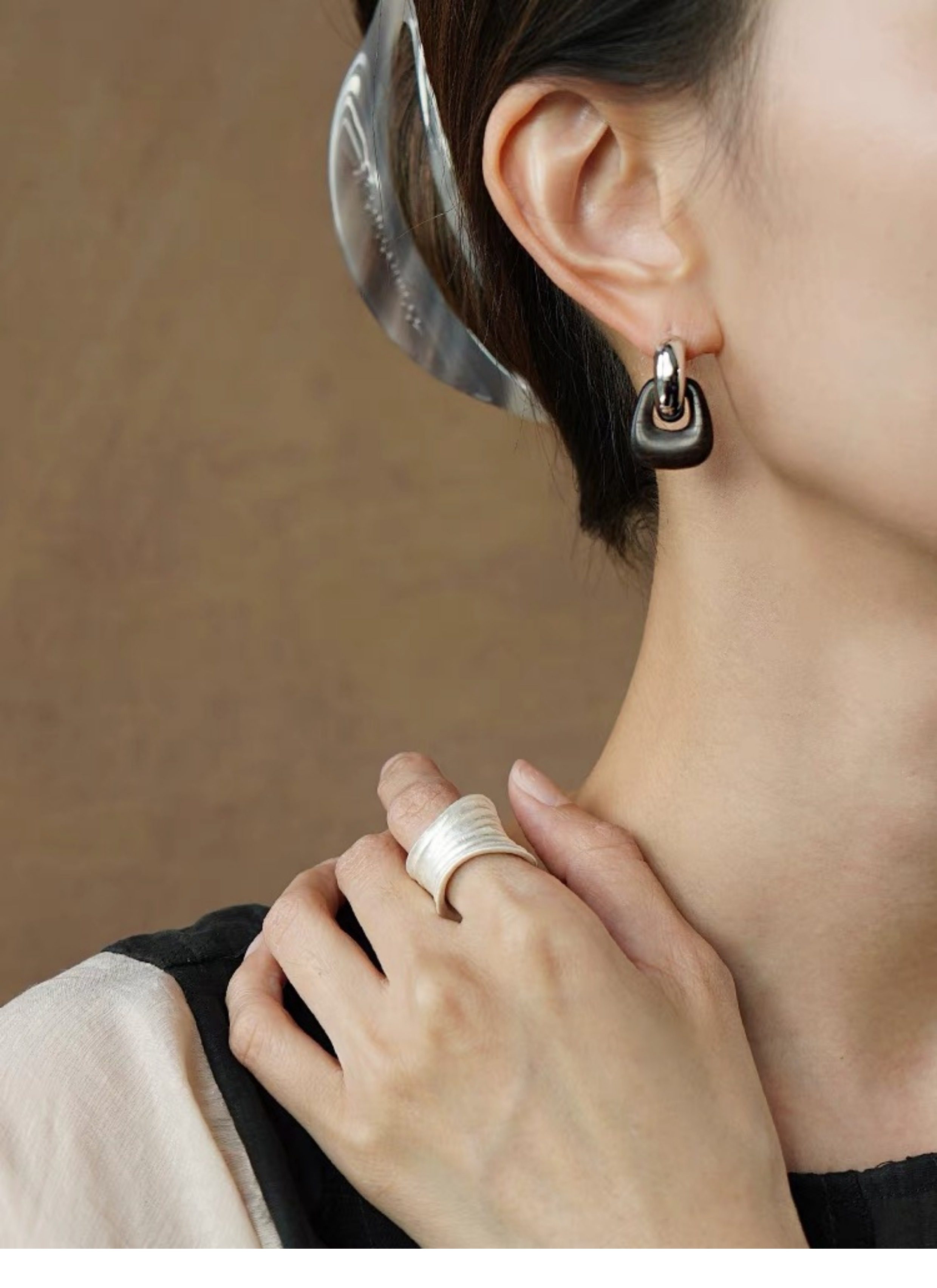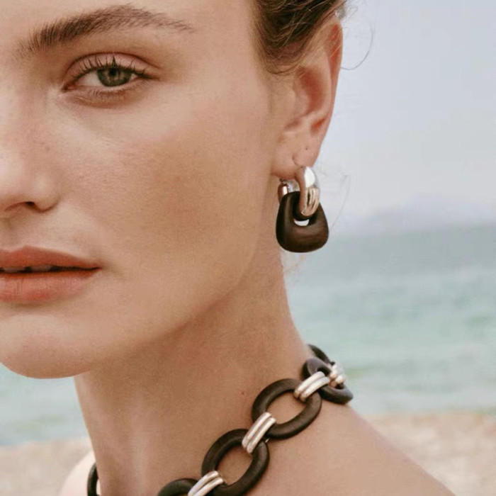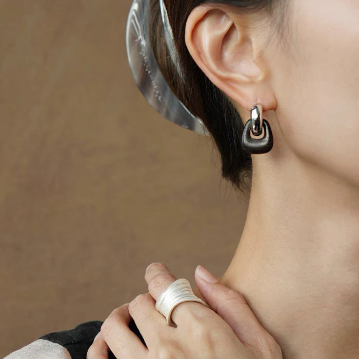 豆豆同款天然黑檀木耳環設計師復古高級感檀韻耳釘S925銀針耳飾女