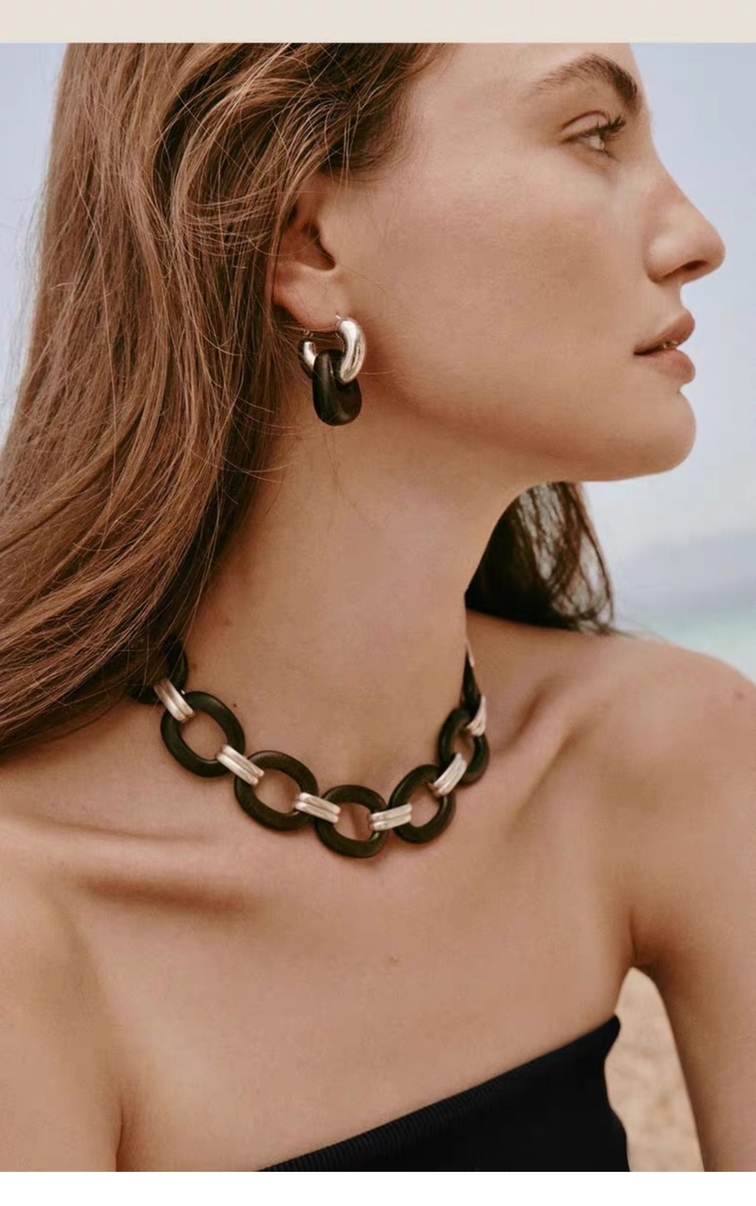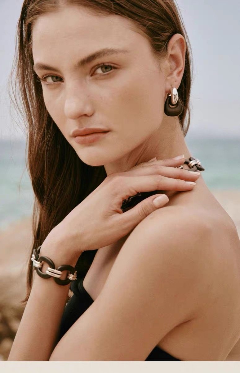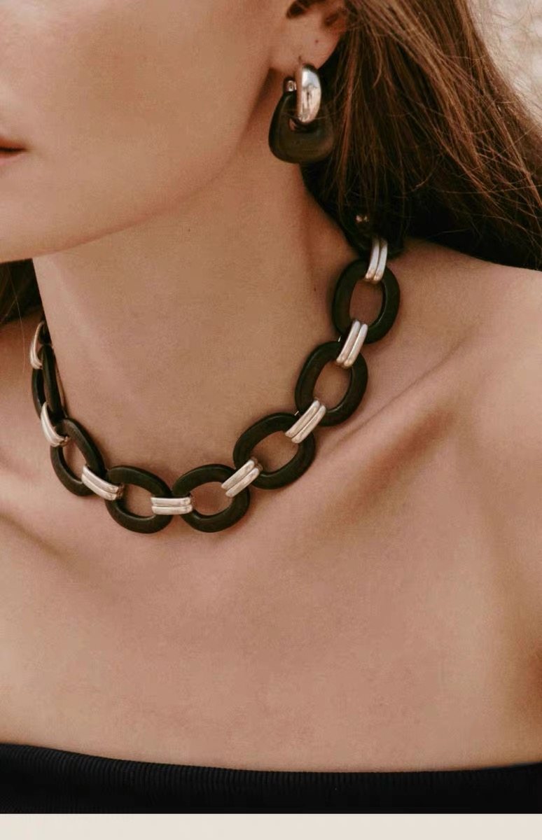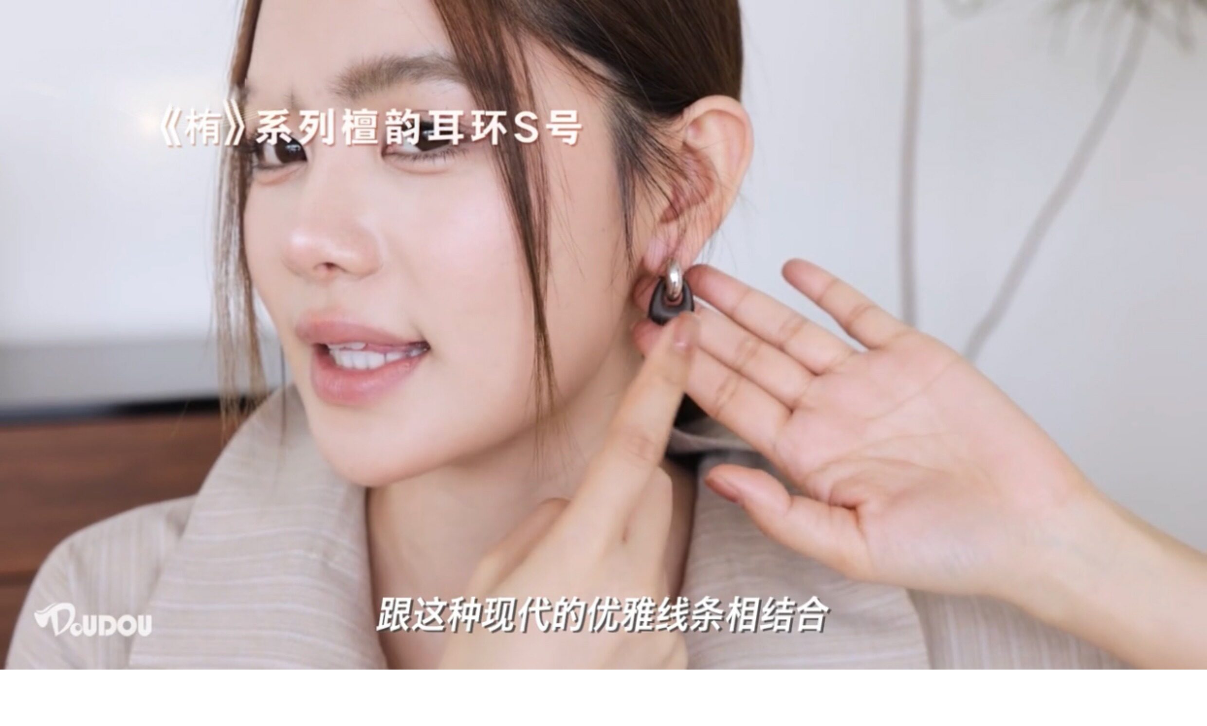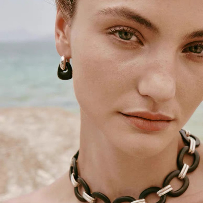 豆豆同款天然黑檀木耳環設計師復古高級感檀韻耳釘S925銀針耳飾女