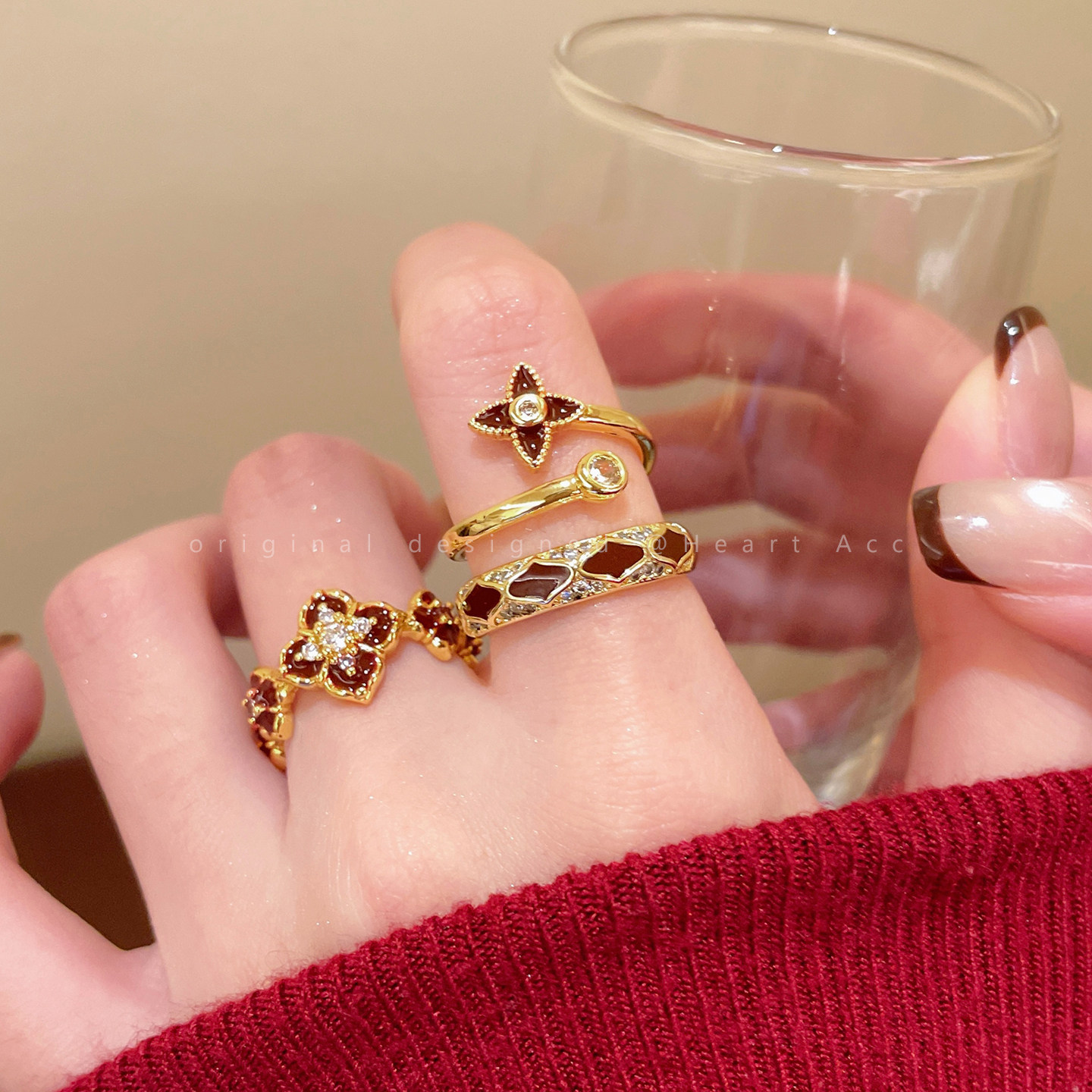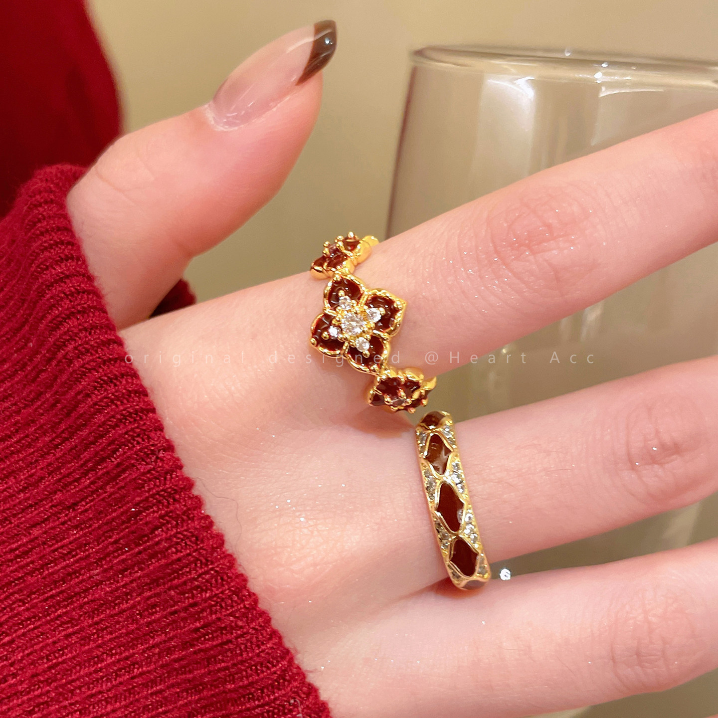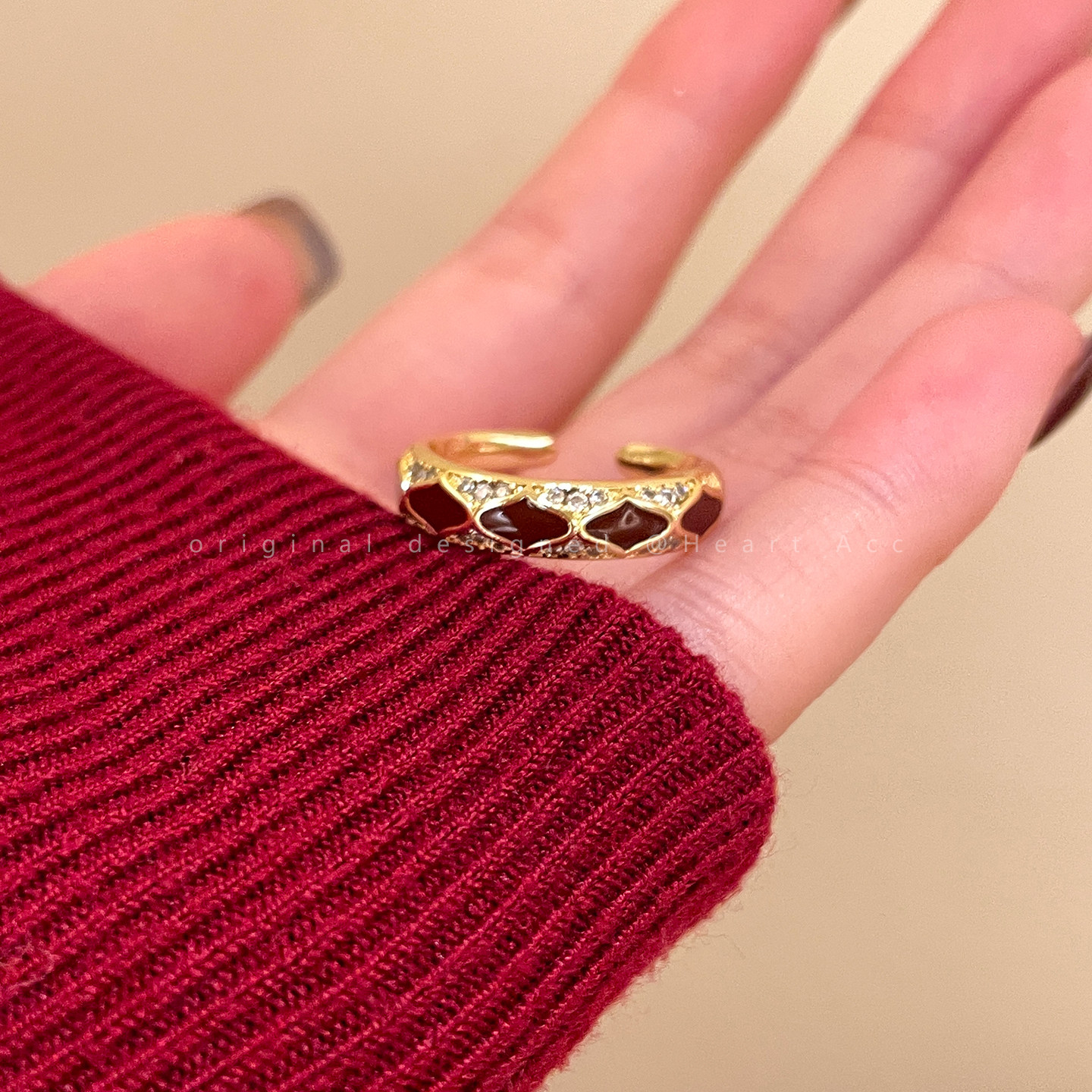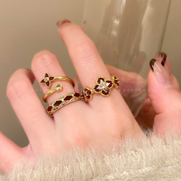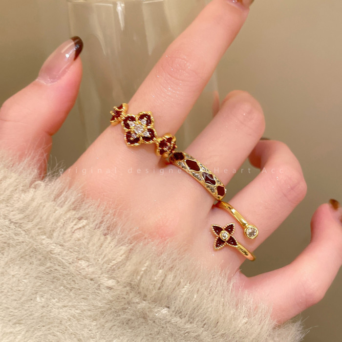 紅色琺瑯開口戒指女輕奢高級感小衆精緻食指戒超好看獨特漂亮指環