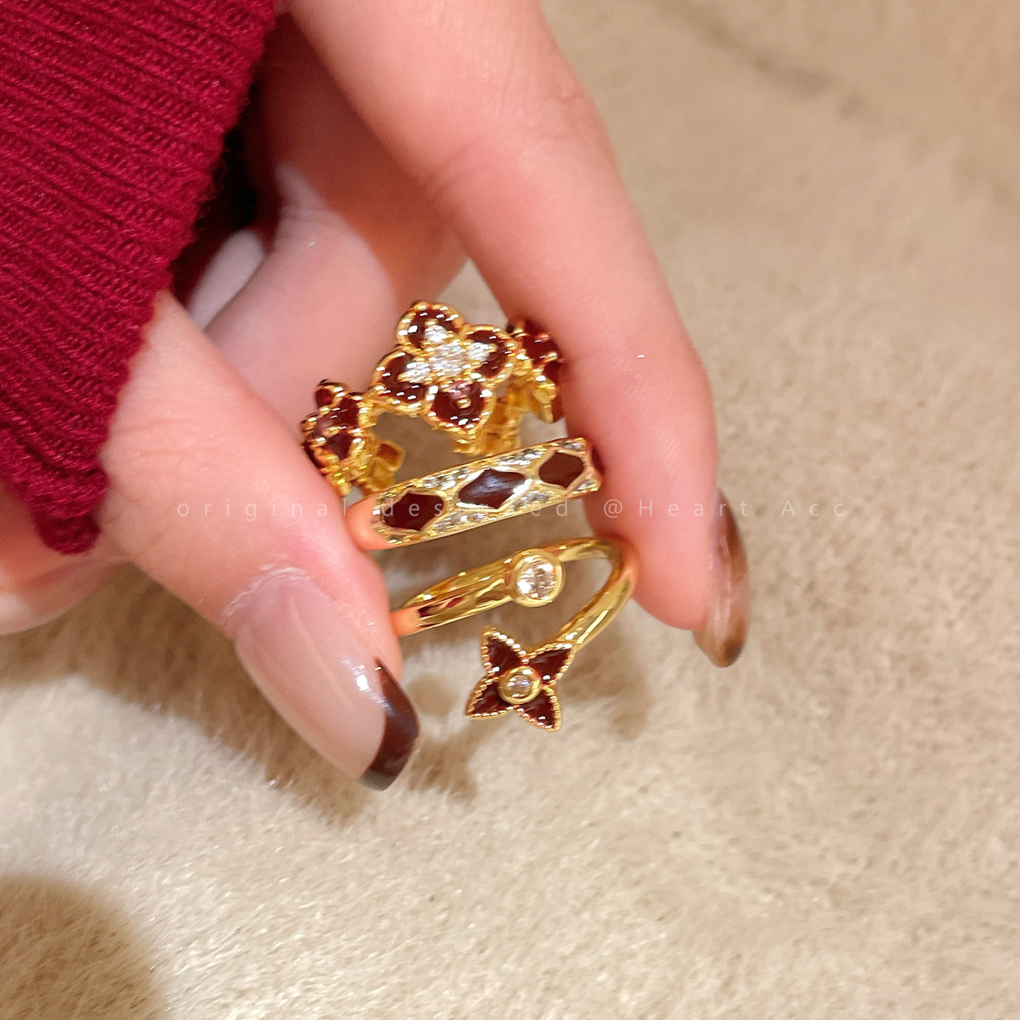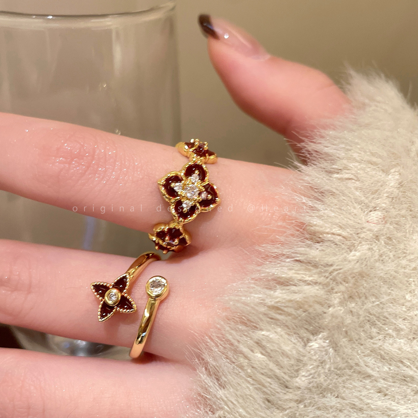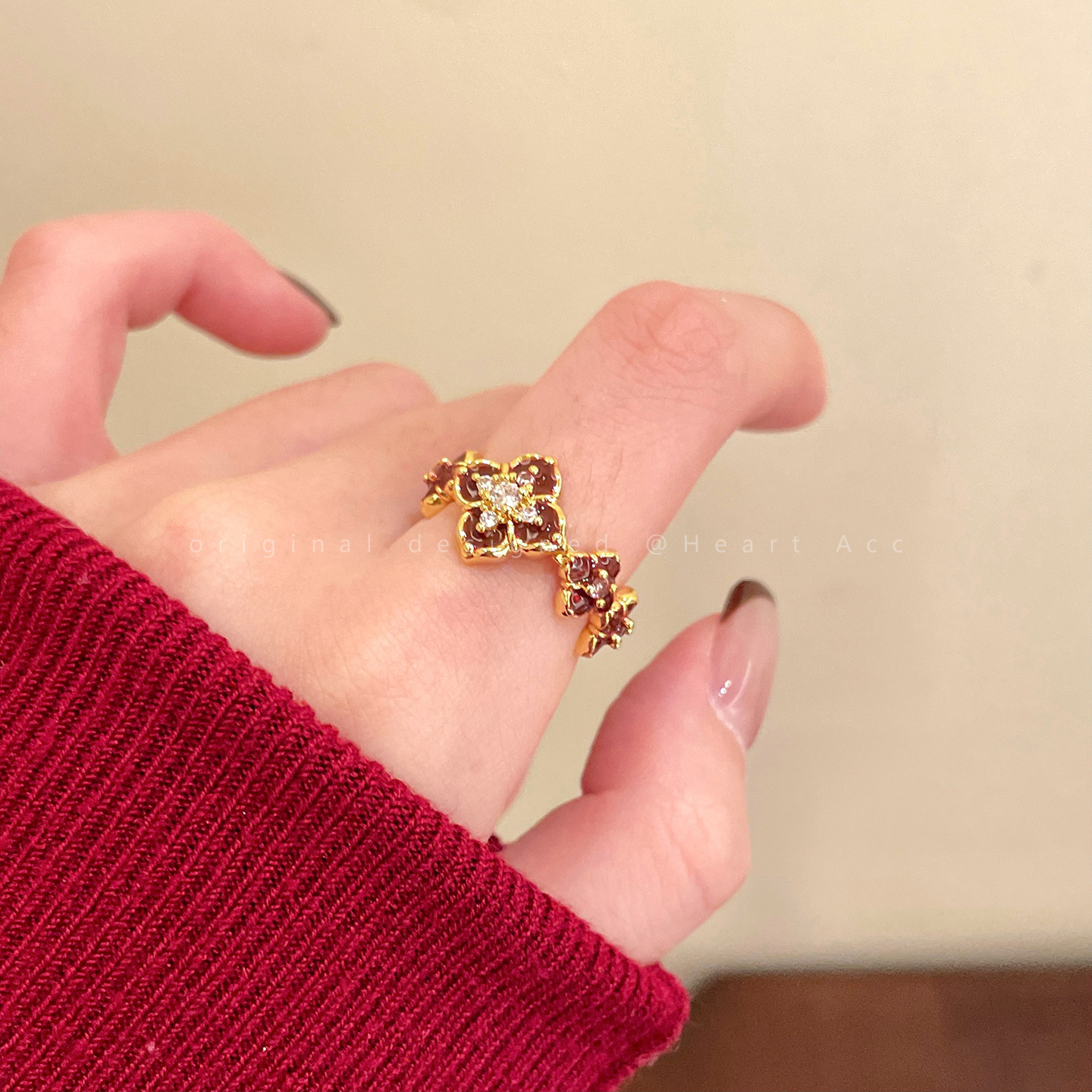 紅色琺瑯開口戒指女輕奢高級感小衆精緻食指戒超好看獨特漂亮指環