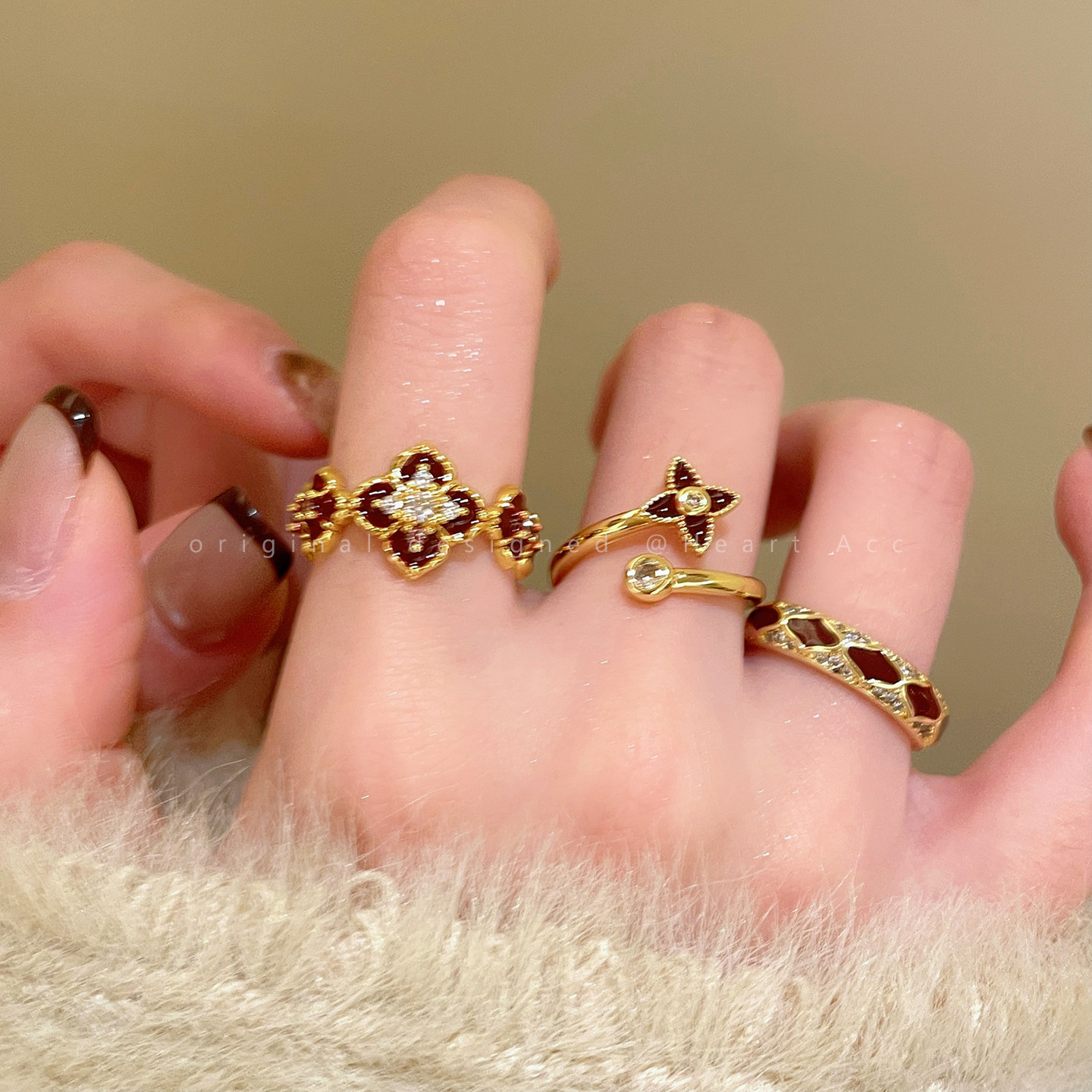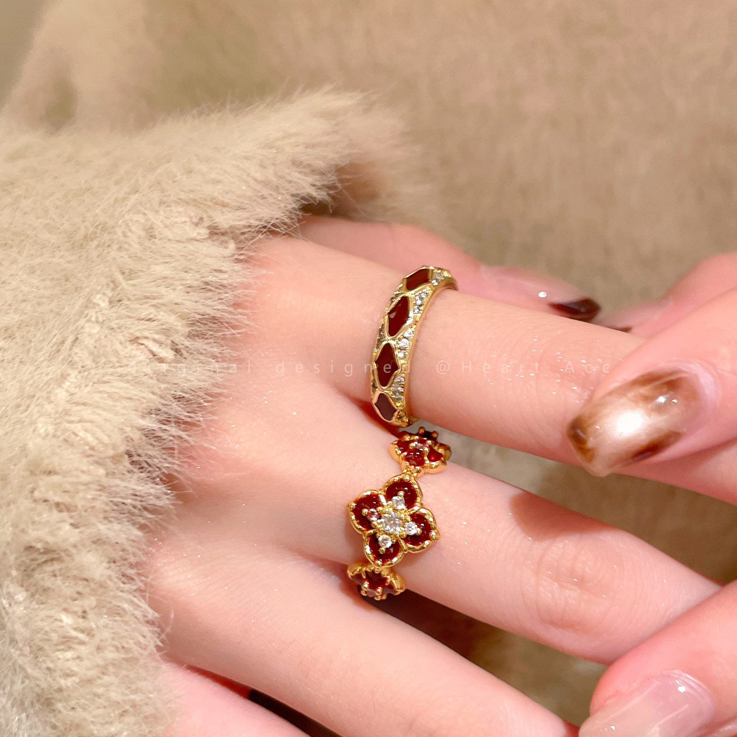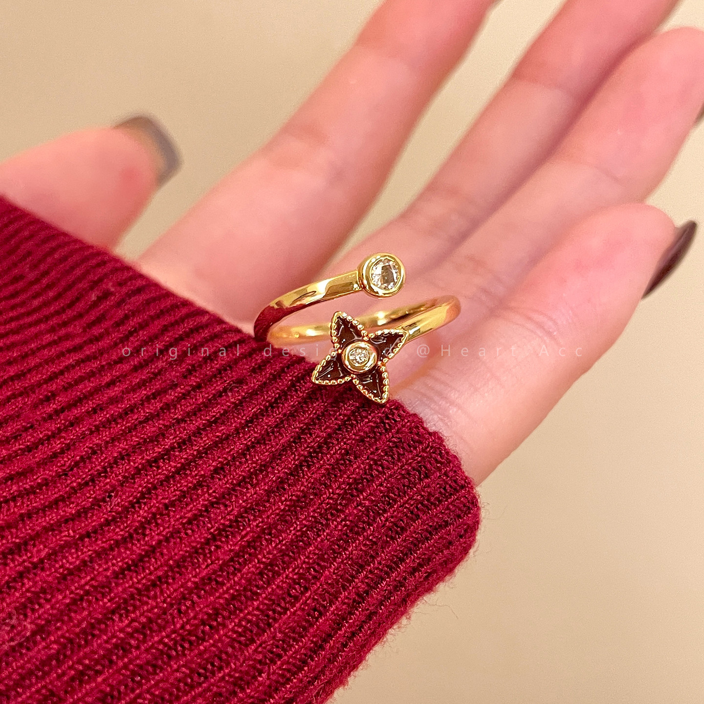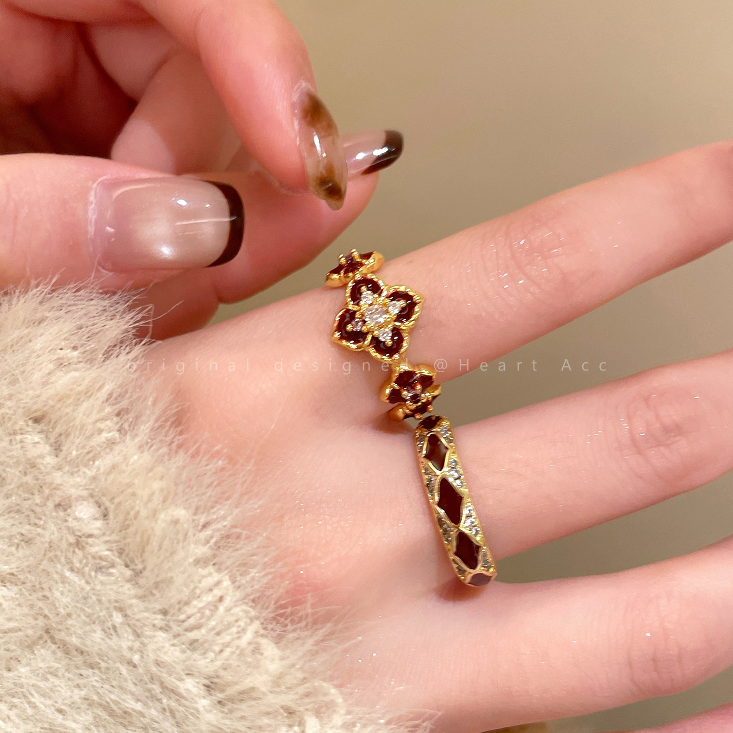 紅色琺瑯開口戒指女輕奢高級感小衆精緻食指戒超好看獨特漂亮指環