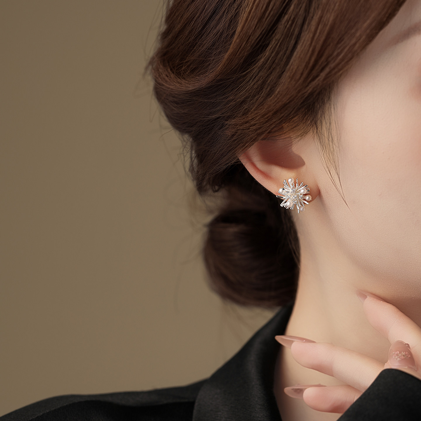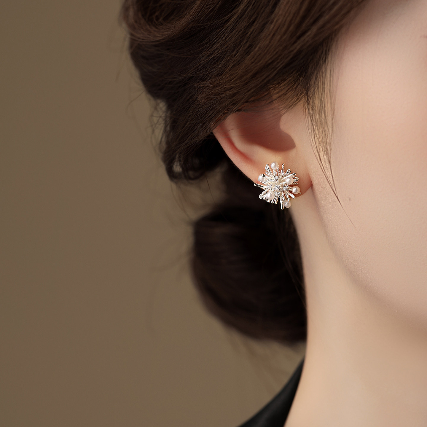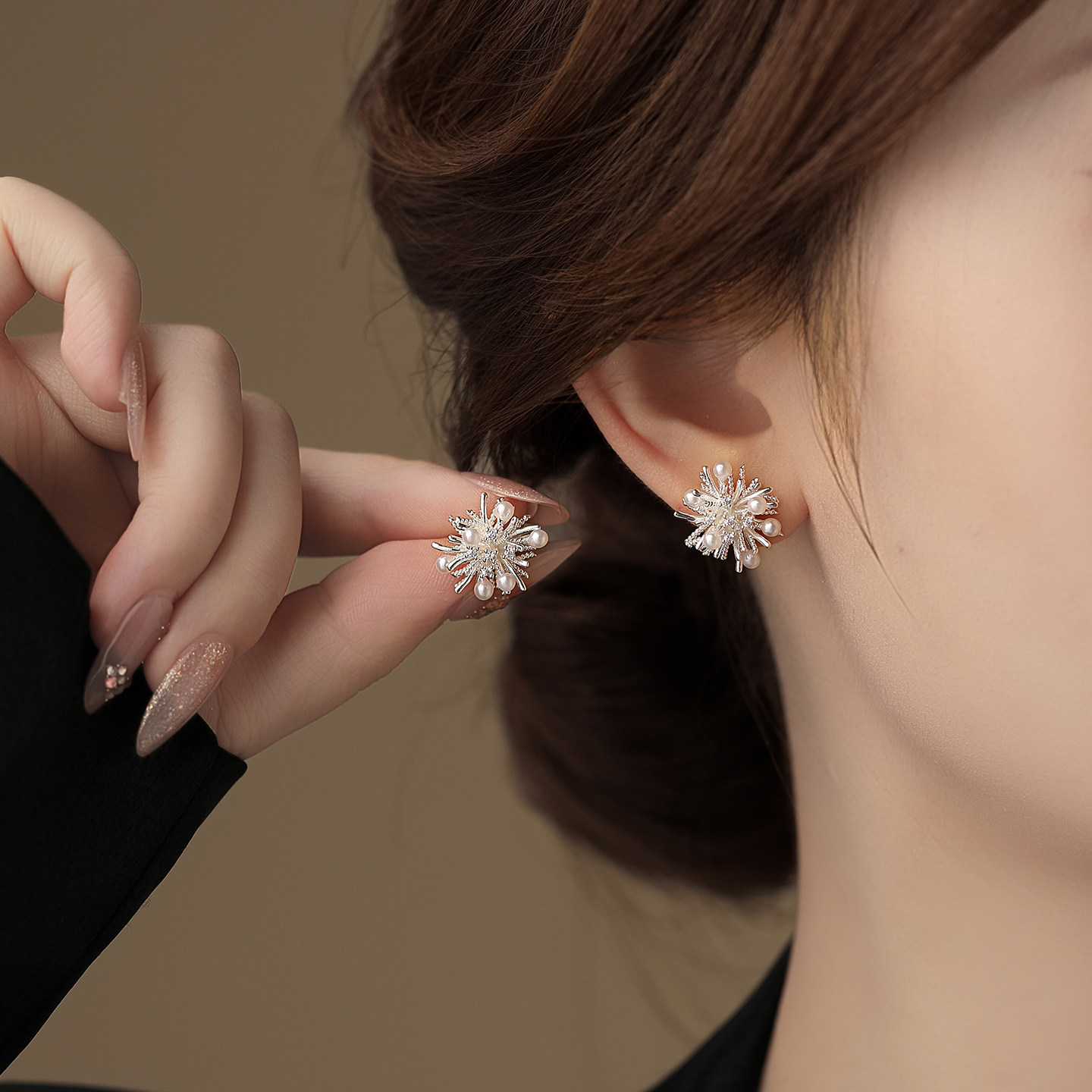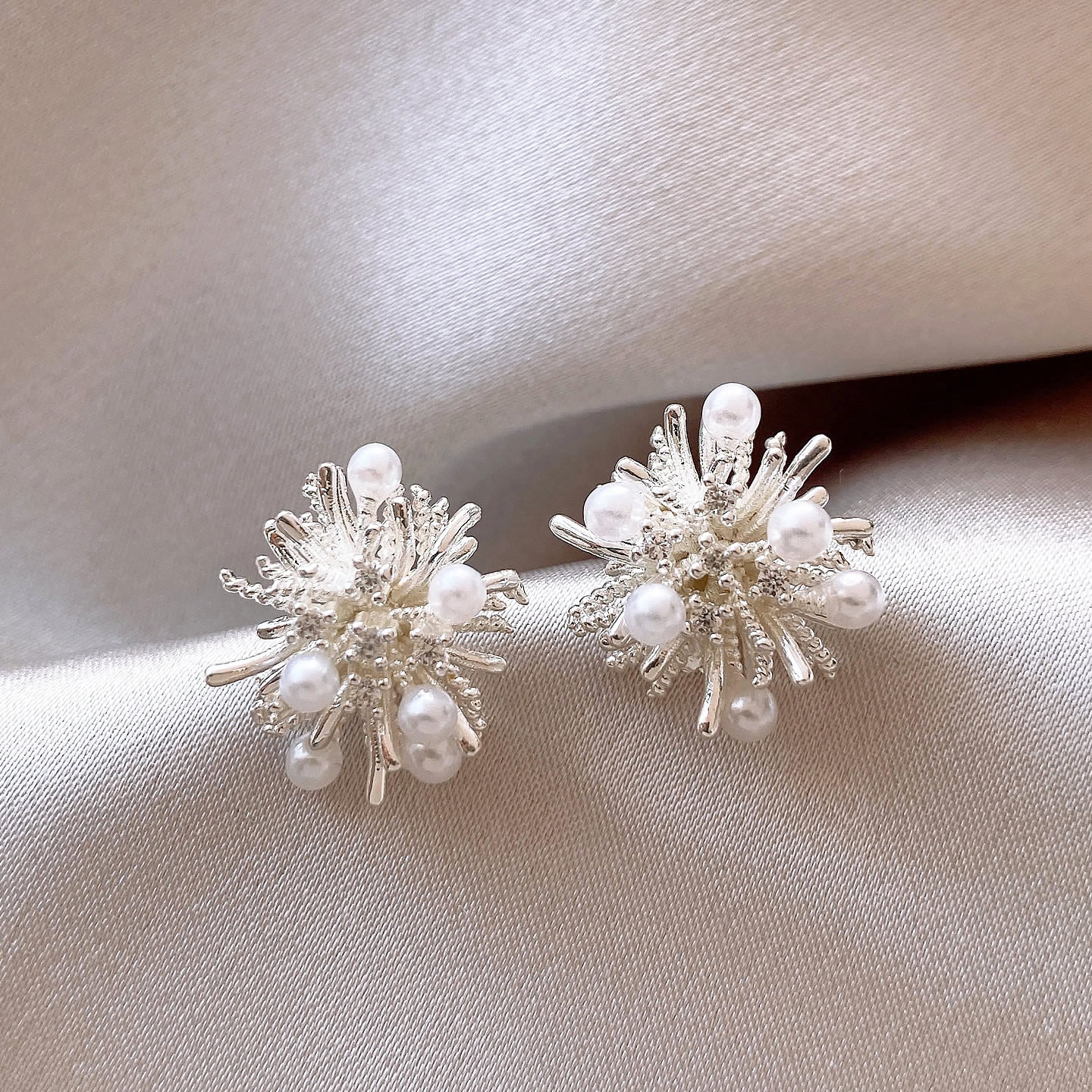 銀色珍珠菸花耳釘女2026新款爆款高級感耳飾精緻小巧耳環獨特漂亮