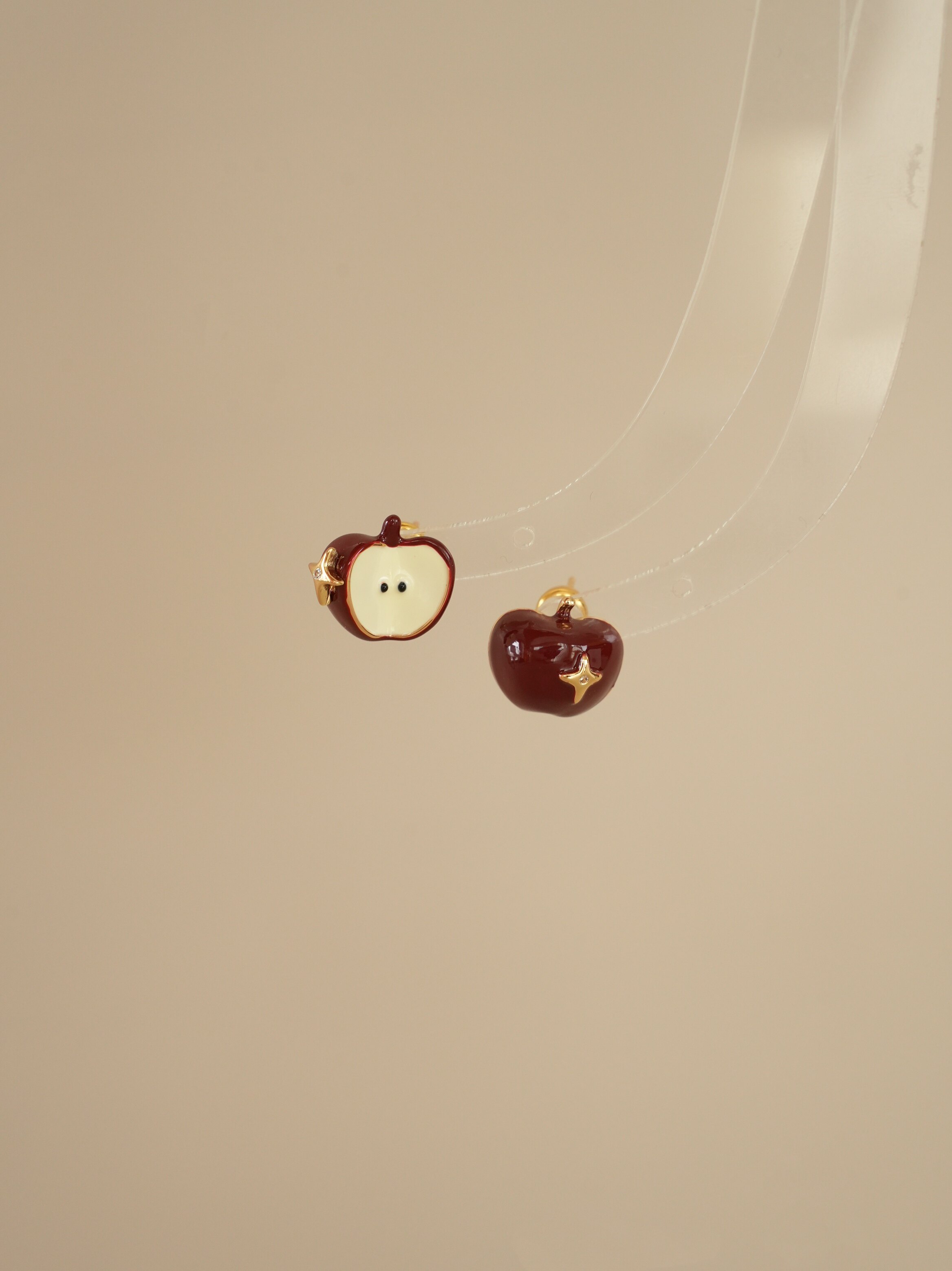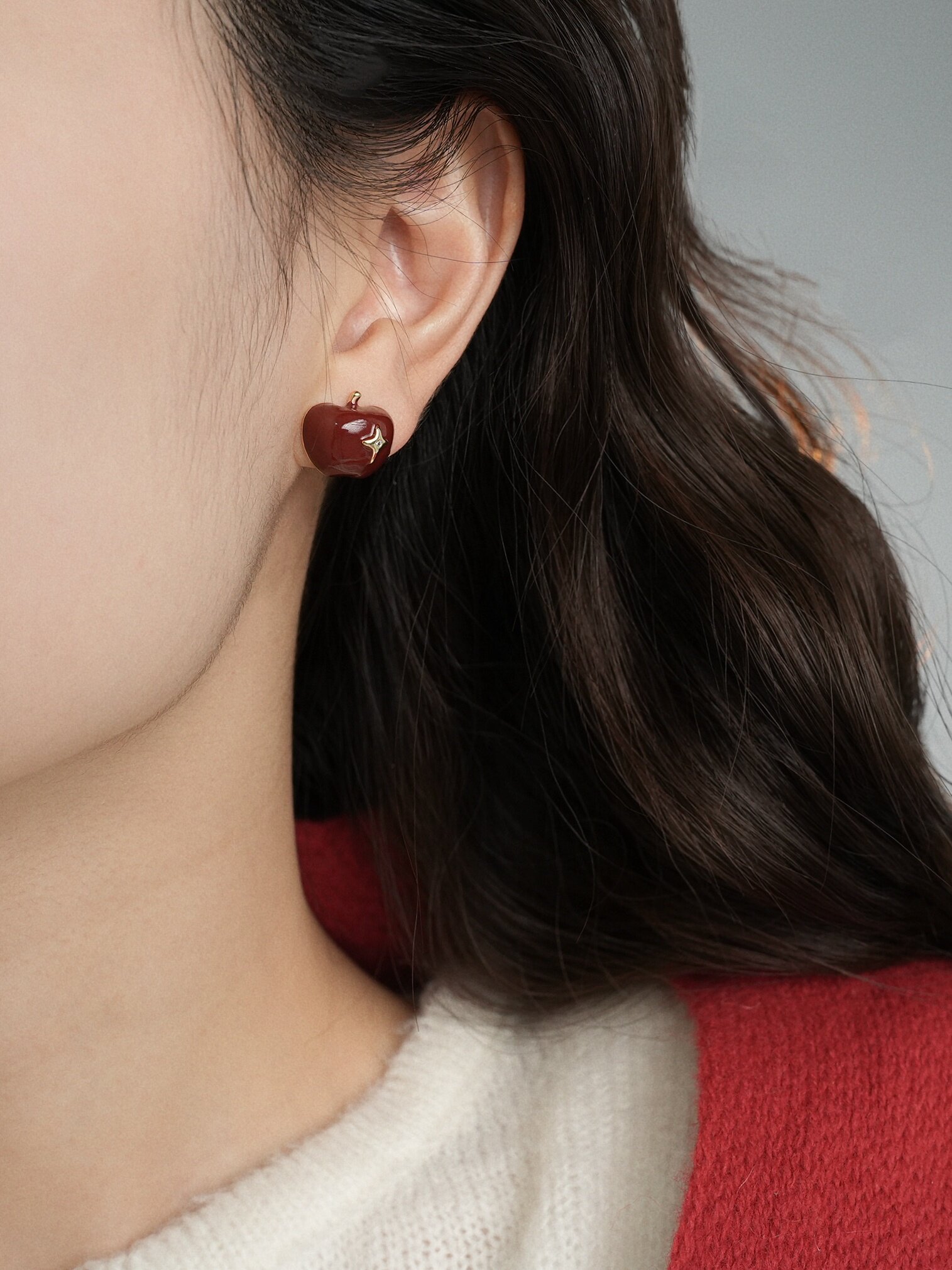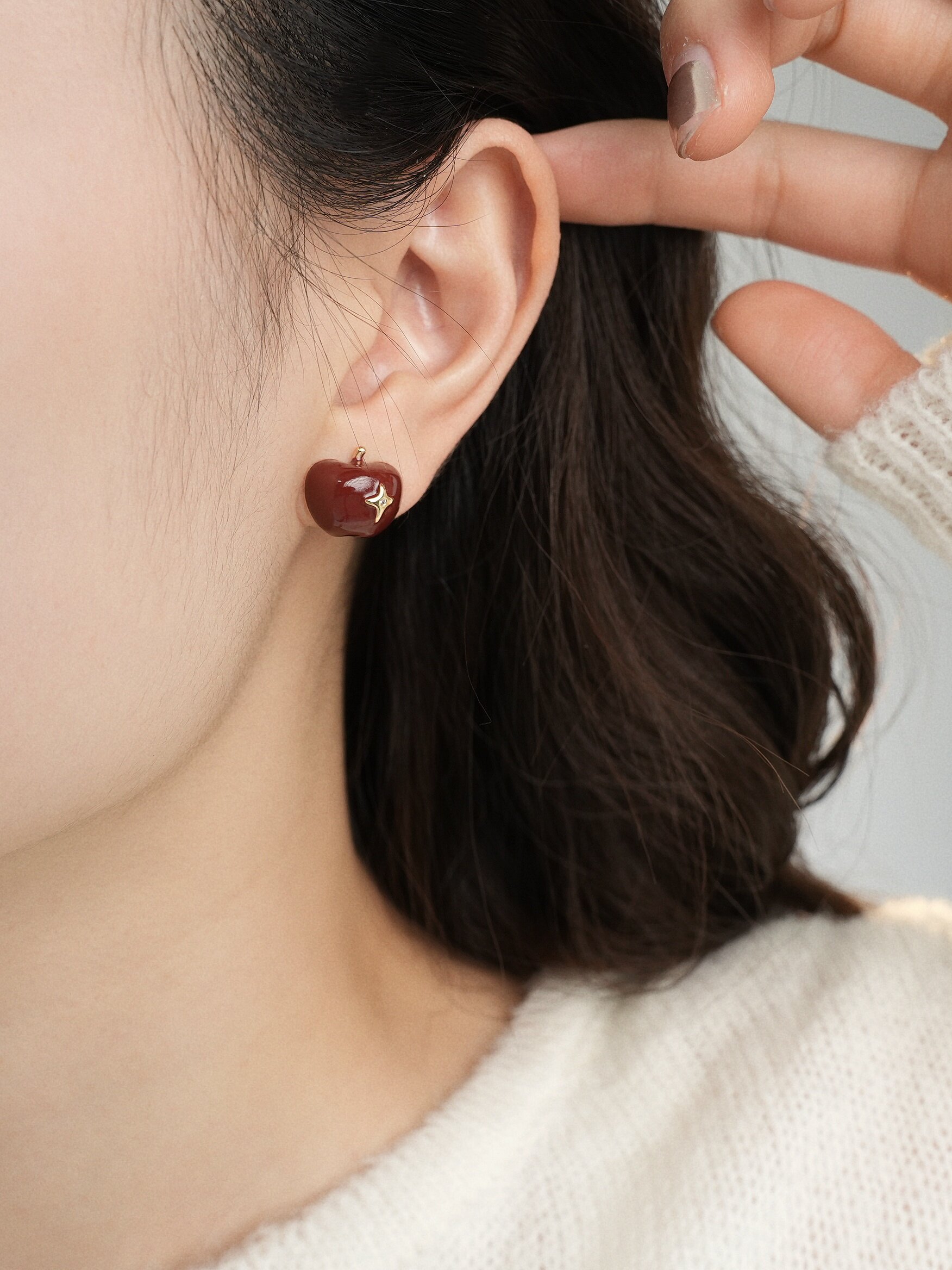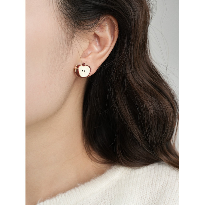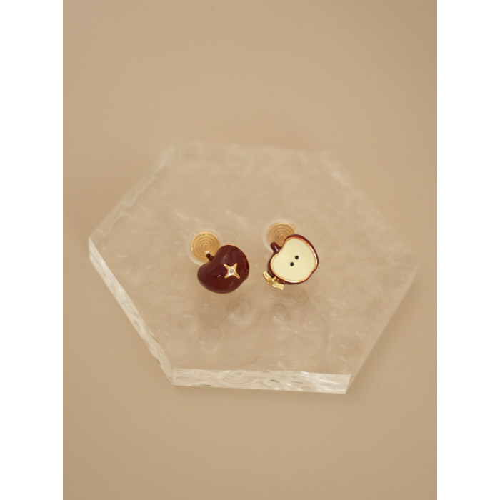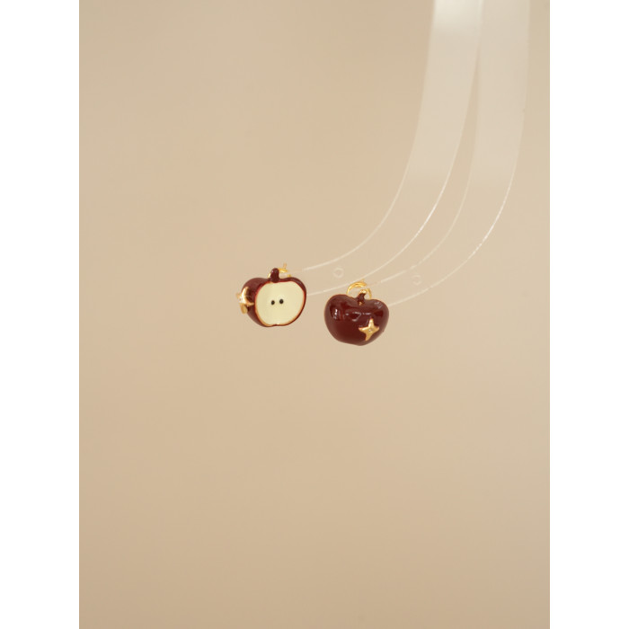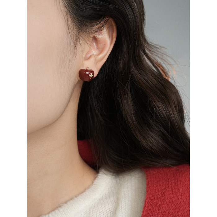 因缺斯汀【伊甸園】紅色滴油不對稱蘋果耳環女復古可愛無耳洞耳夾