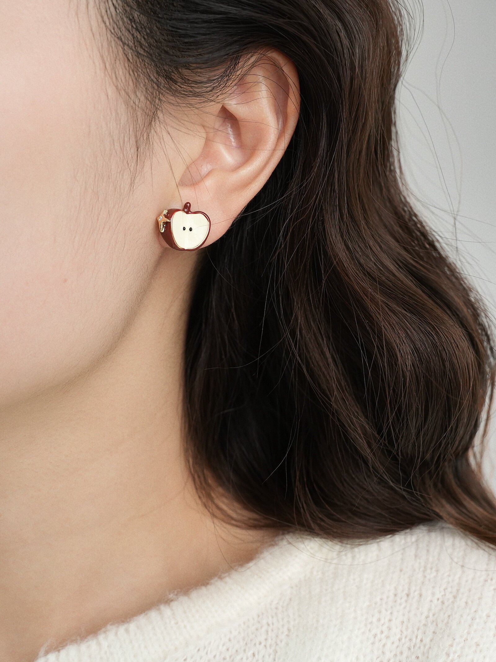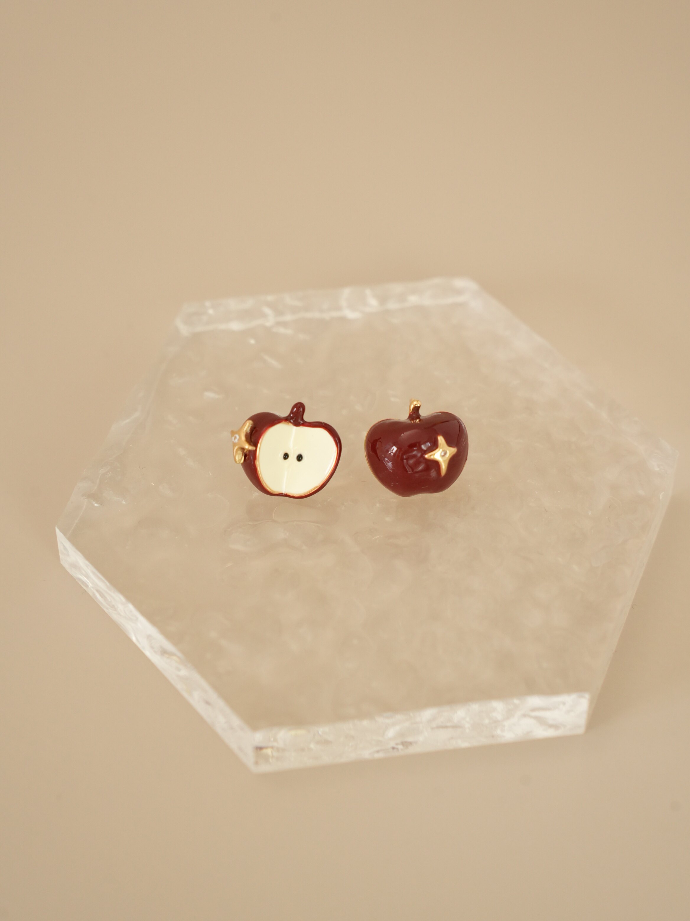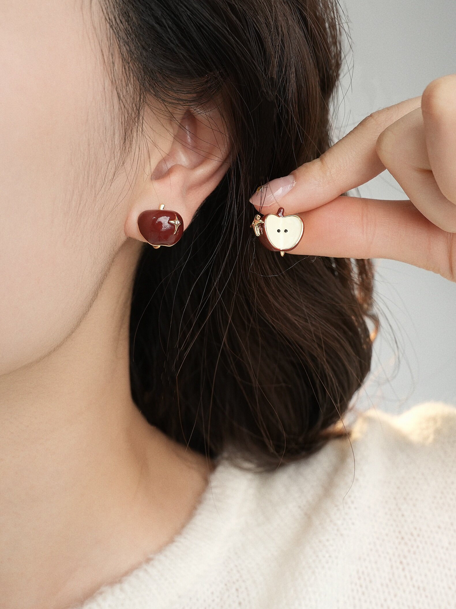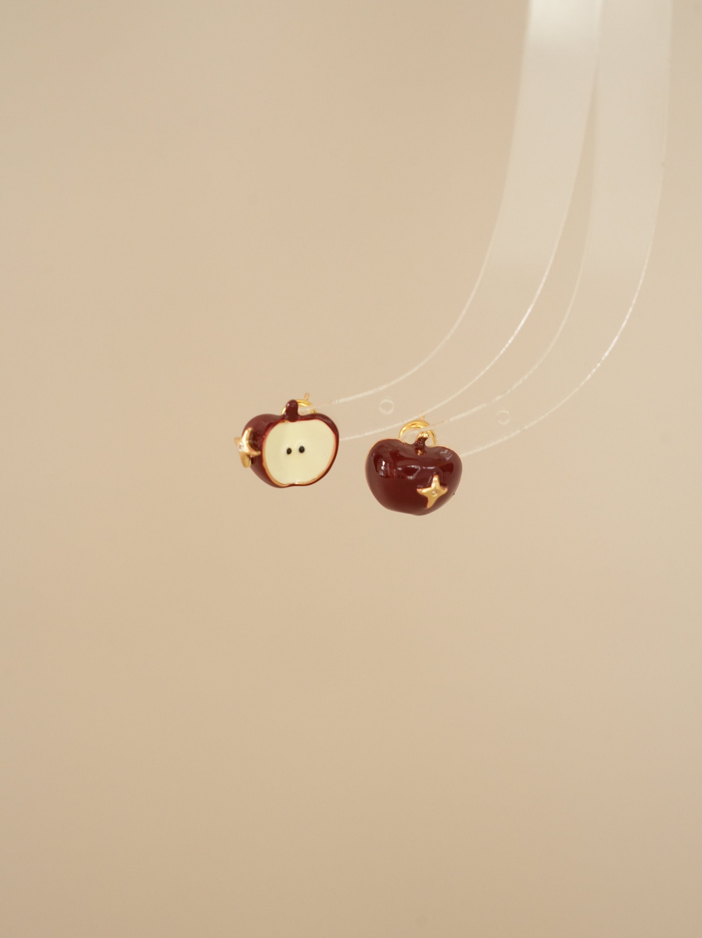 因缺斯汀【伊甸園】紅色滴油不對稱蘋果耳環女復古可愛無耳洞耳夾