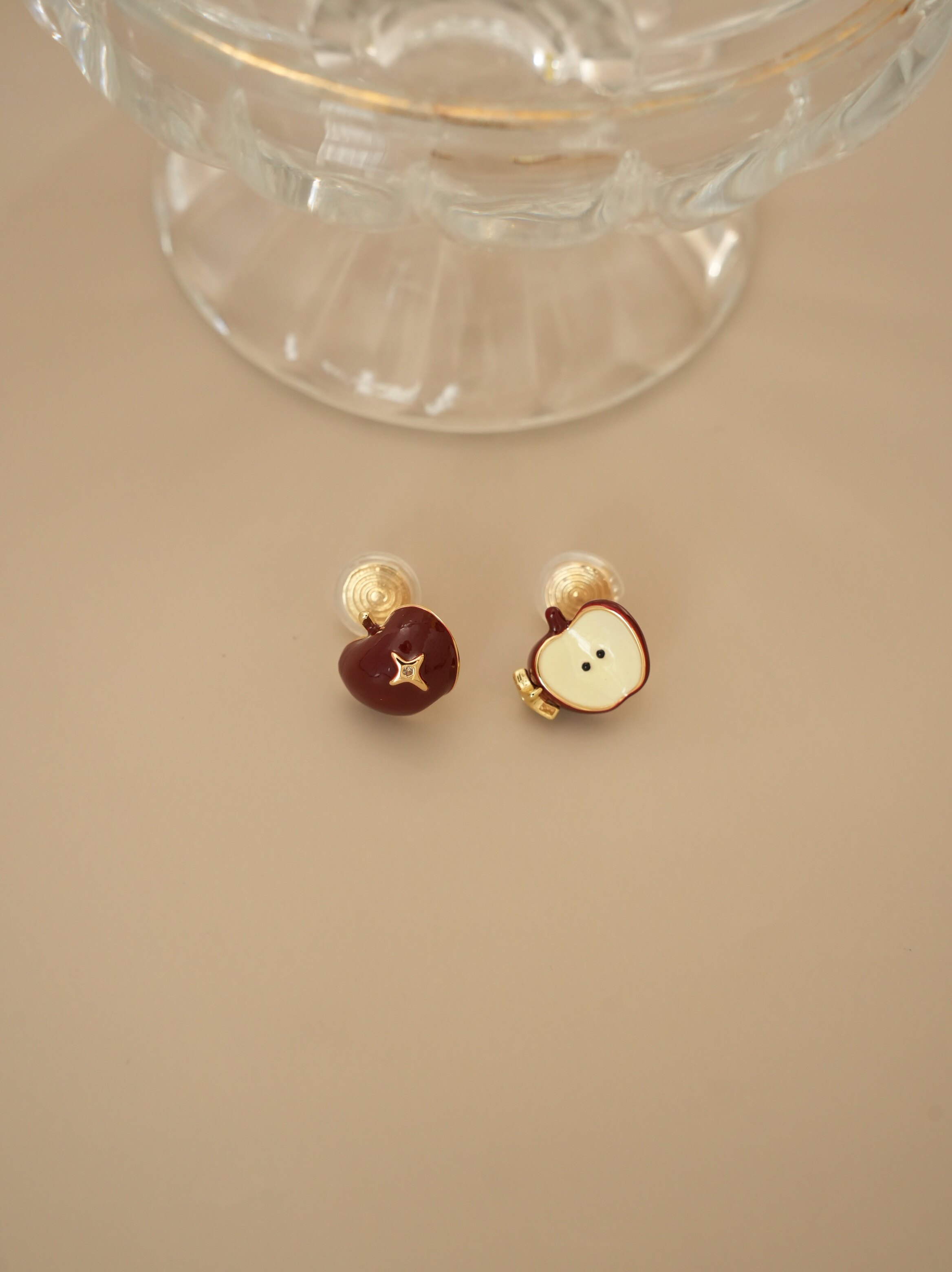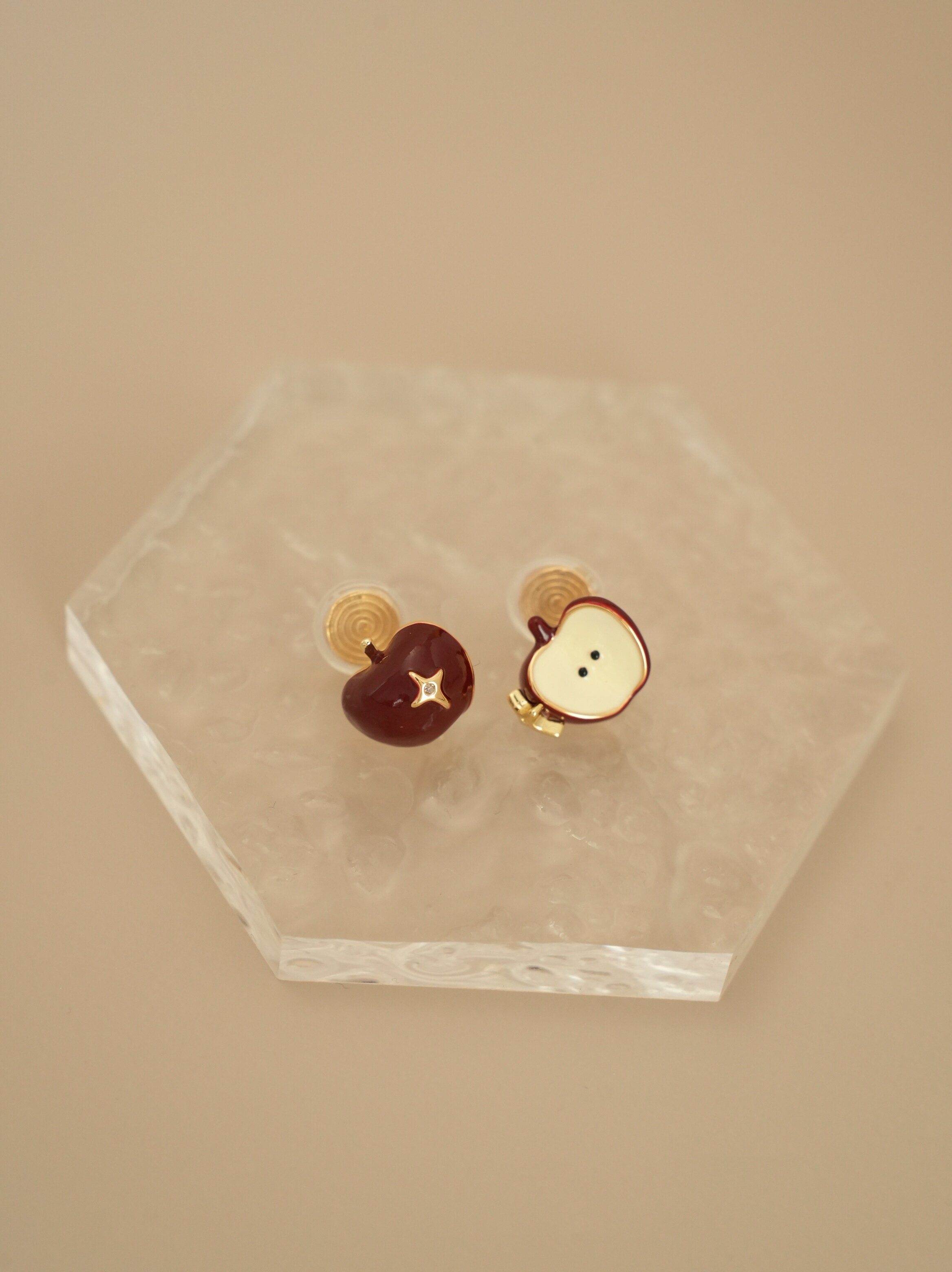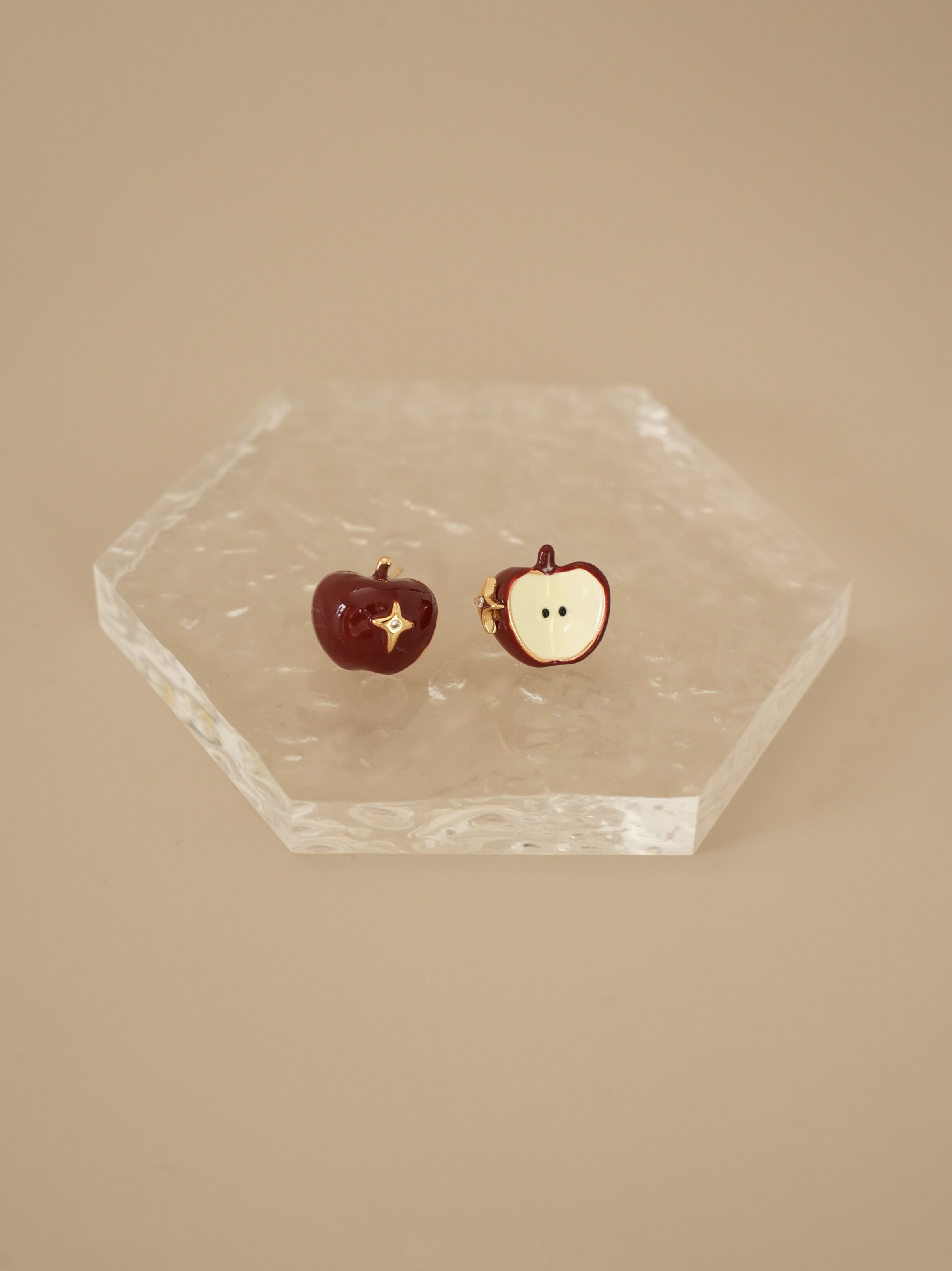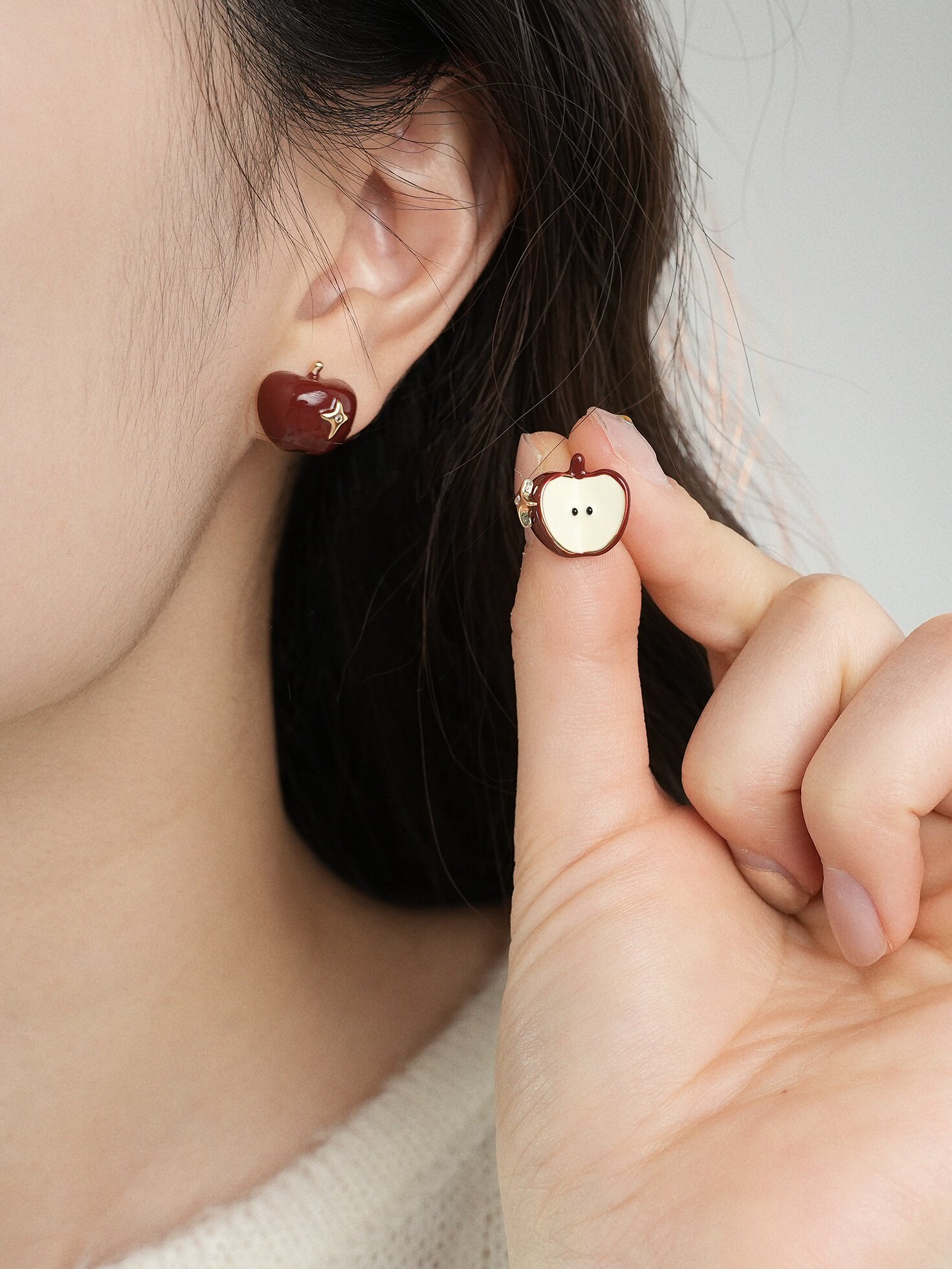 因缺斯汀【伊甸園】紅色滴油不對稱蘋果耳環女復古可愛無耳洞耳夾
