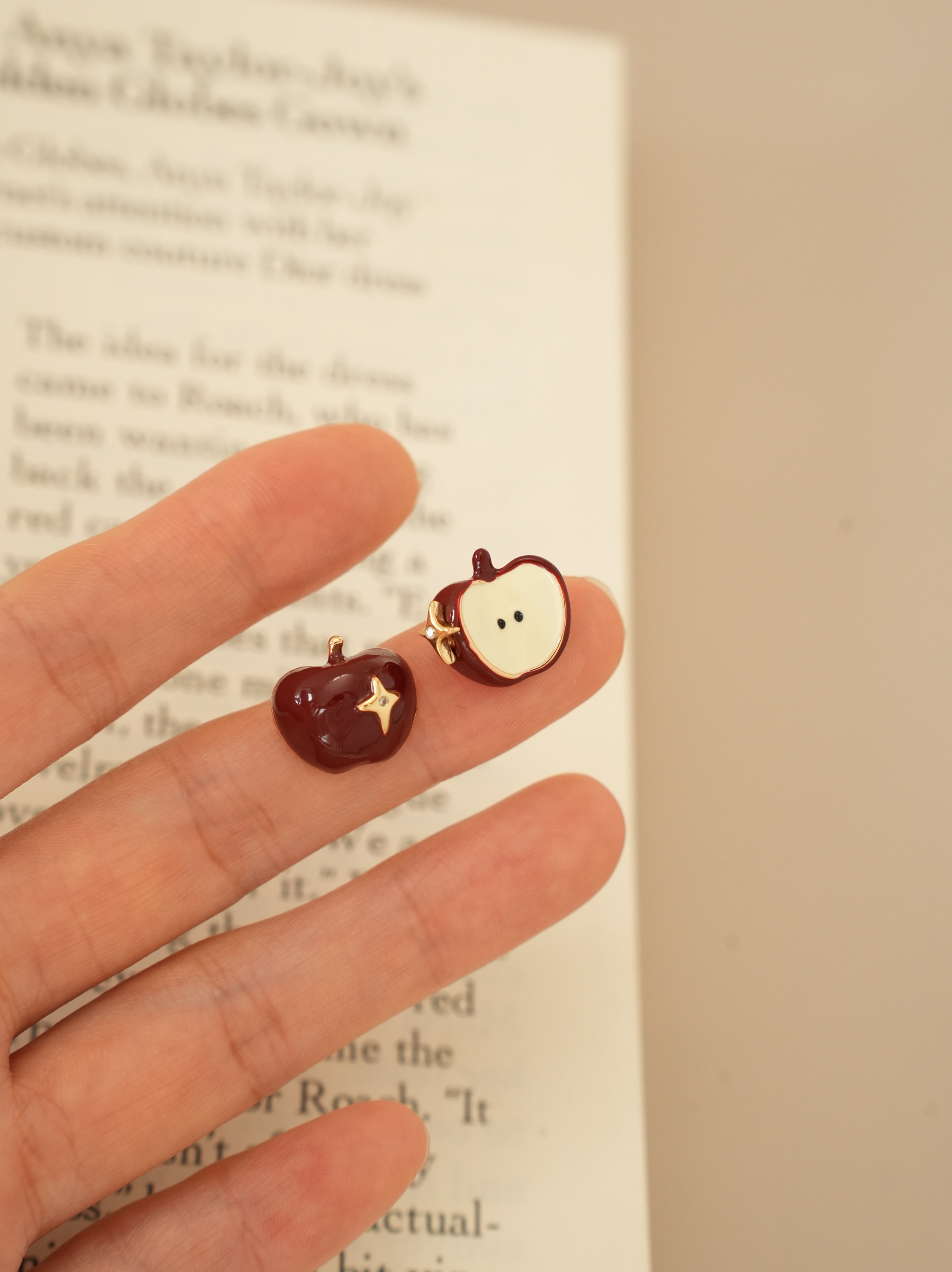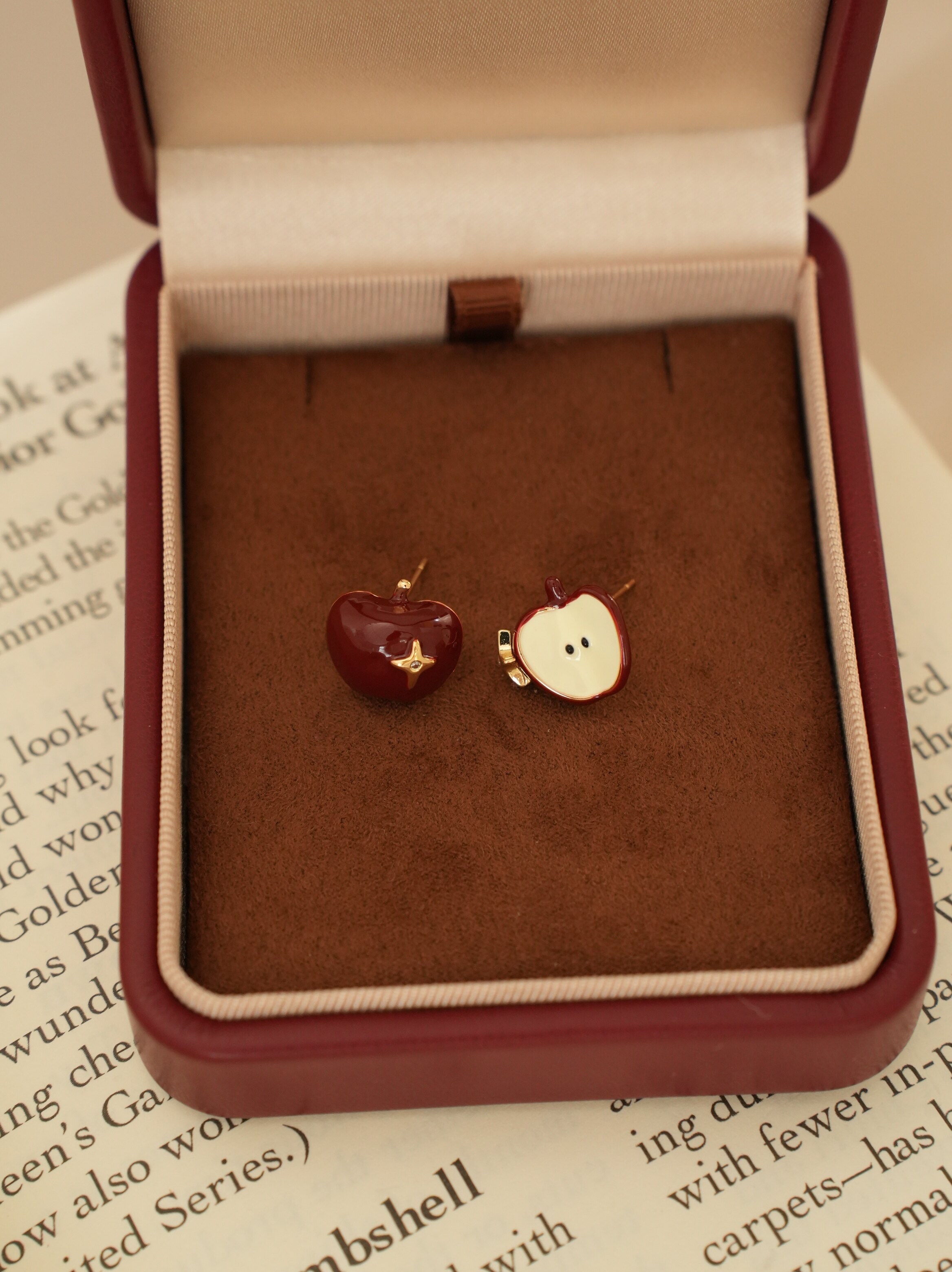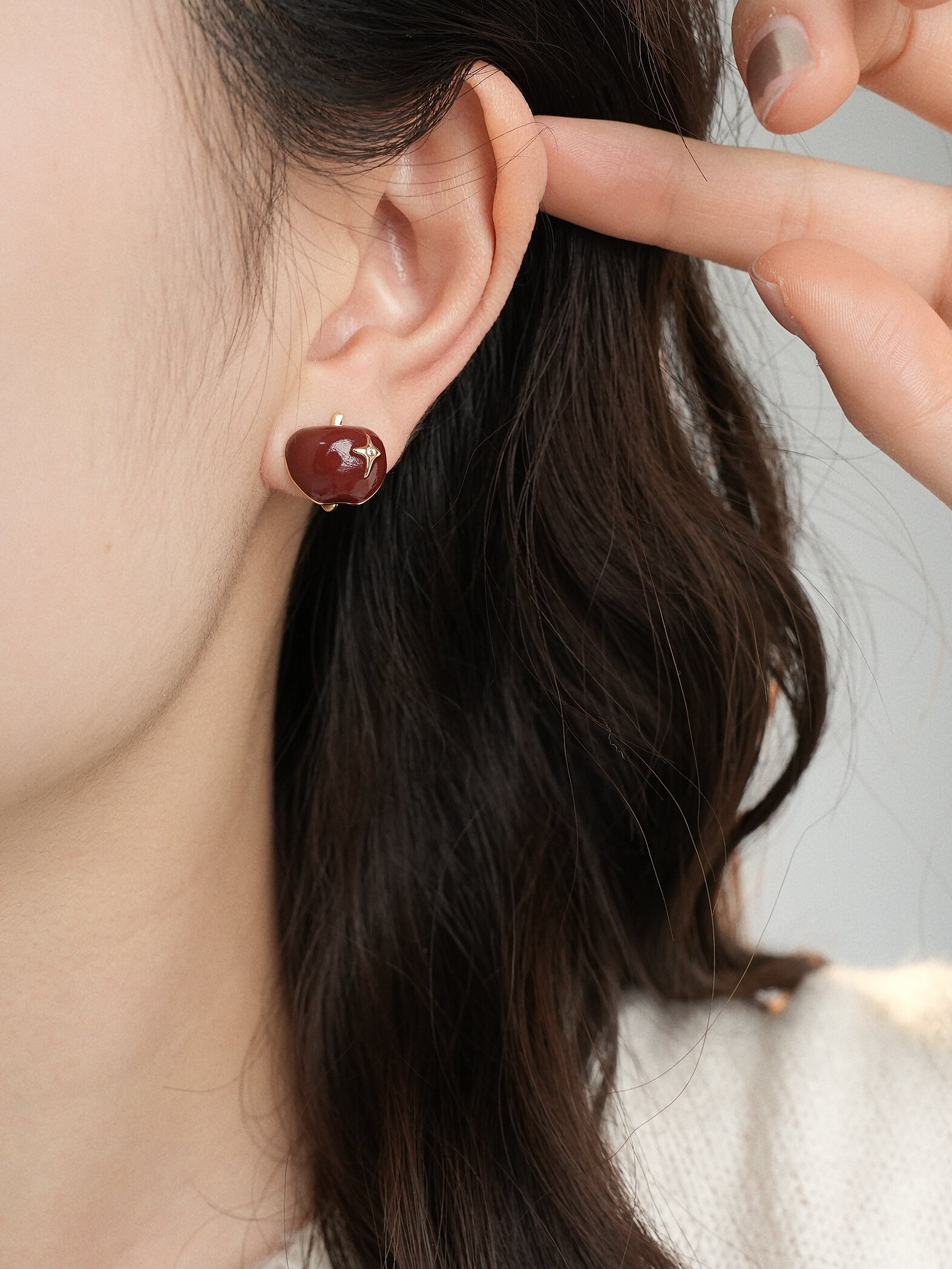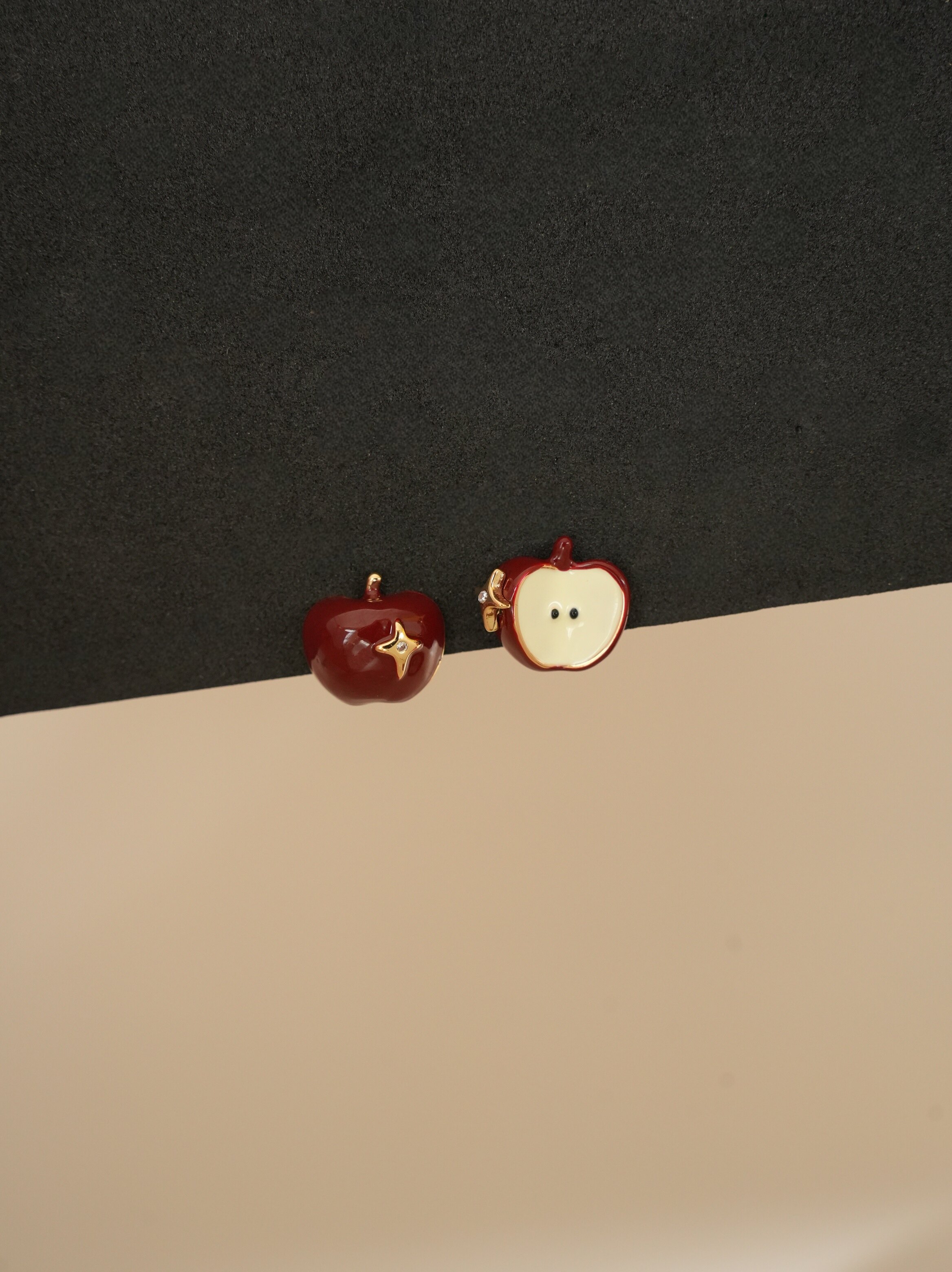 因缺斯汀【伊甸園】紅色滴油不對稱蘋果耳環女復古可愛無耳洞耳夾
