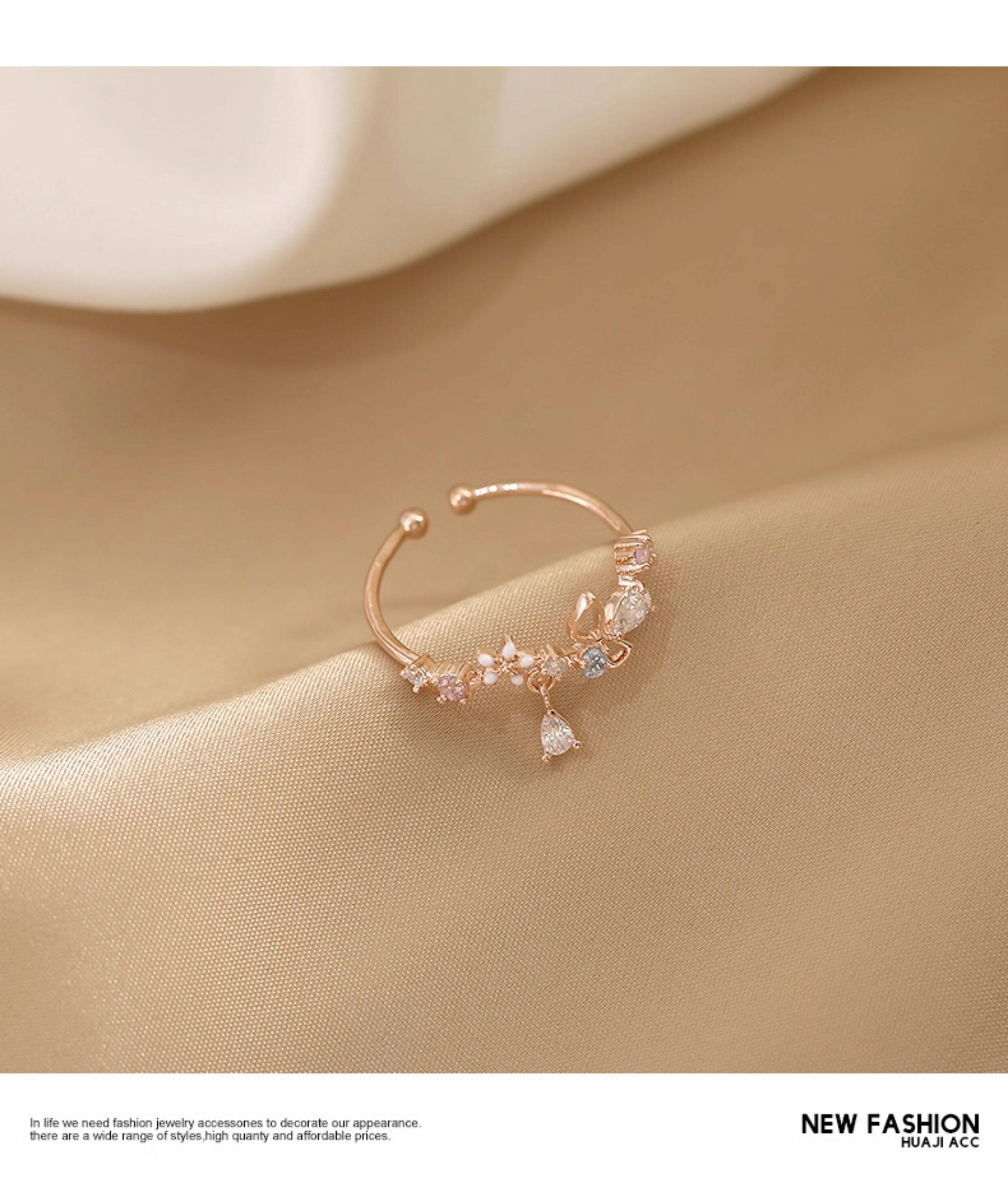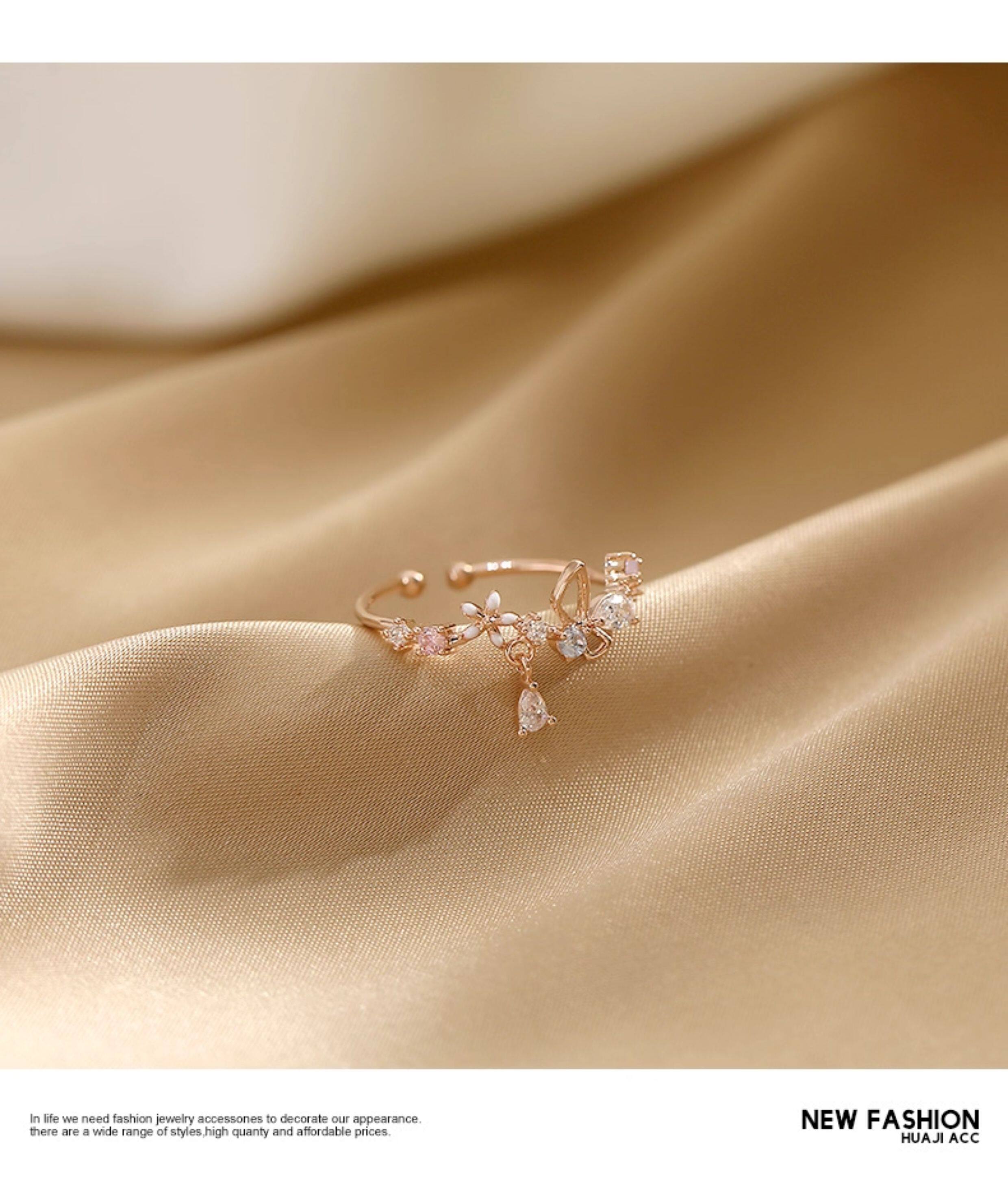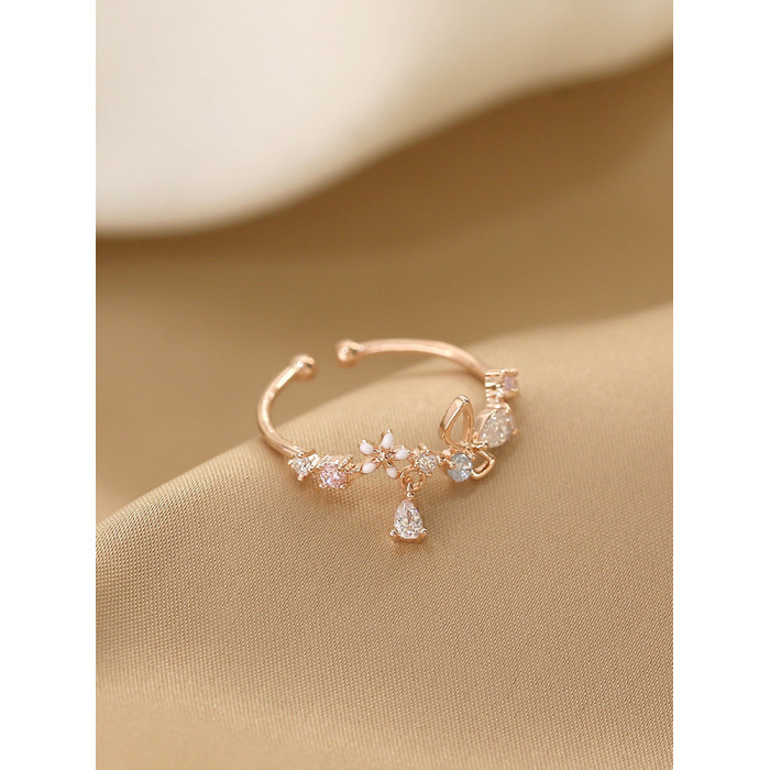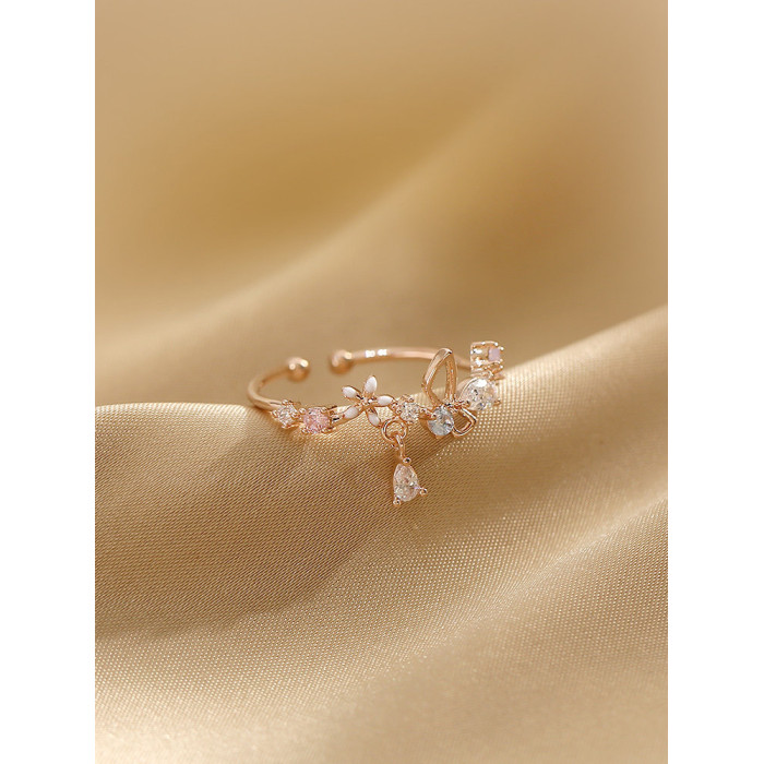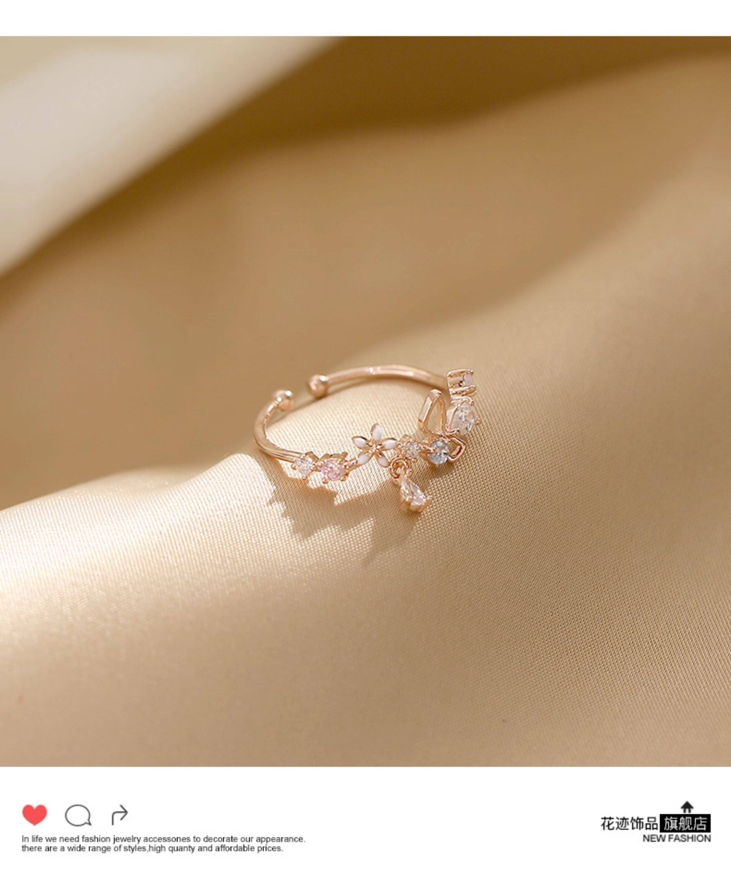 花朵不掉色戒指女潮小清新時尚個性開口可調節小衆設計氣質食指戒