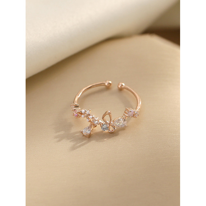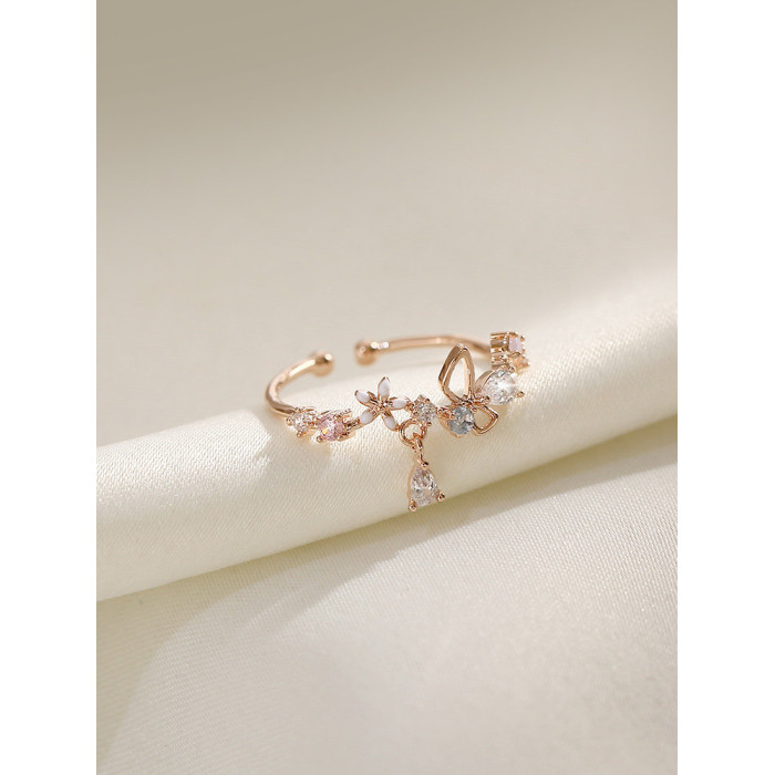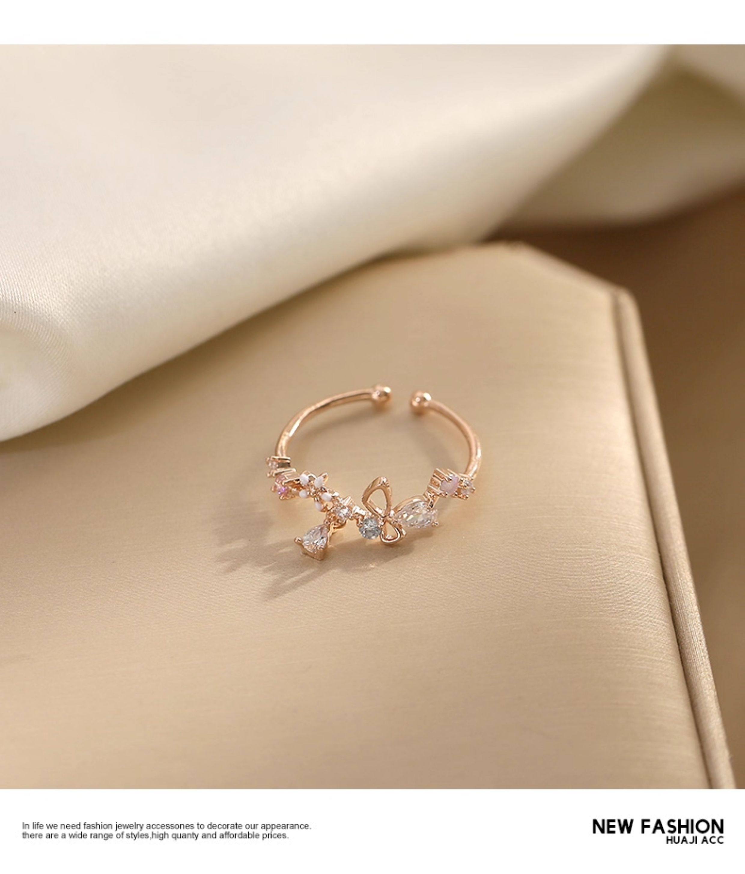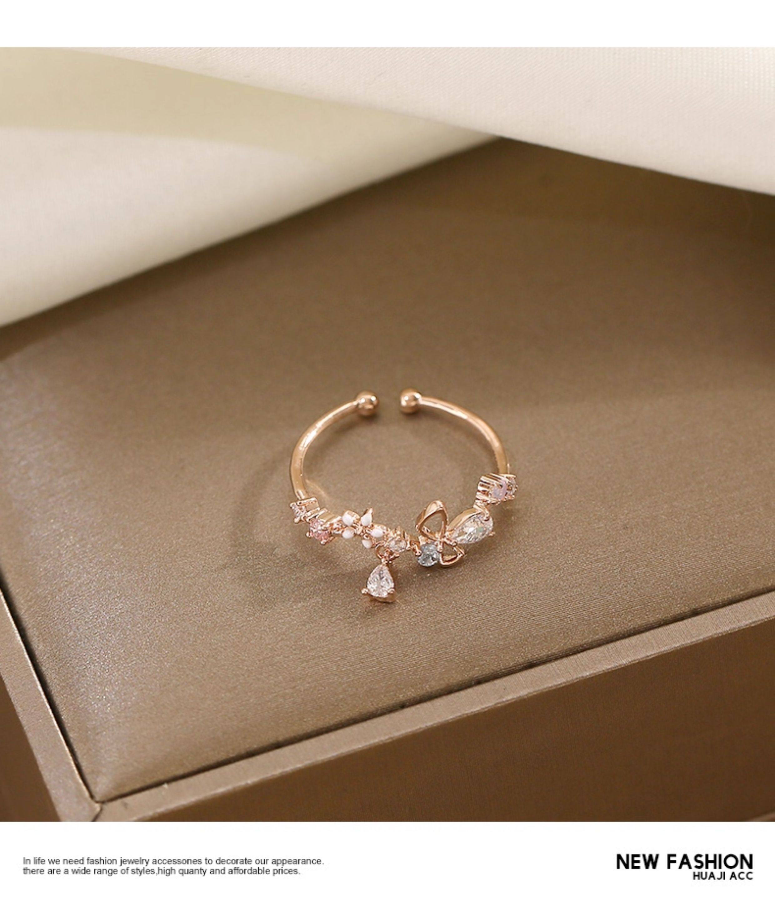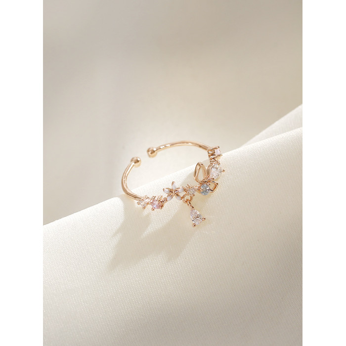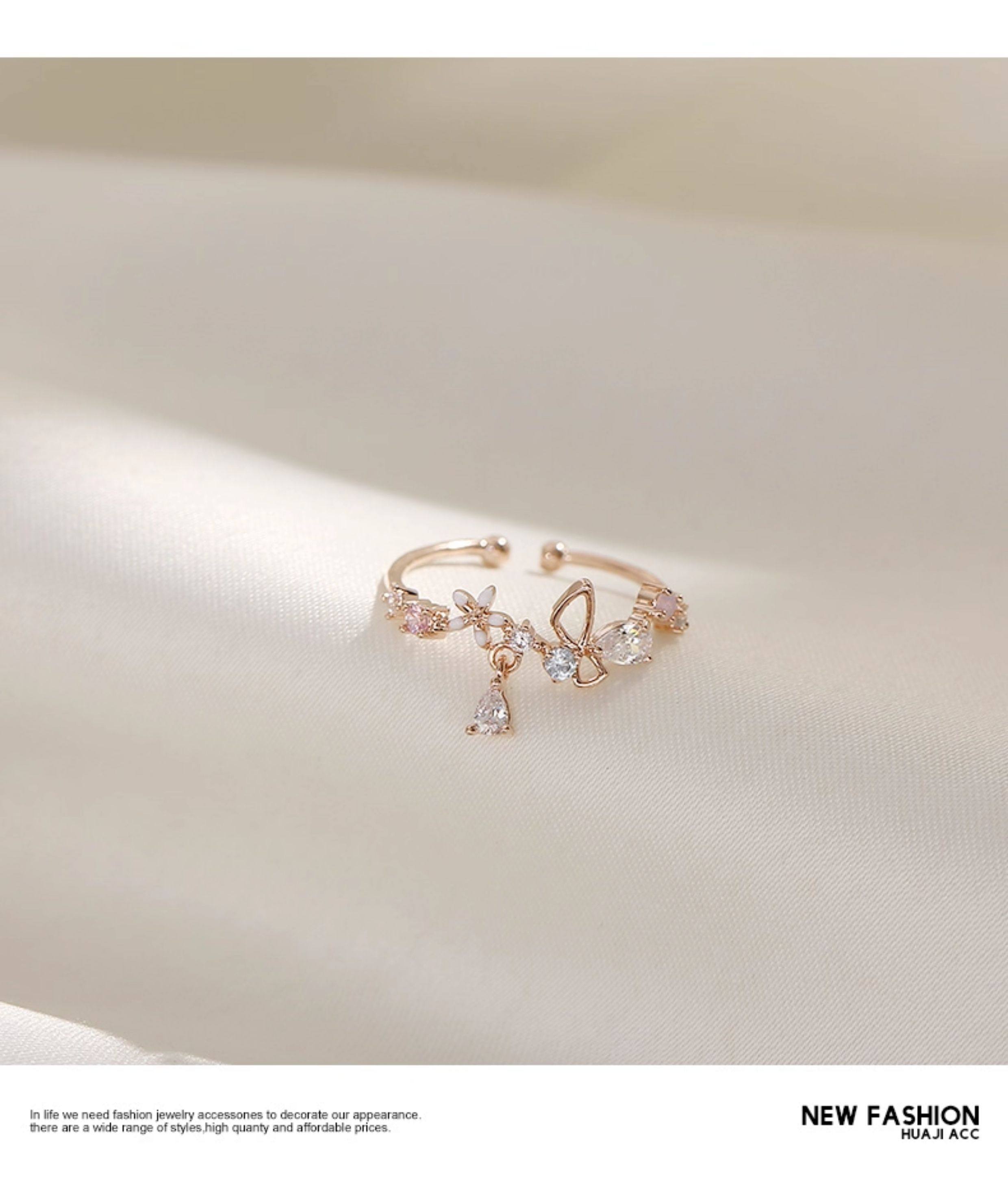 花朵不掉色戒指女潮小清新時尚個性開口可調節小衆設計氣質食指戒