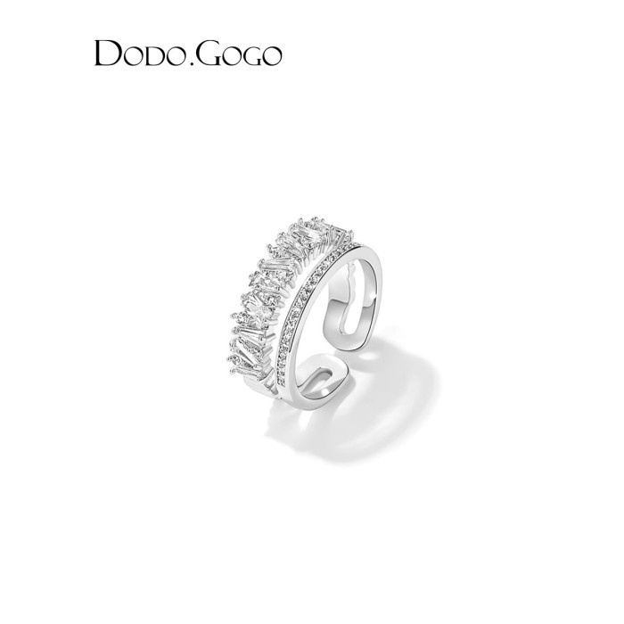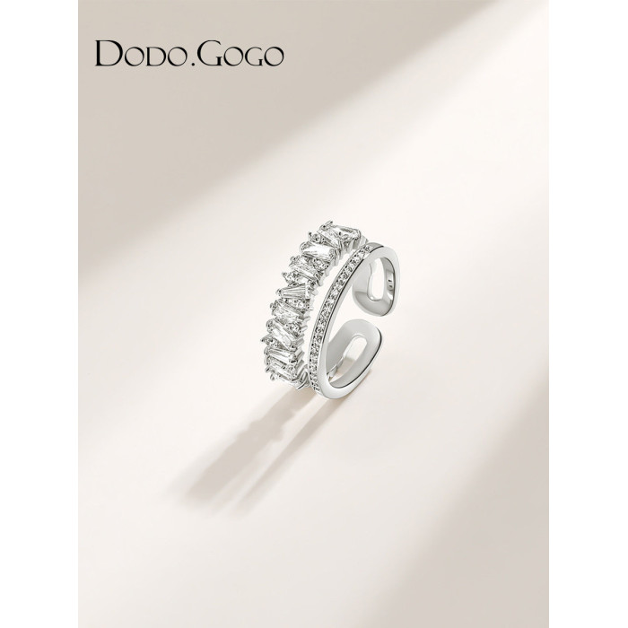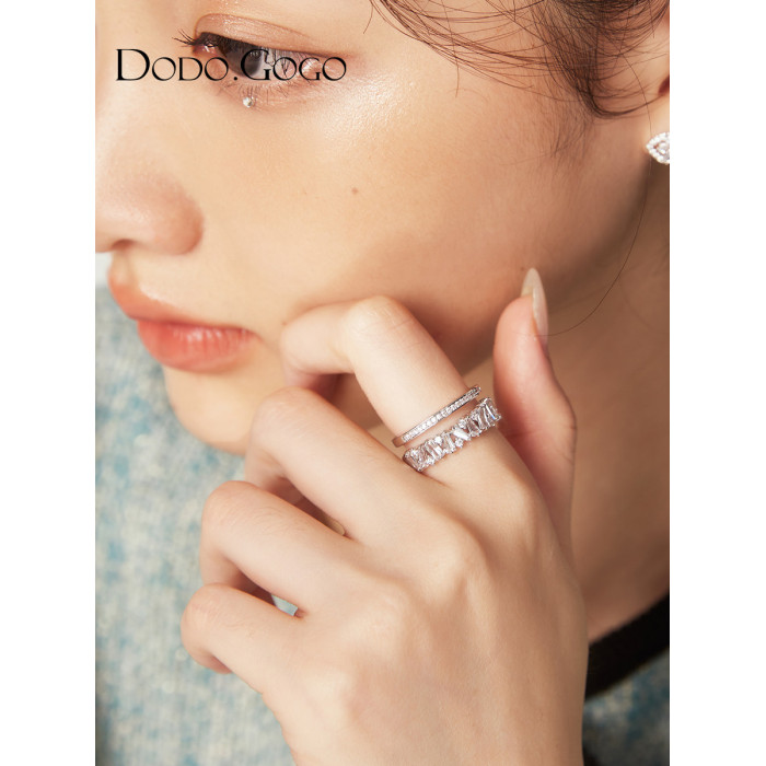 DODOGOGO高級感輕奢戒指女ins潮小衆設計開口戒時尚滿鑽雙層指環