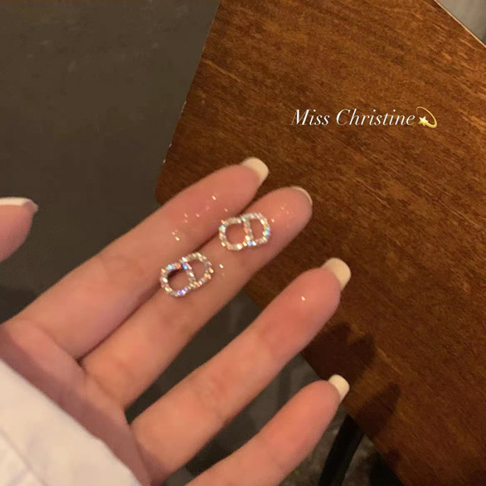 鋯石字母CD耳環女小衆設計感高級輕奢氣質網紅耳釘耳飾無耳洞耳夾
