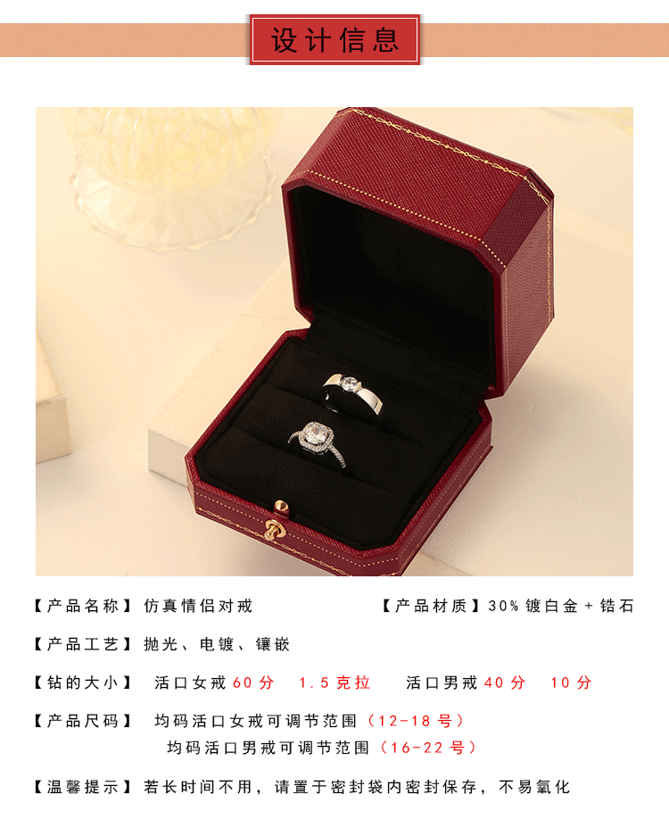 仿真假鑽戒結婚婚禮對戒情侶一對活口可調節戒指婚紗照儀式用道具