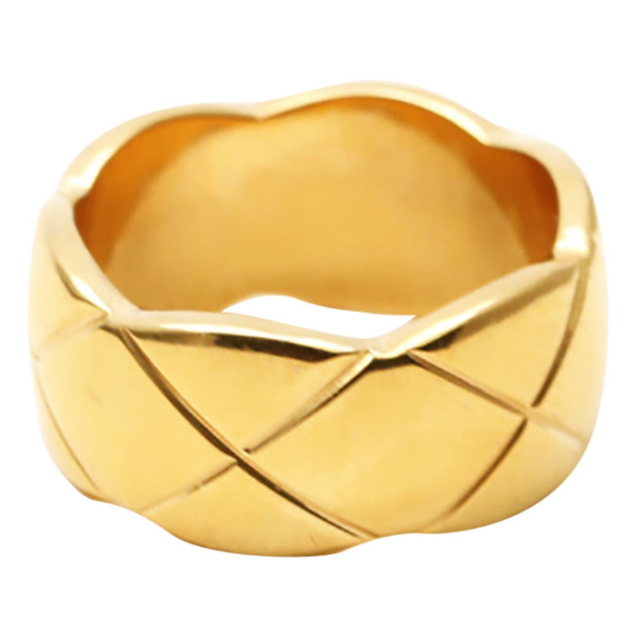 DOUDOU不掉色鈦鋼冷淡風菱格戒指設計金屬復古情侶對戒網紅男女