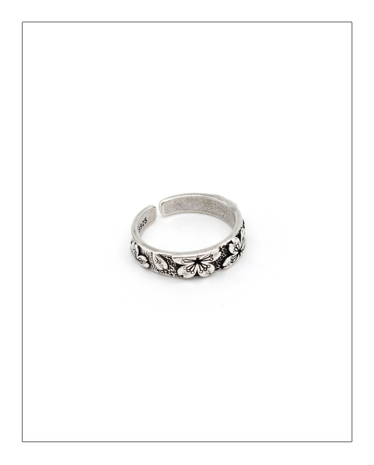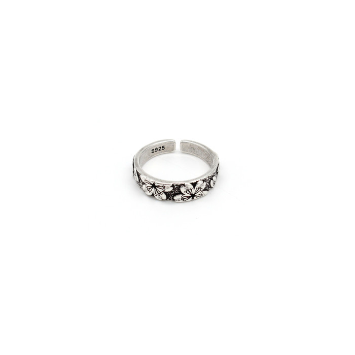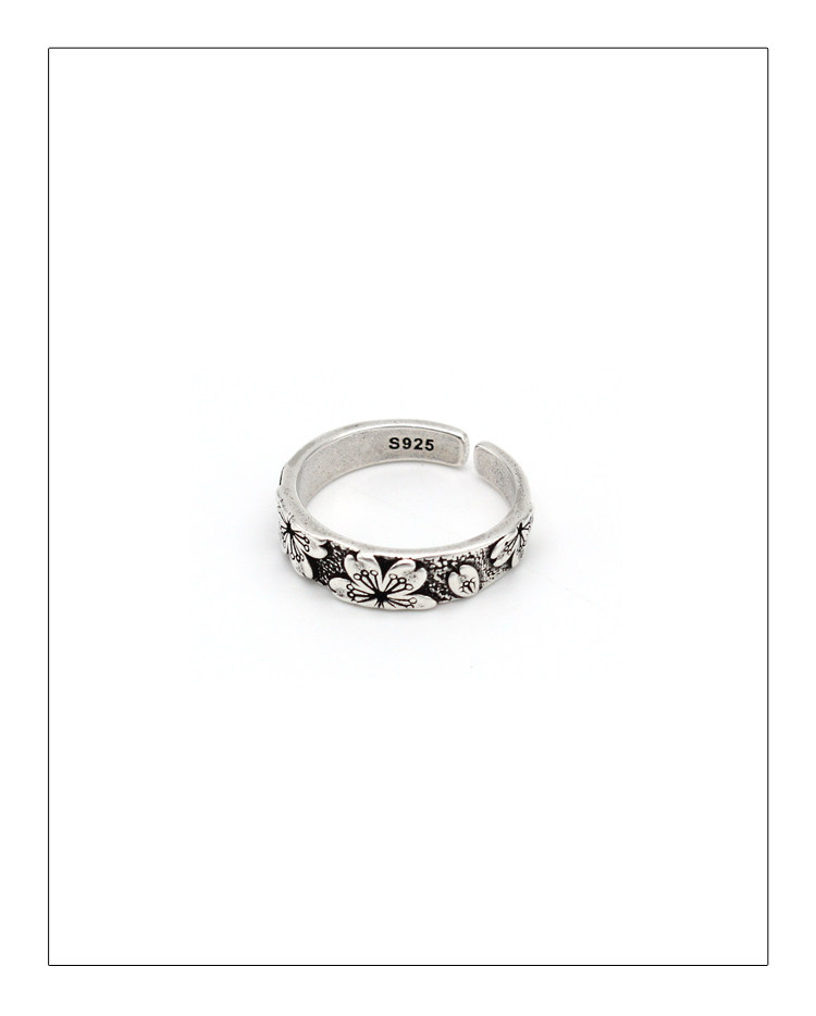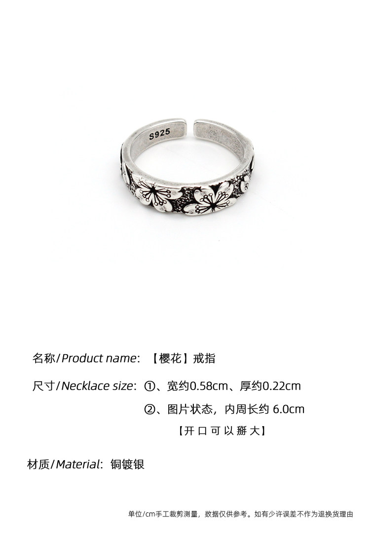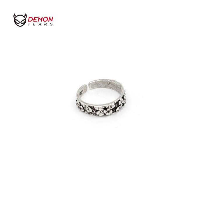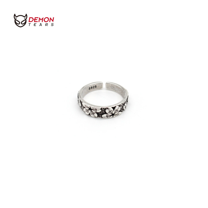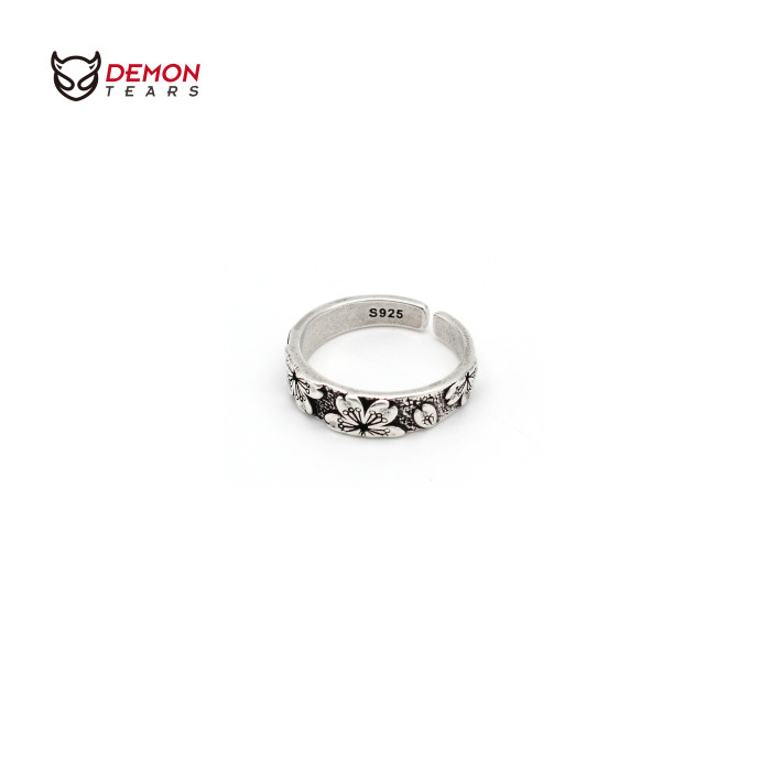DEMONTEARS【櫻花】鍍銀復古小衆設計戒指男女個性開口可調節指環