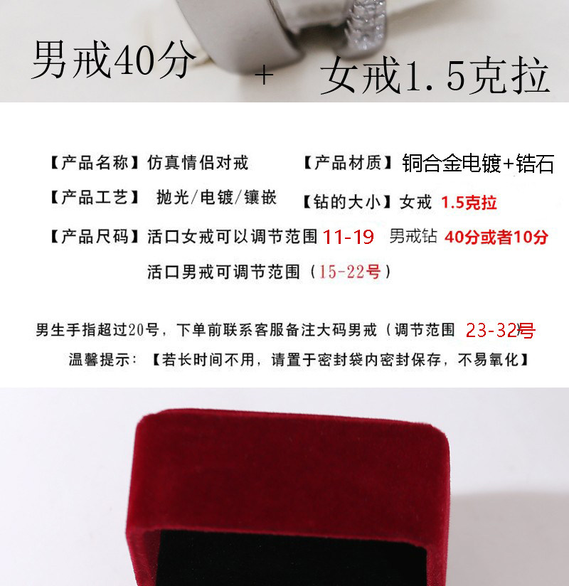 仿真假鑽戒一對情侶結婚對戒活口可調節戒指求婚紗照禮儀式用道具