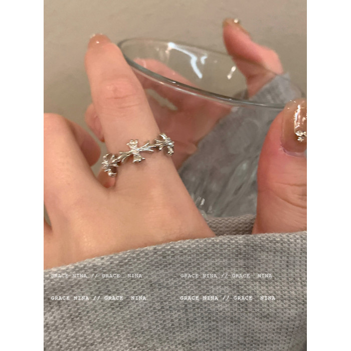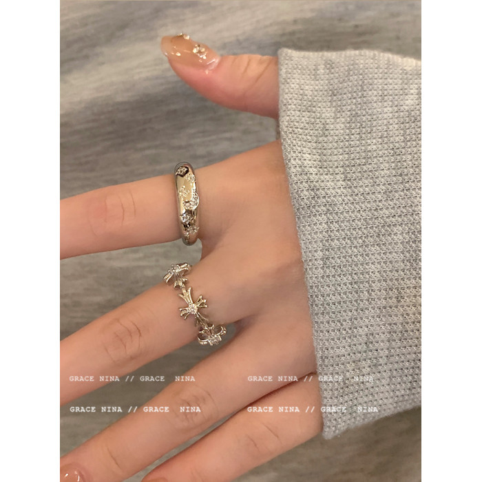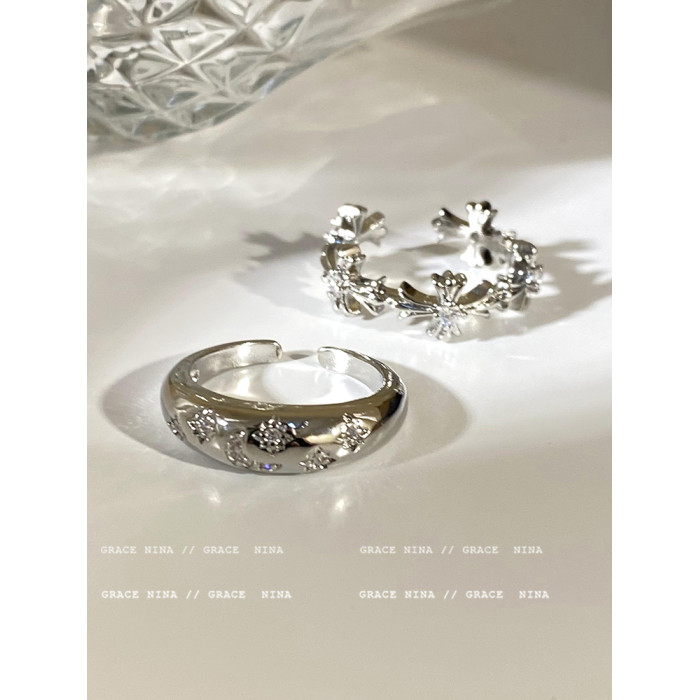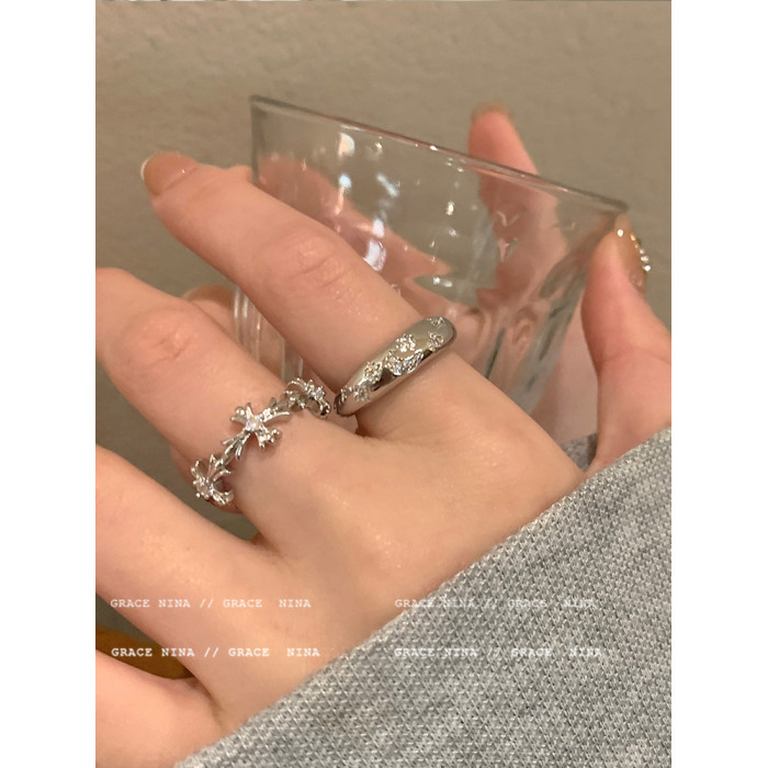 冷淡風~銀色鋯石十字架戒指女小衆設計ins輕奢食指戒個性情侶對戒