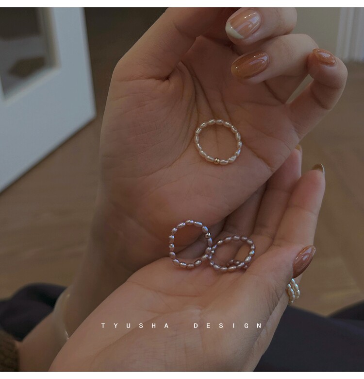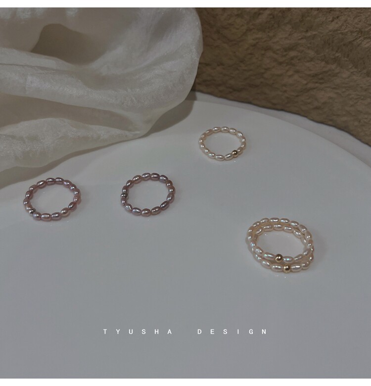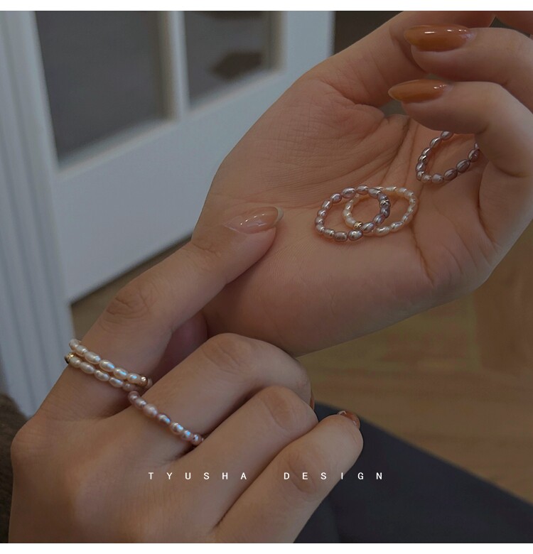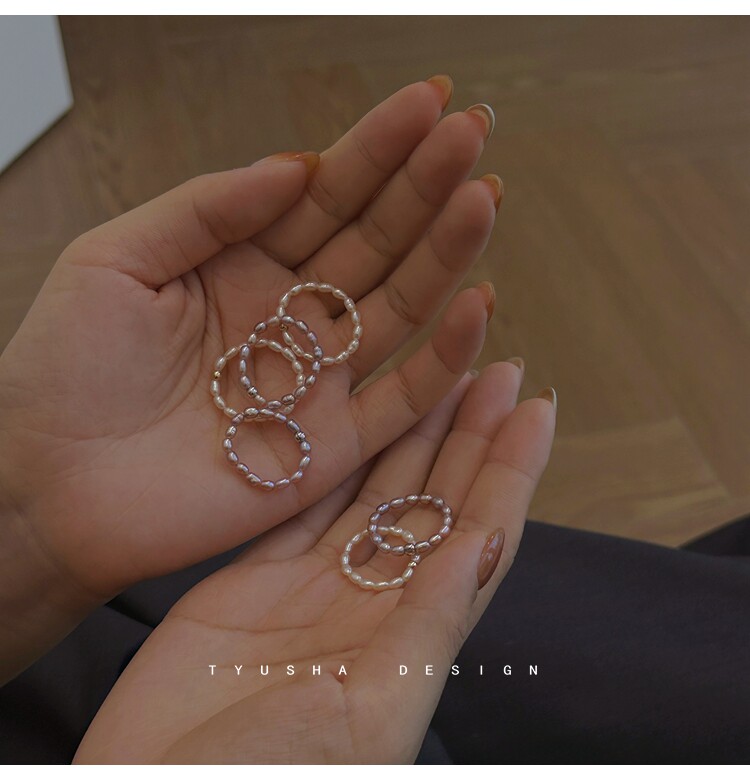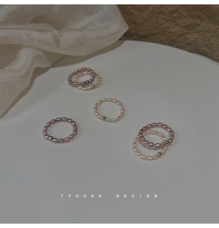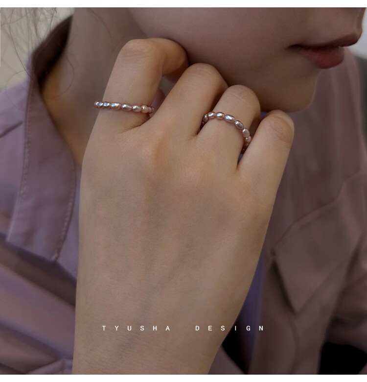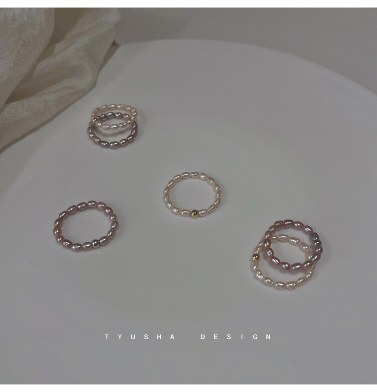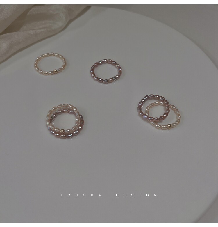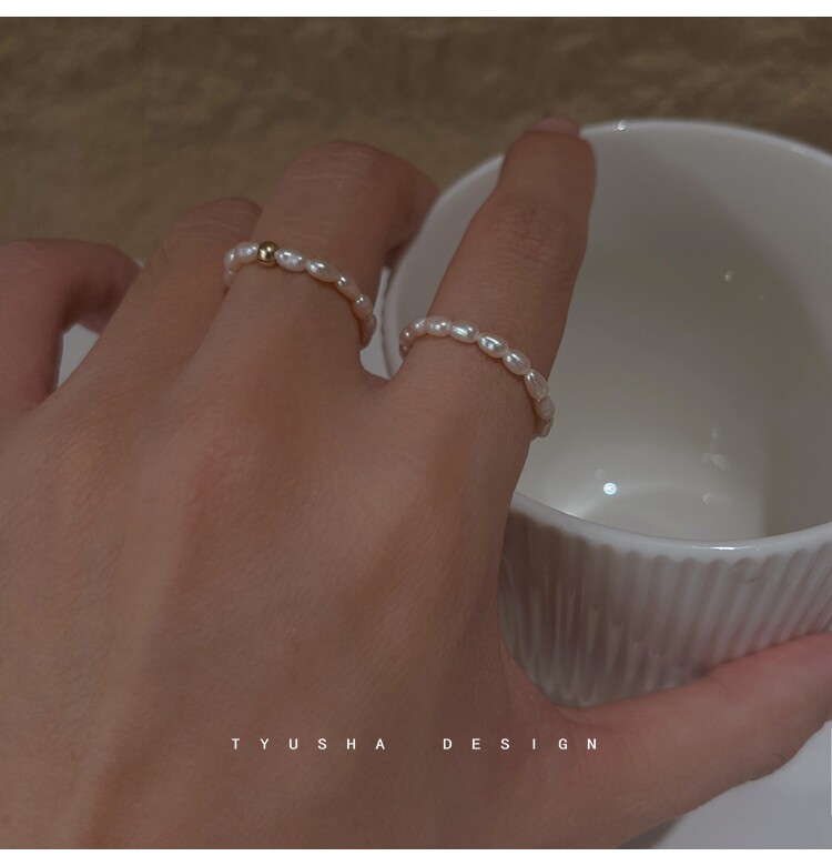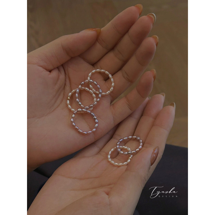 TYUSHA天然異色小米粒珍珠戒指女美産包金S925銀曡戴指環不掉皮
