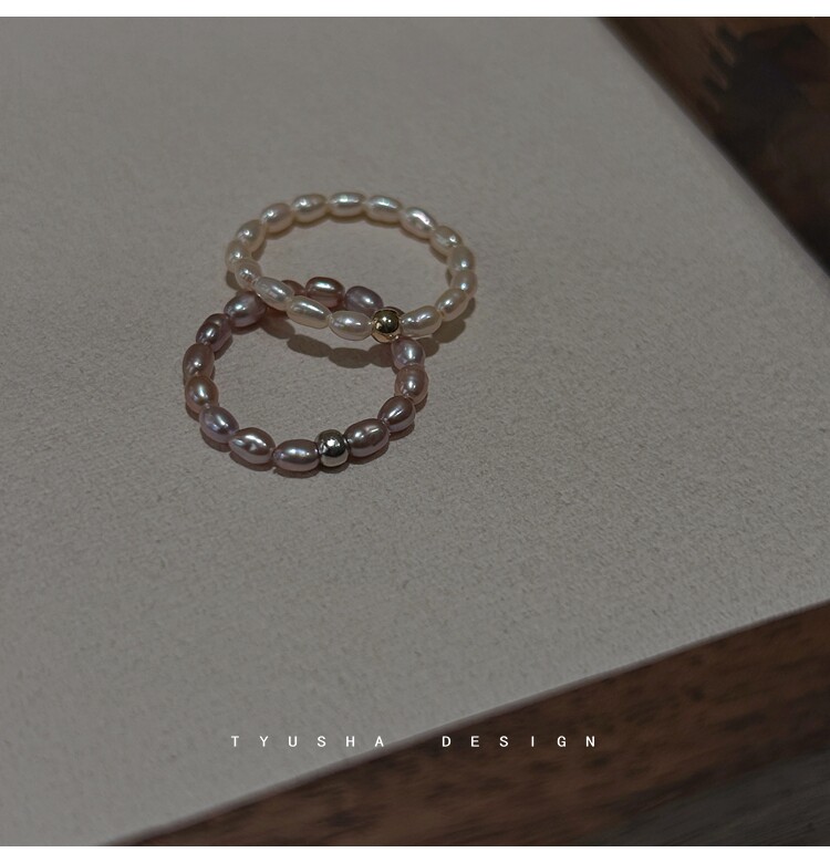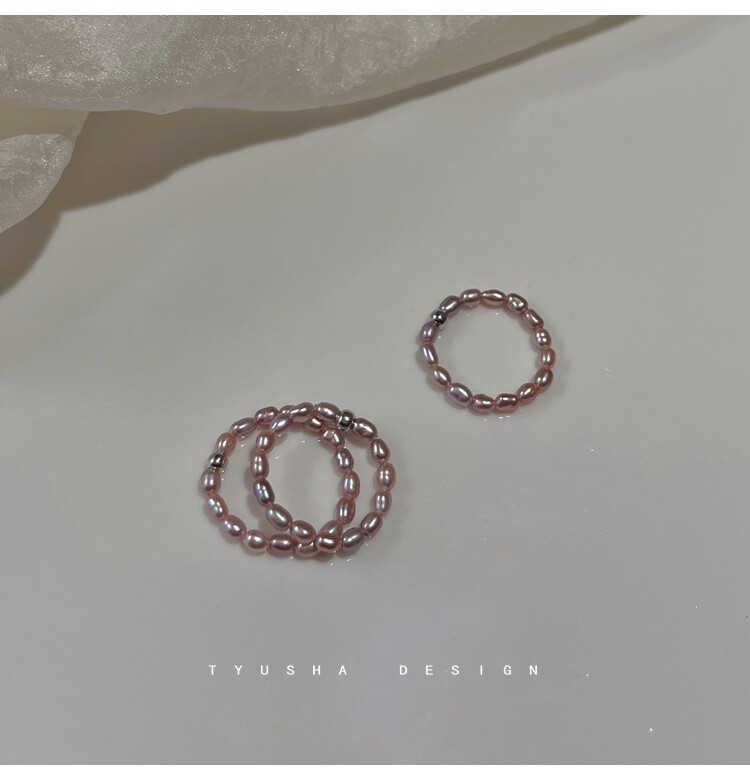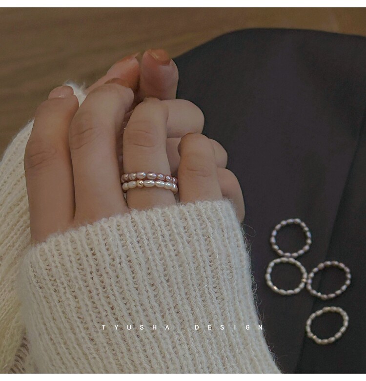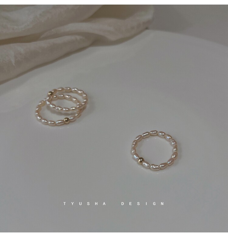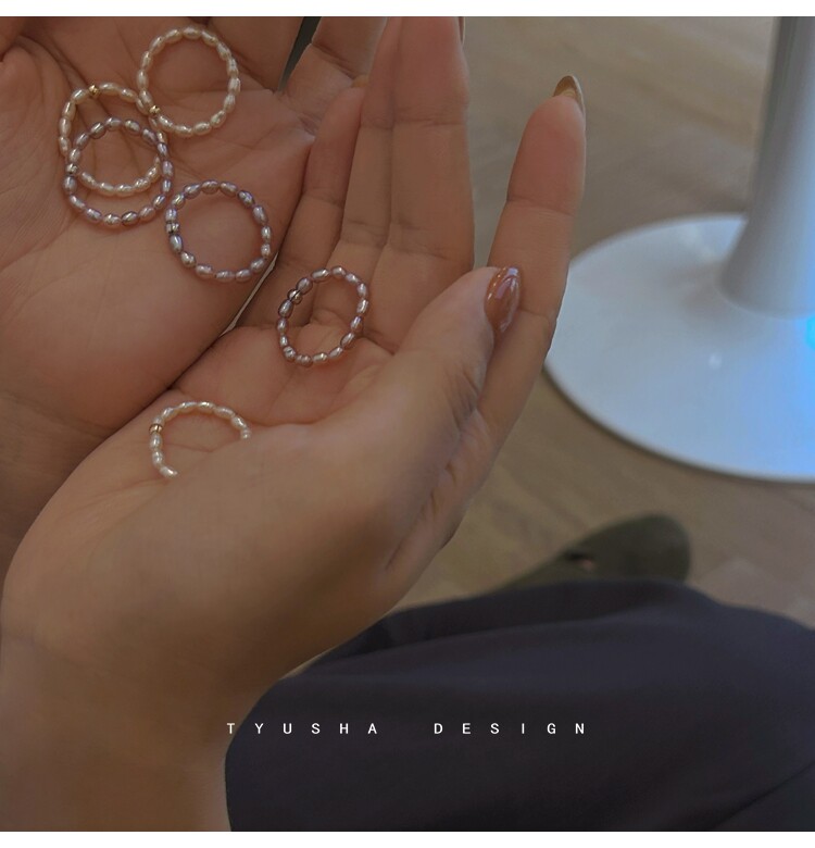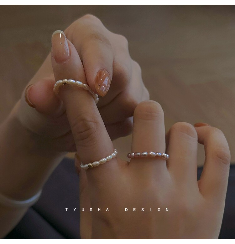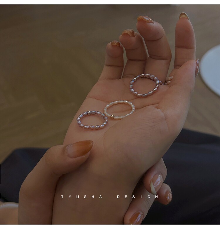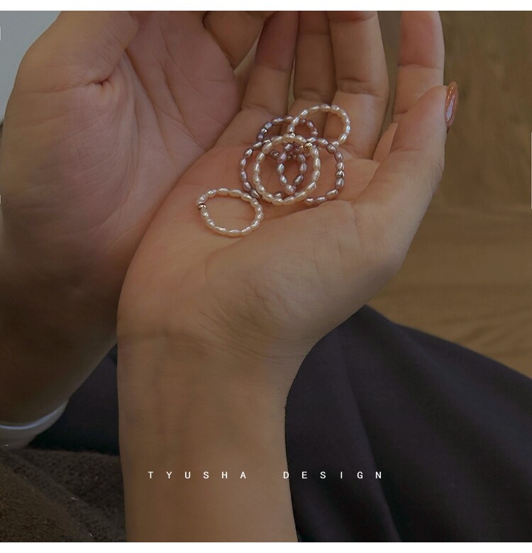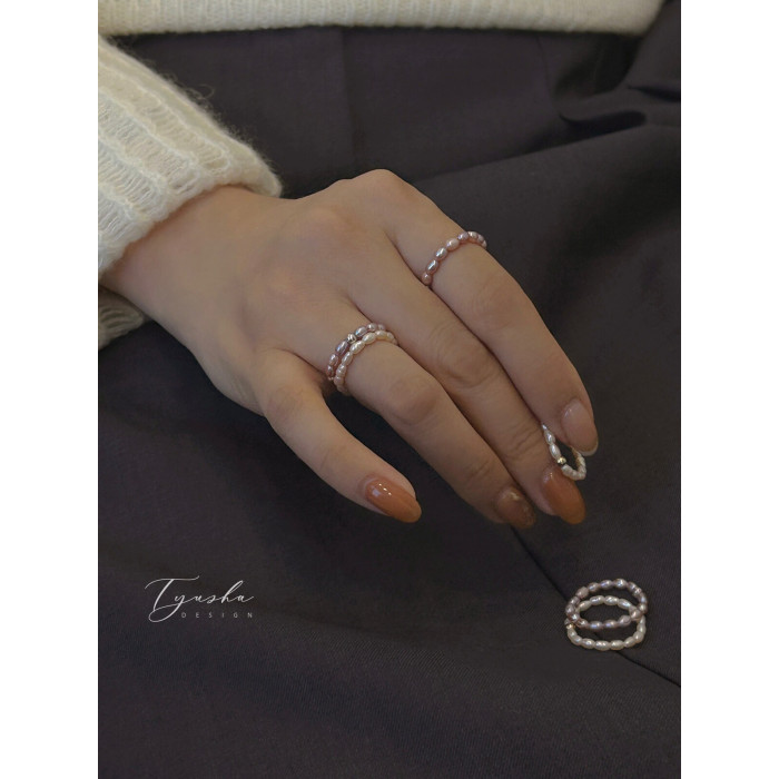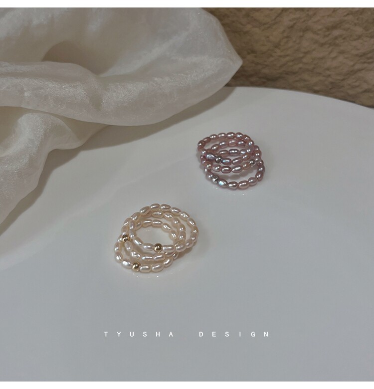 TYUSHA天然異色小米粒珍珠戒指女美産包金S925銀曡戴指環不掉皮
