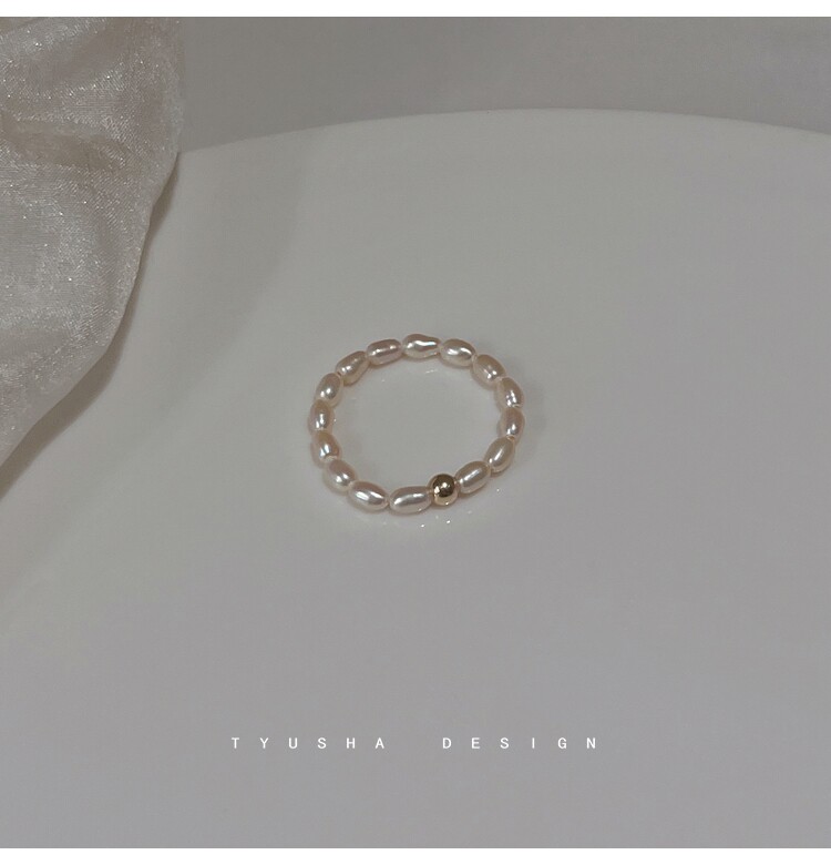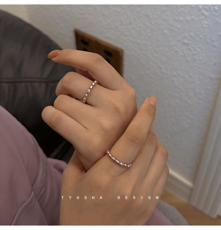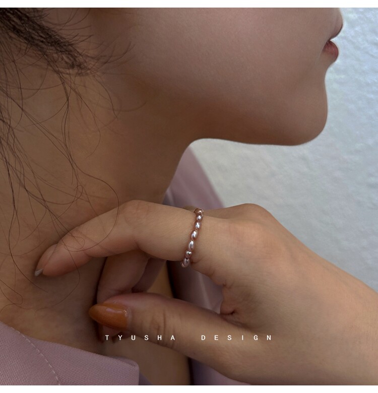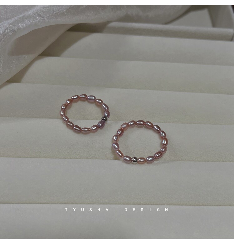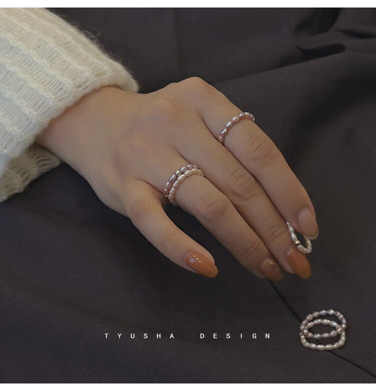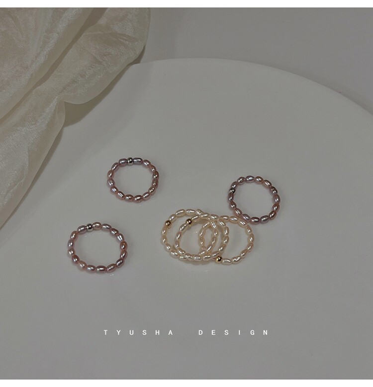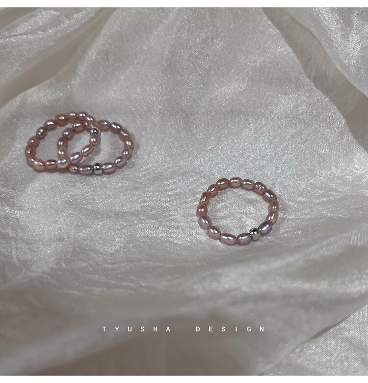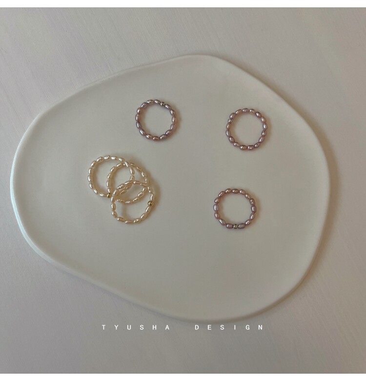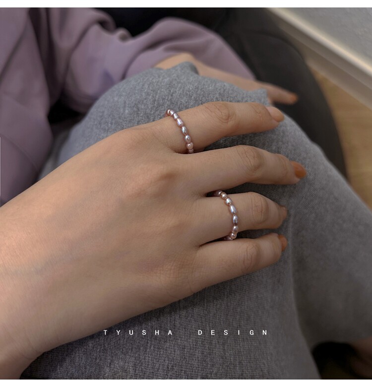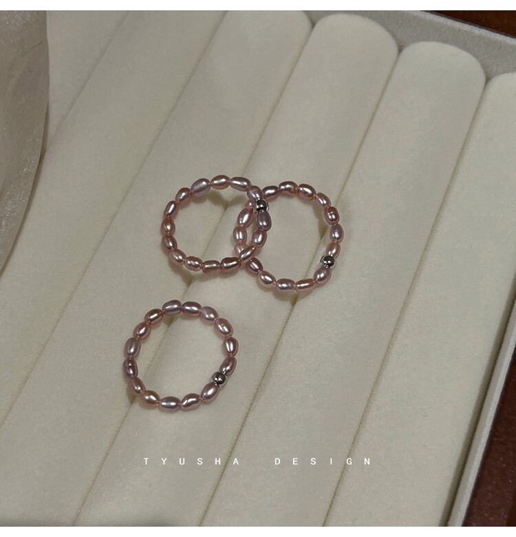 TYUSHA天然異色小米粒珍珠戒指女美産包金S925銀曡戴指環不掉皮