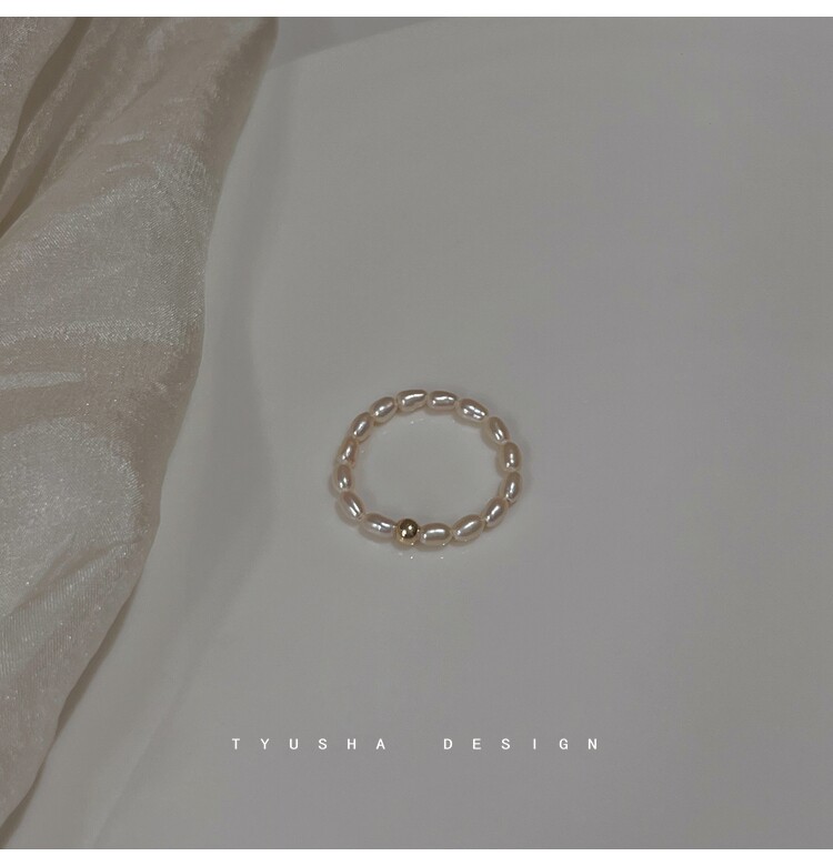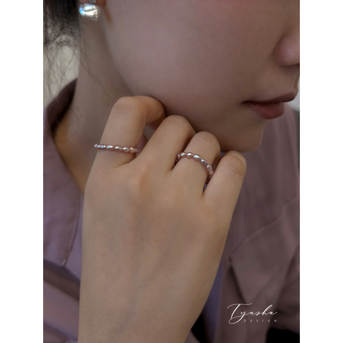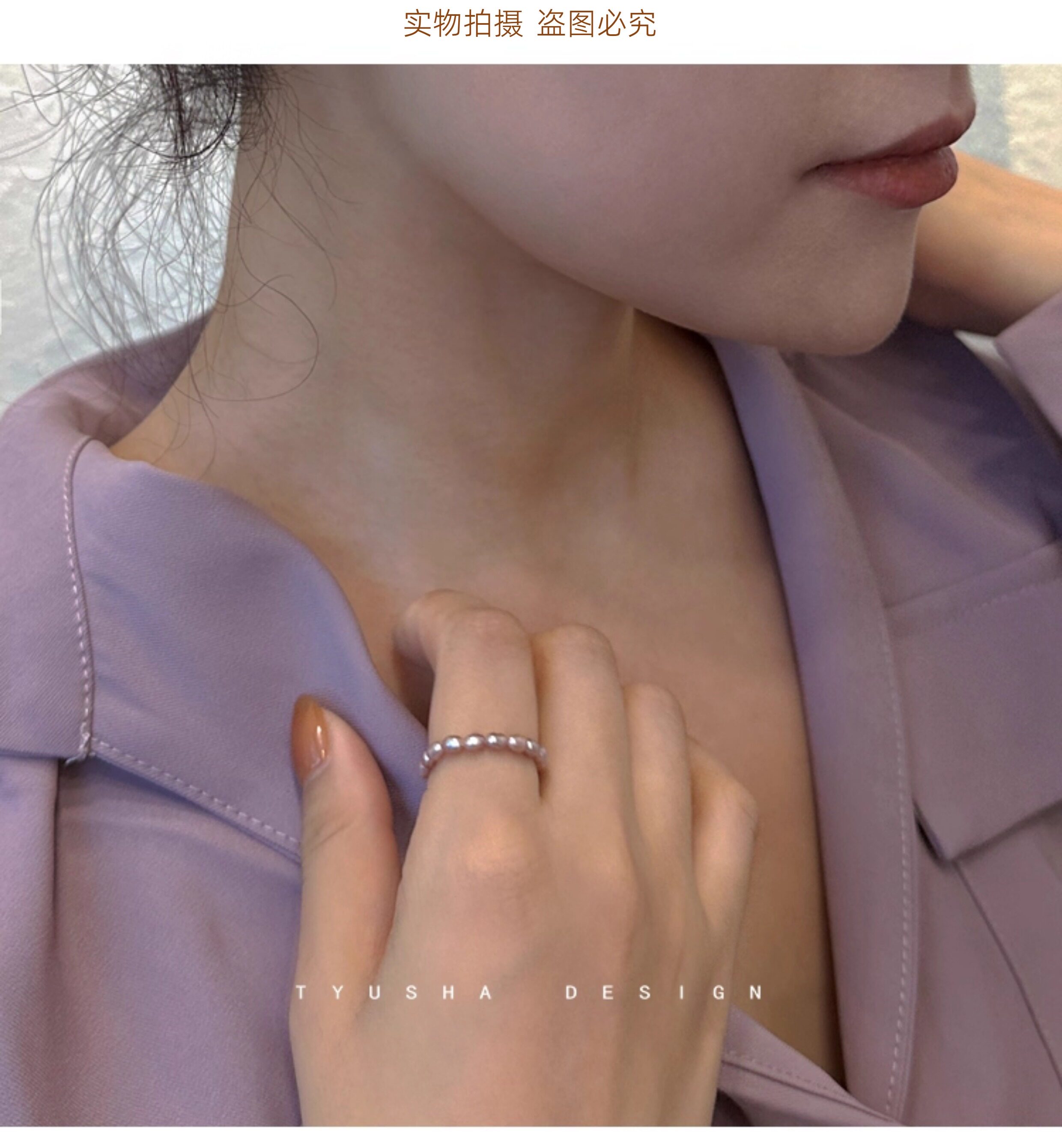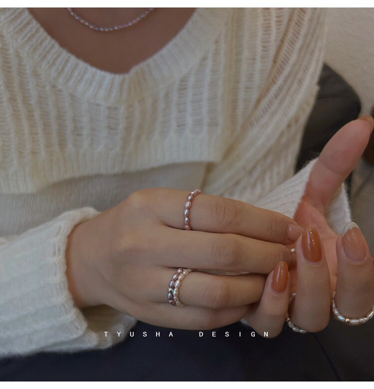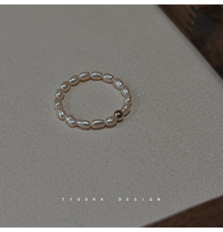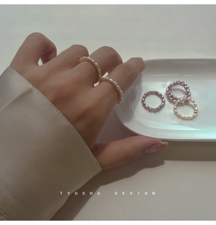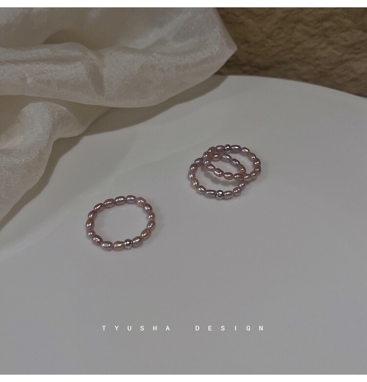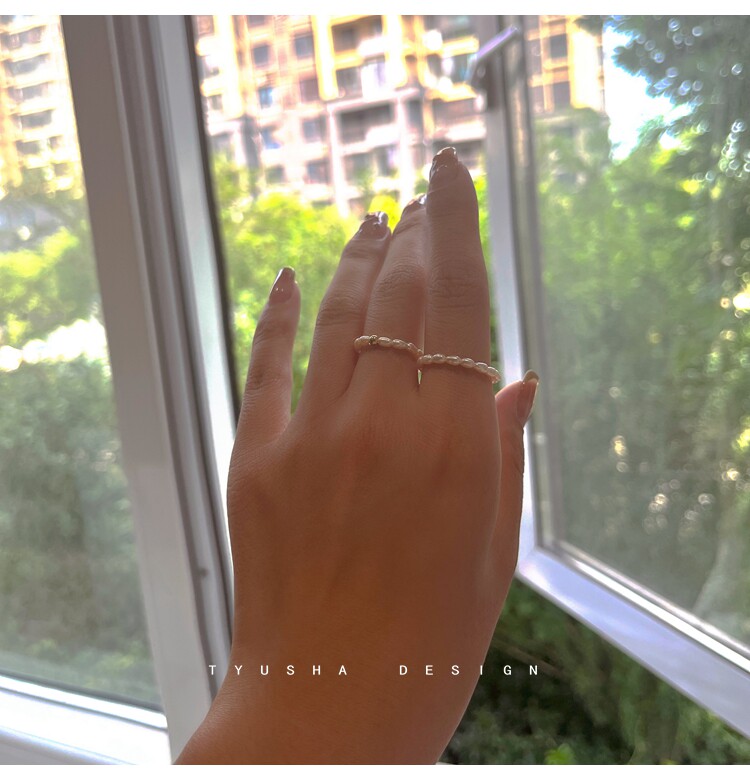 TYUSHA天然異色小米粒珍珠戒指女美産包金S925銀曡戴指環不掉皮