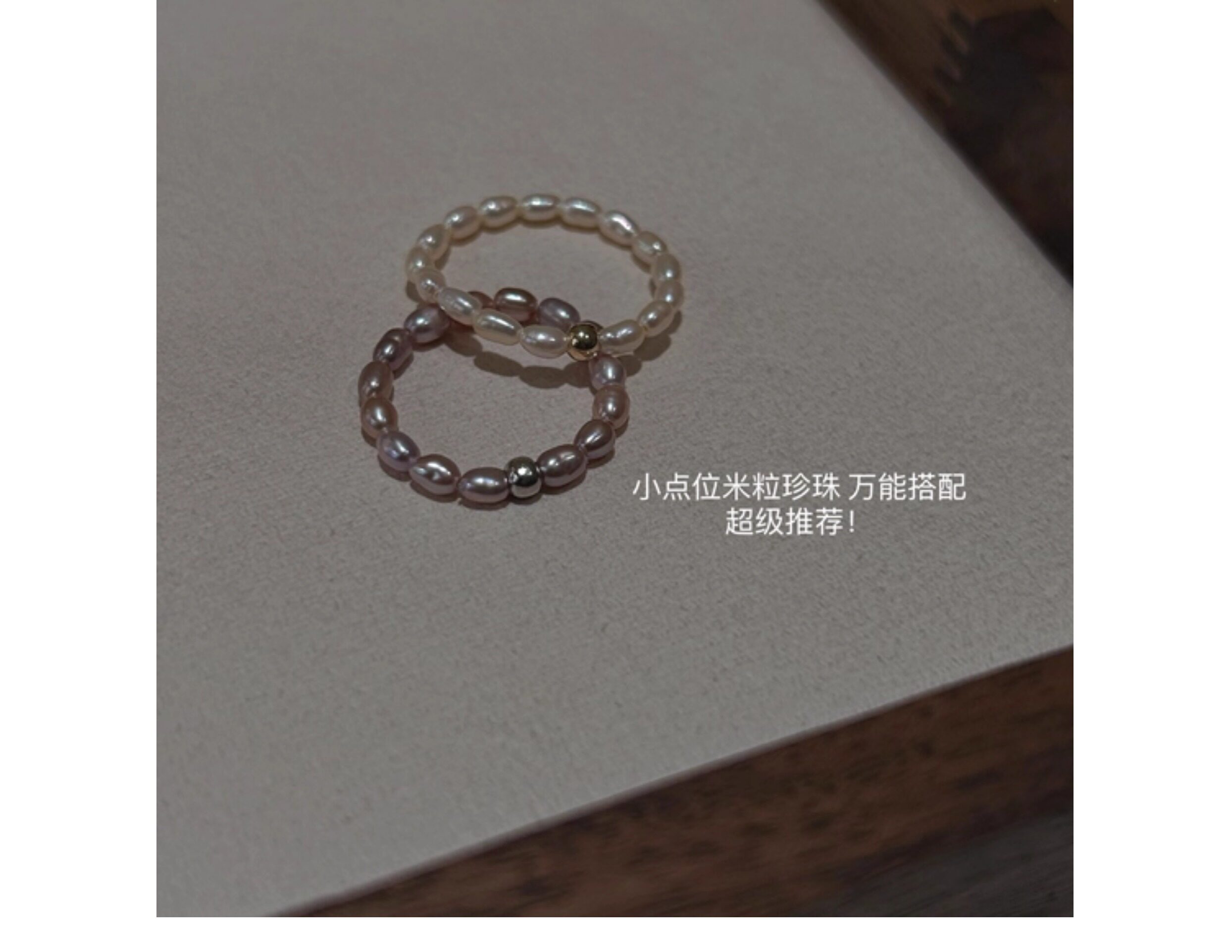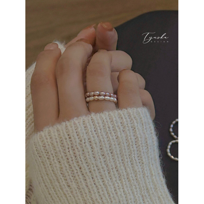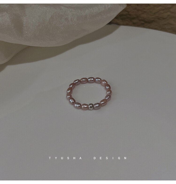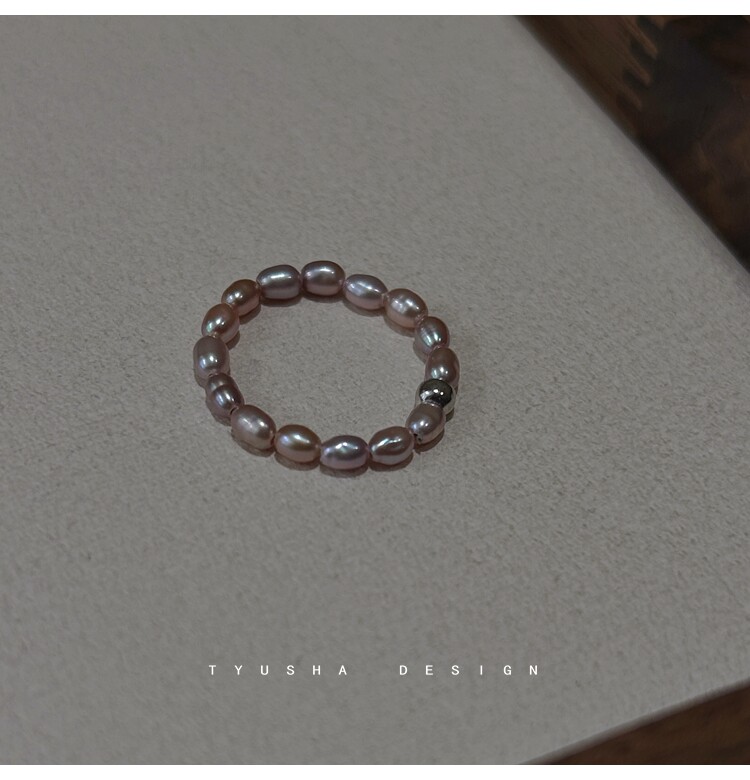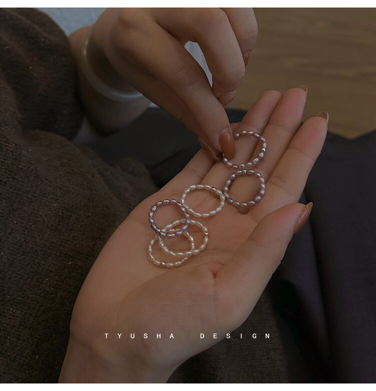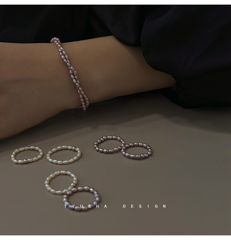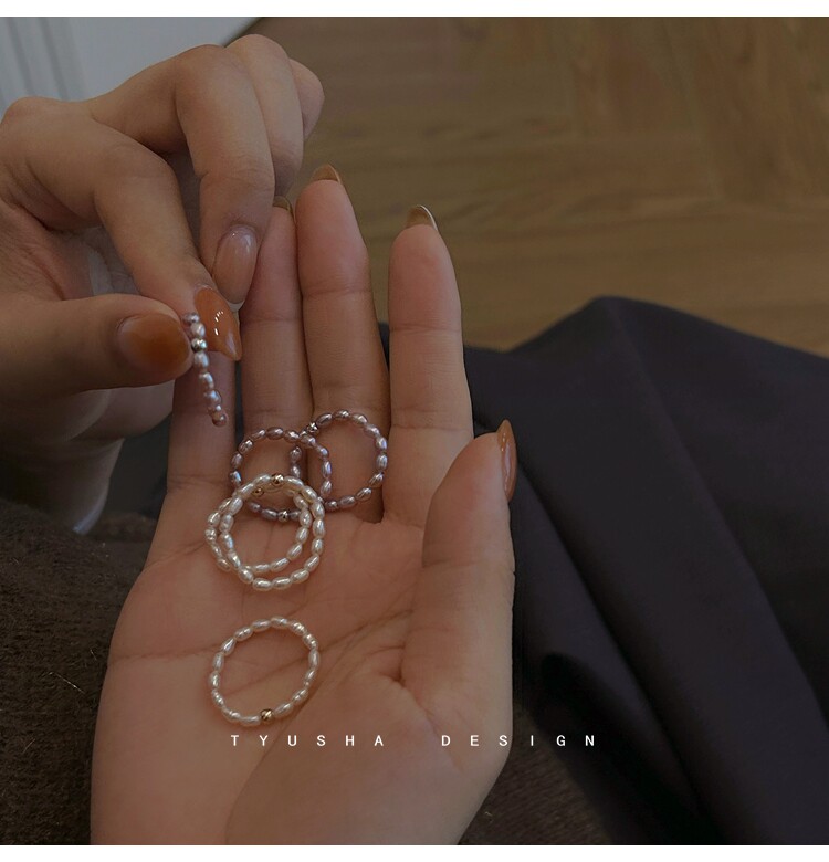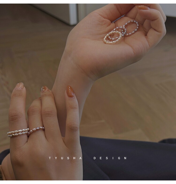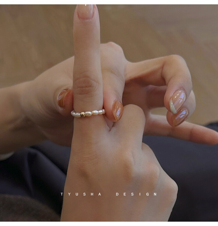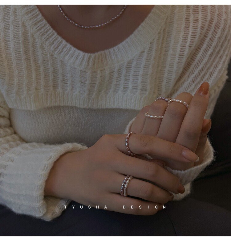 TYUSHA天然異色小米粒珍珠戒指女美産包金S925銀曡戴指環不掉皮