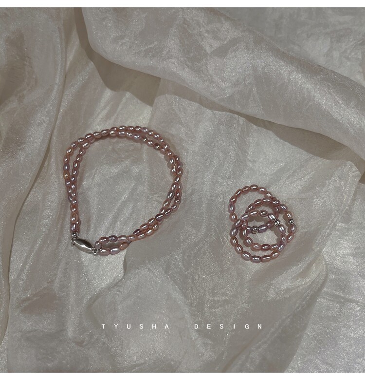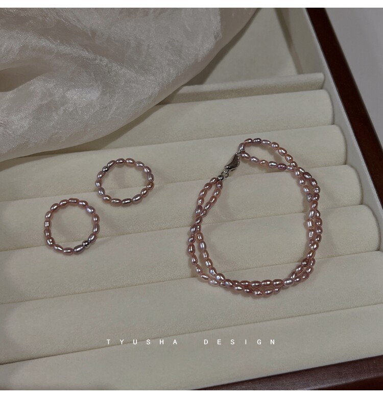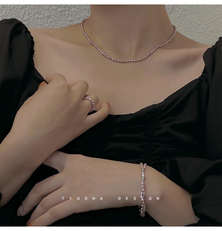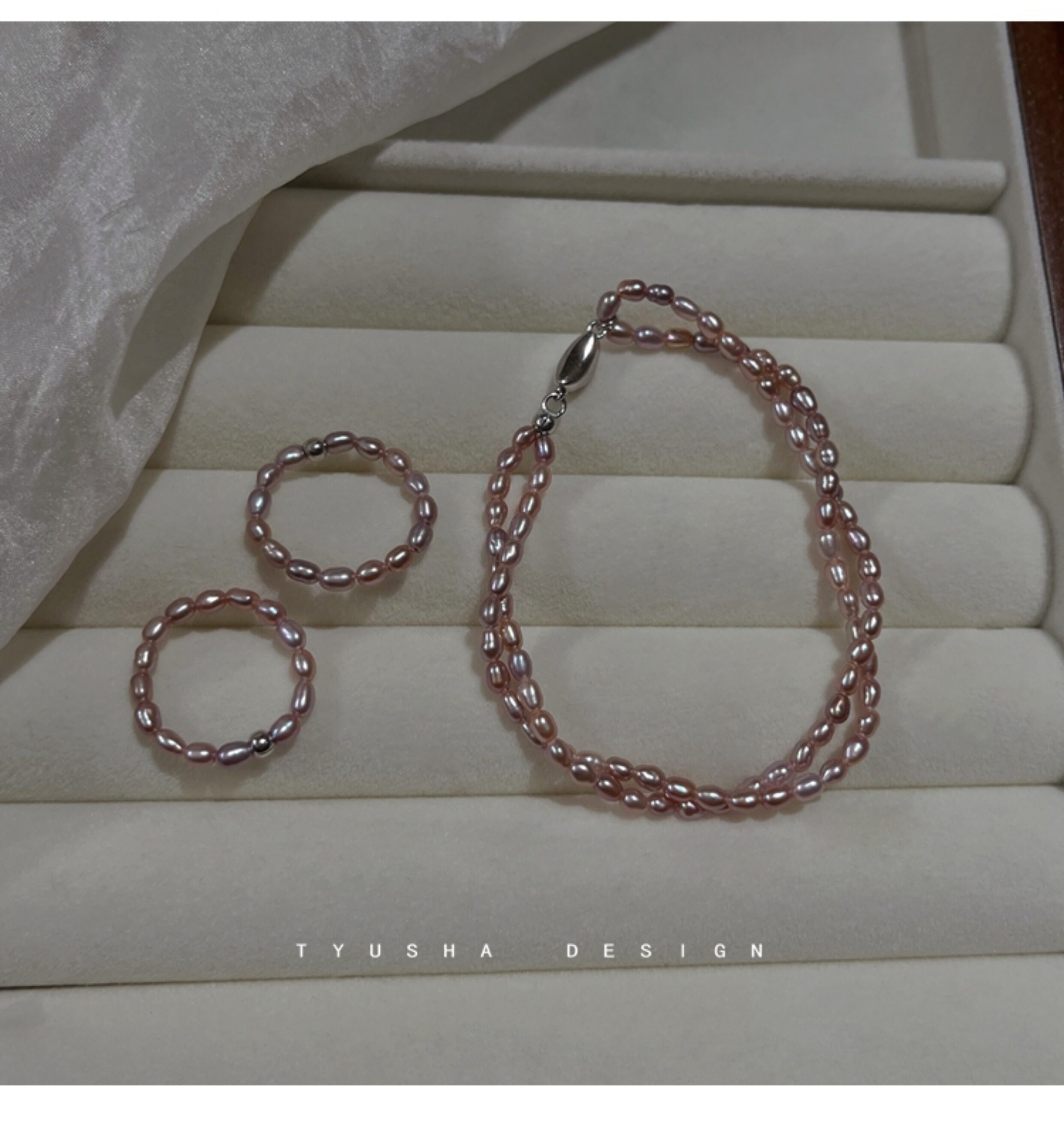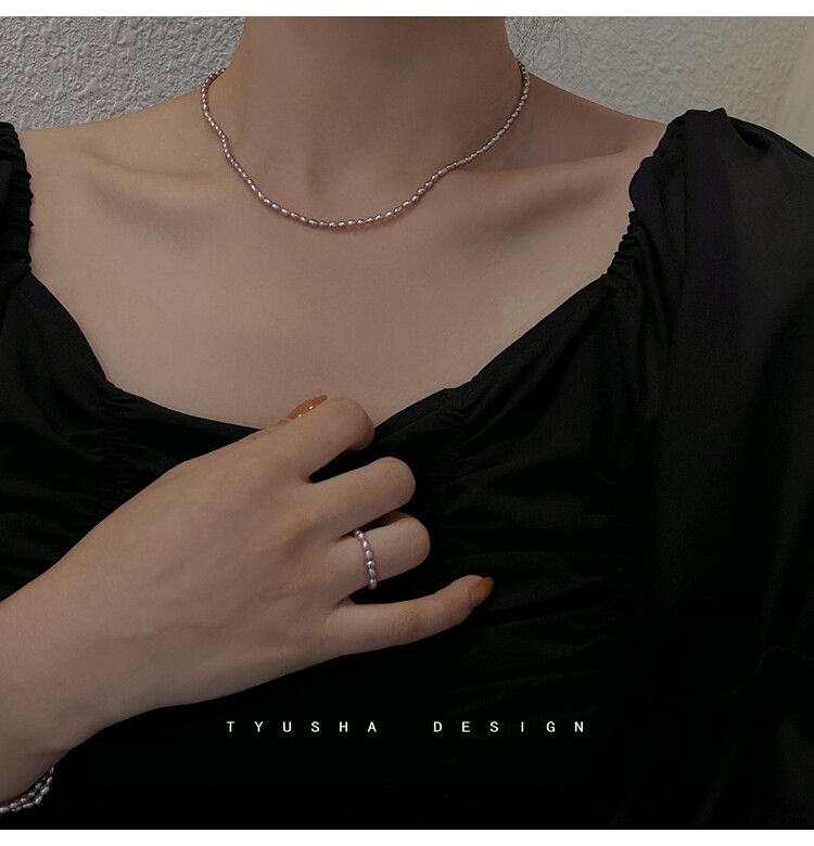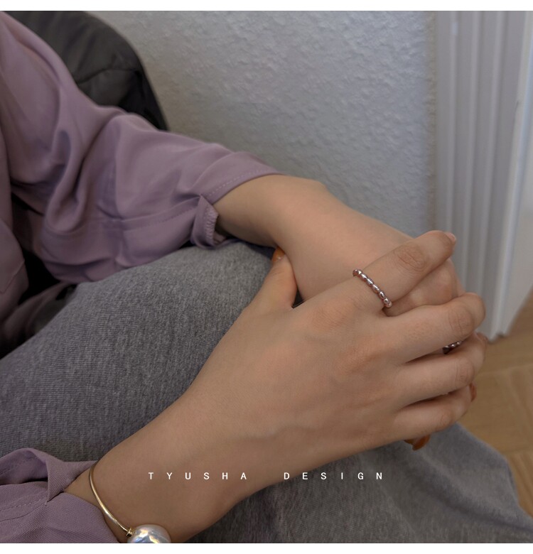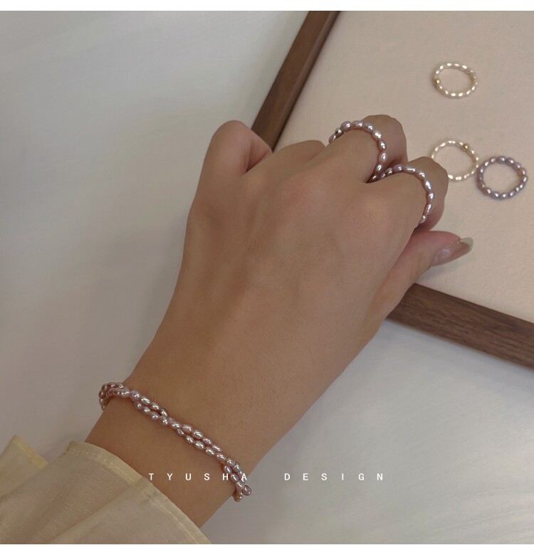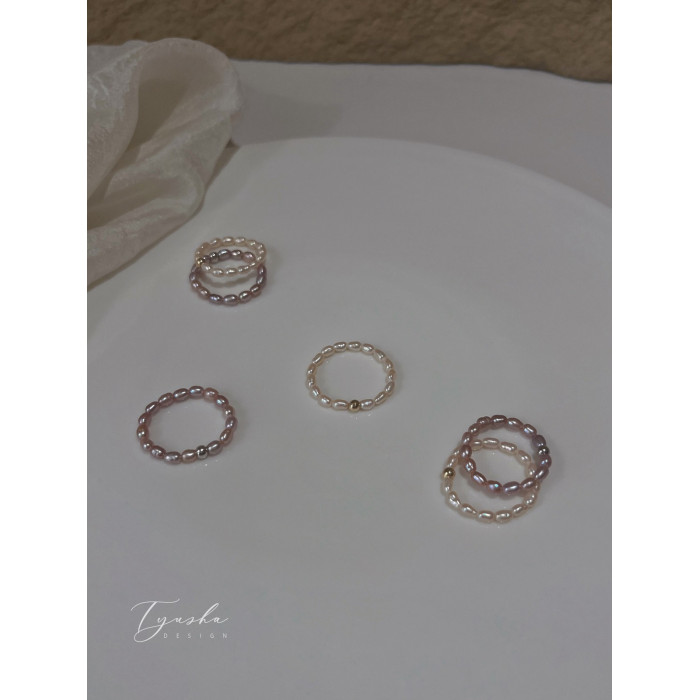 TYUSHA天然異色小米粒珍珠戒指女美産包金S925銀曡戴指環不掉皮