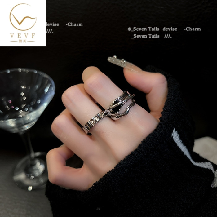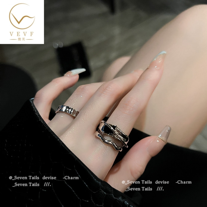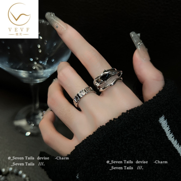 幾何冷淡風ins黑水晶戒指小衆設計時尚個性高級感開口戒網紅女潮