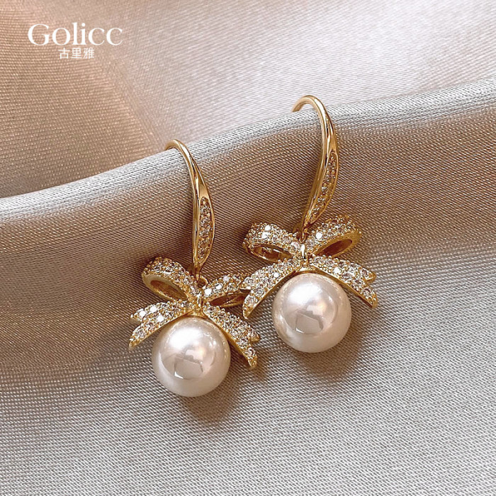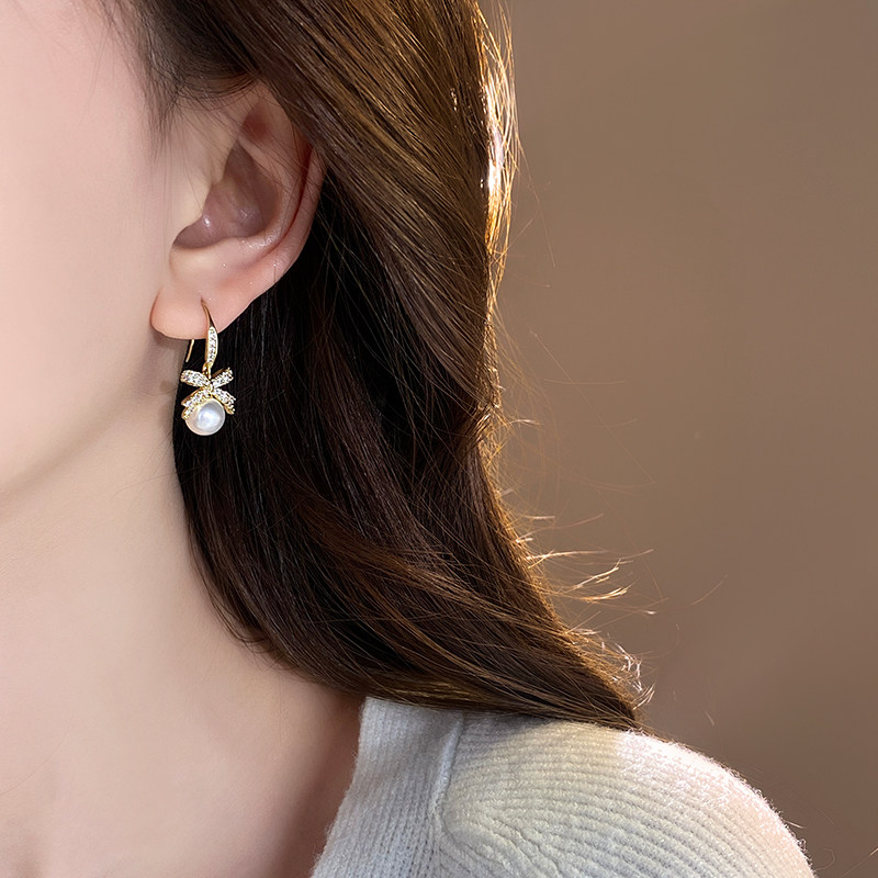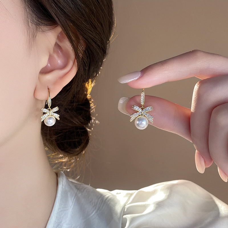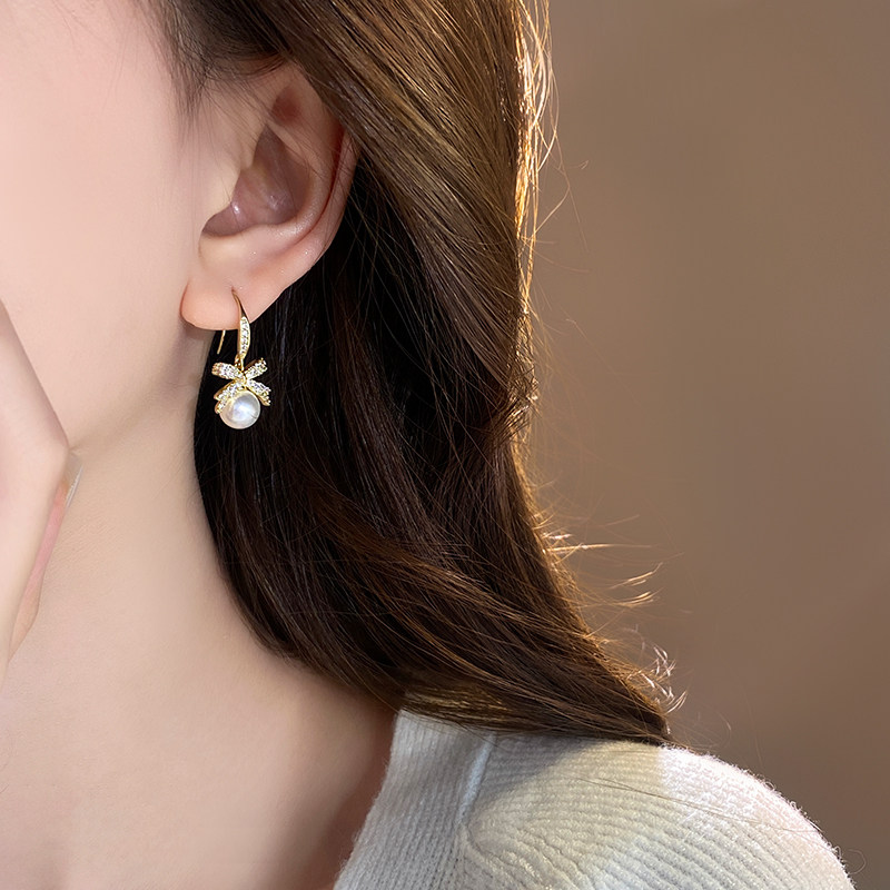 蝴蝶結珍珠吊墜耳環2026新款爆款高級感輕奢耳墜女氣質耳釘耳飾品