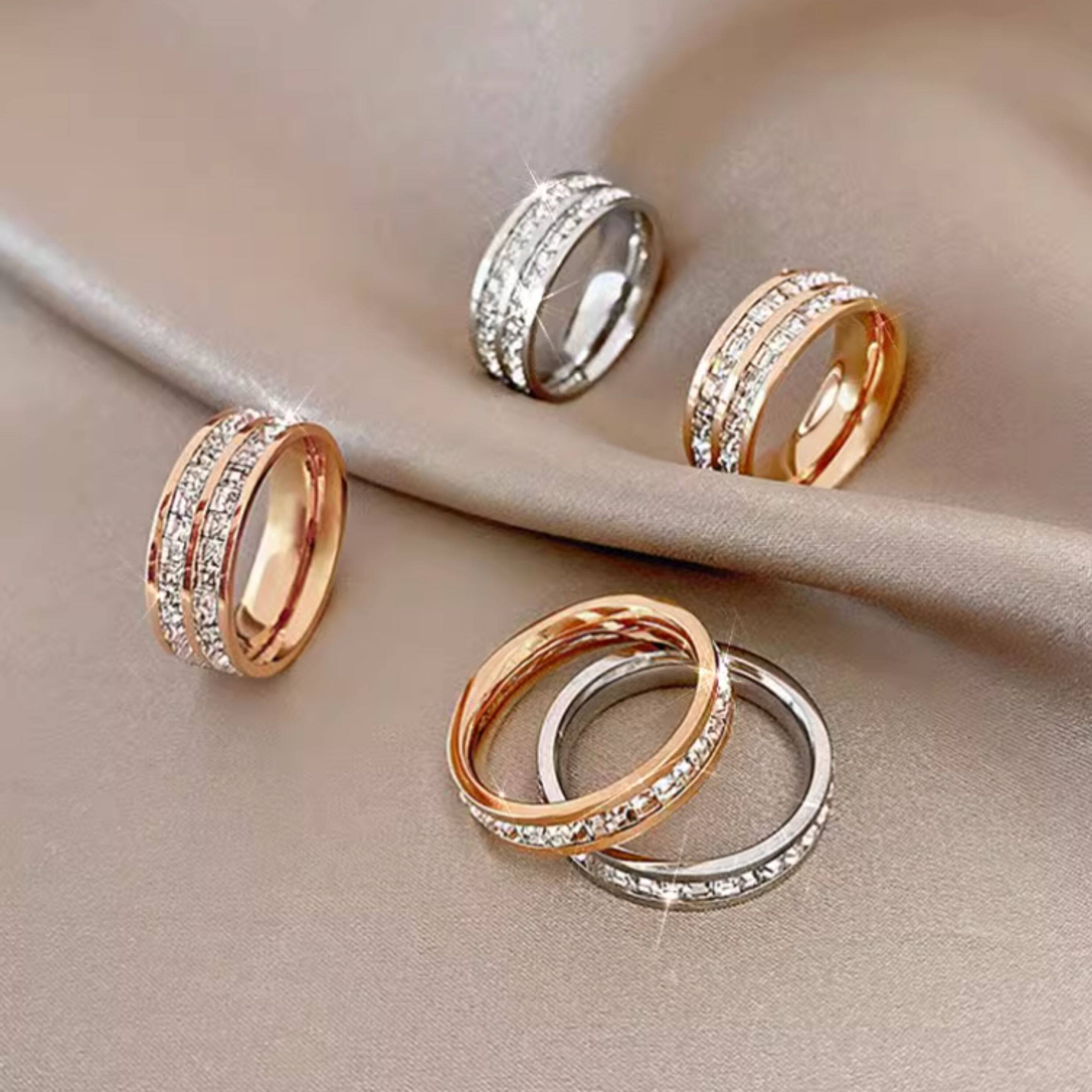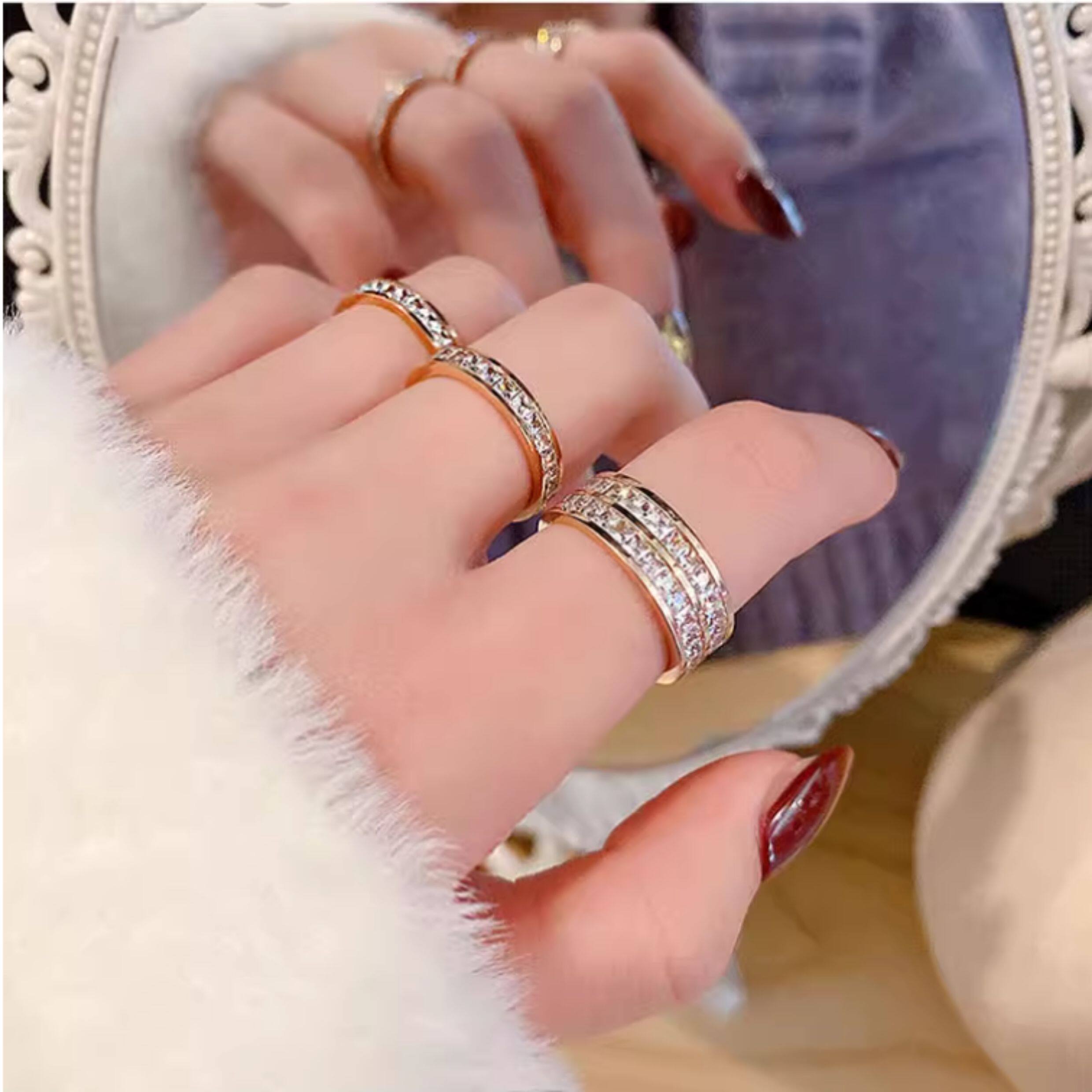 2026春夏新款輕奢時尚鑲鑽戒子男女鑽戒情侶不掉色鑽石戒指