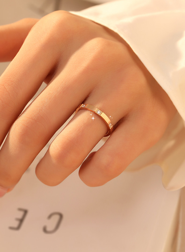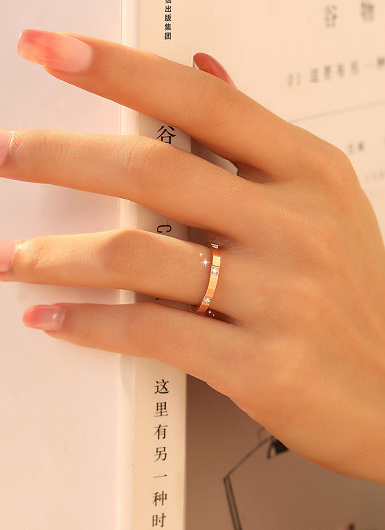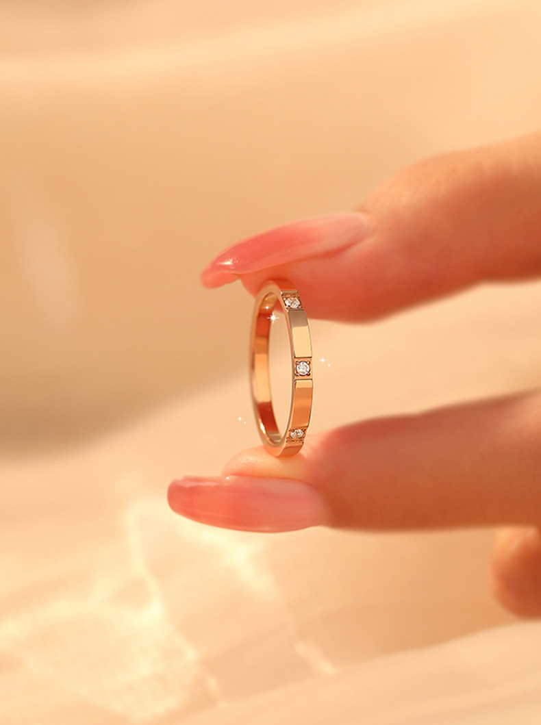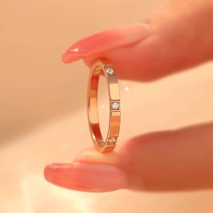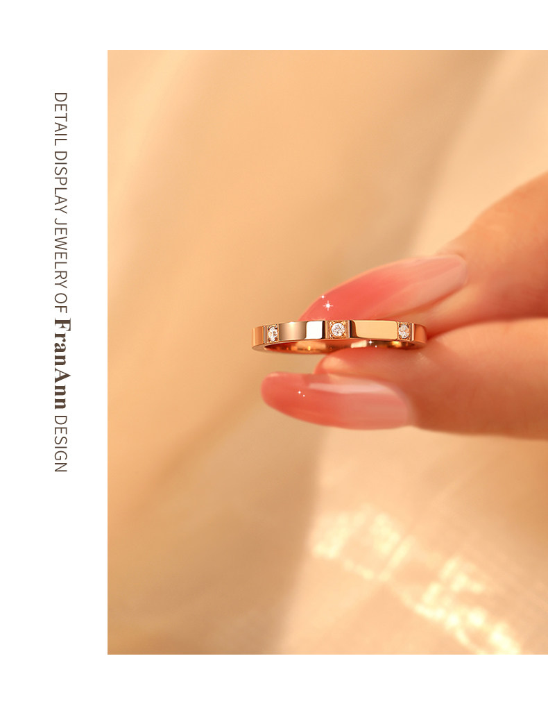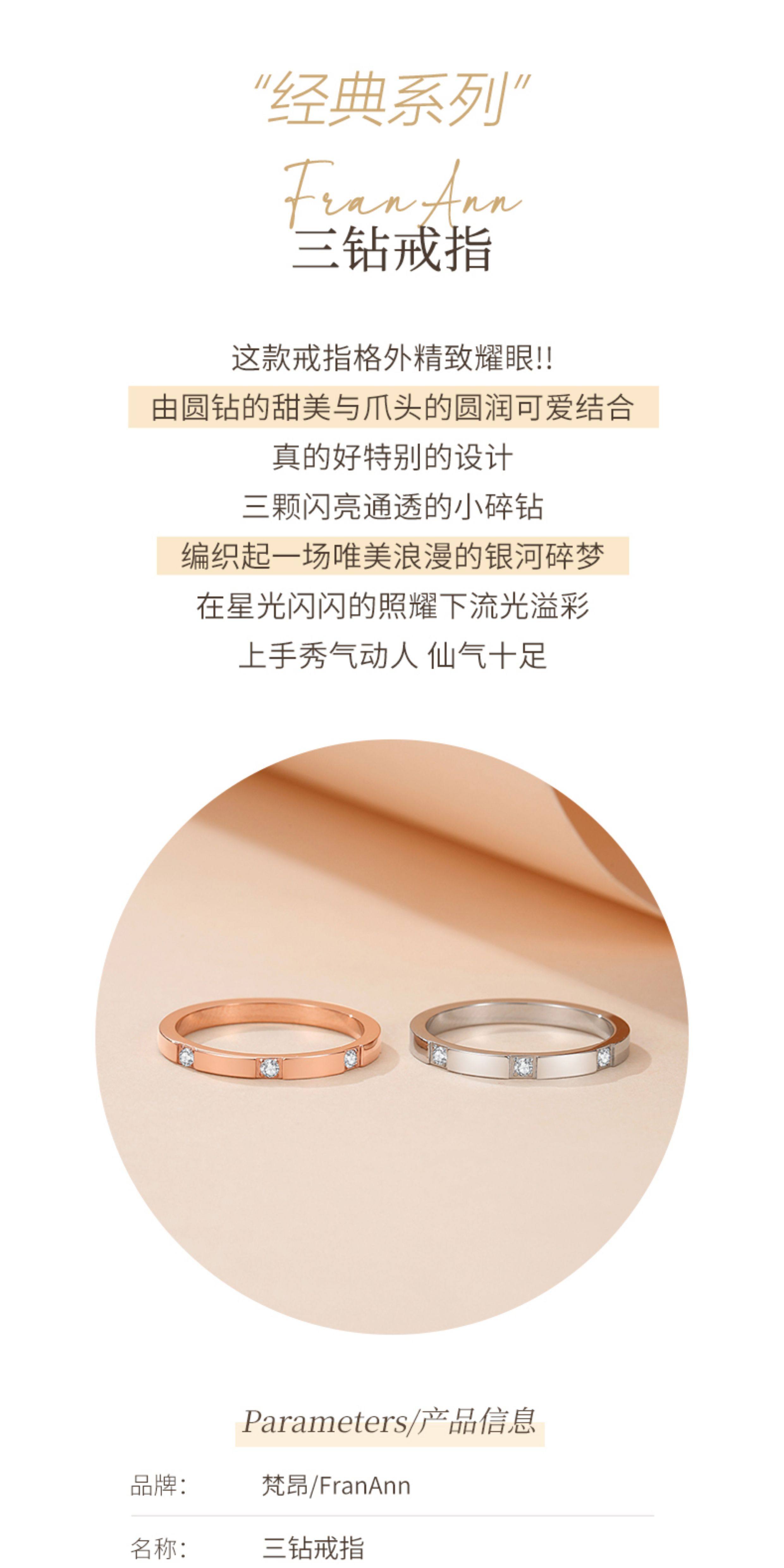 三鑽戒指碎鑽排鑽男女18K玫瑰金尾戒小指小衆設計輕奢高級感新款