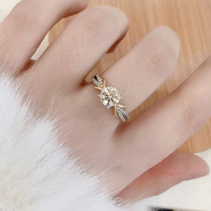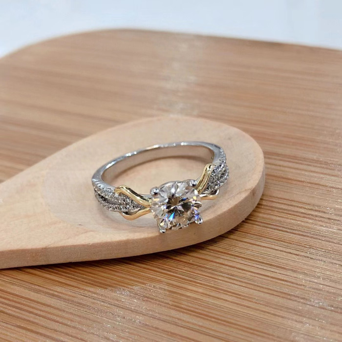莫桑石結緣款女士戒指雙色時尚款s925銀不過敏主石1克拉