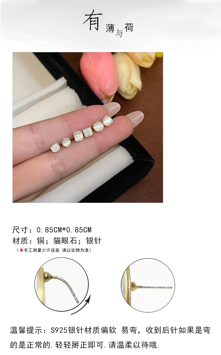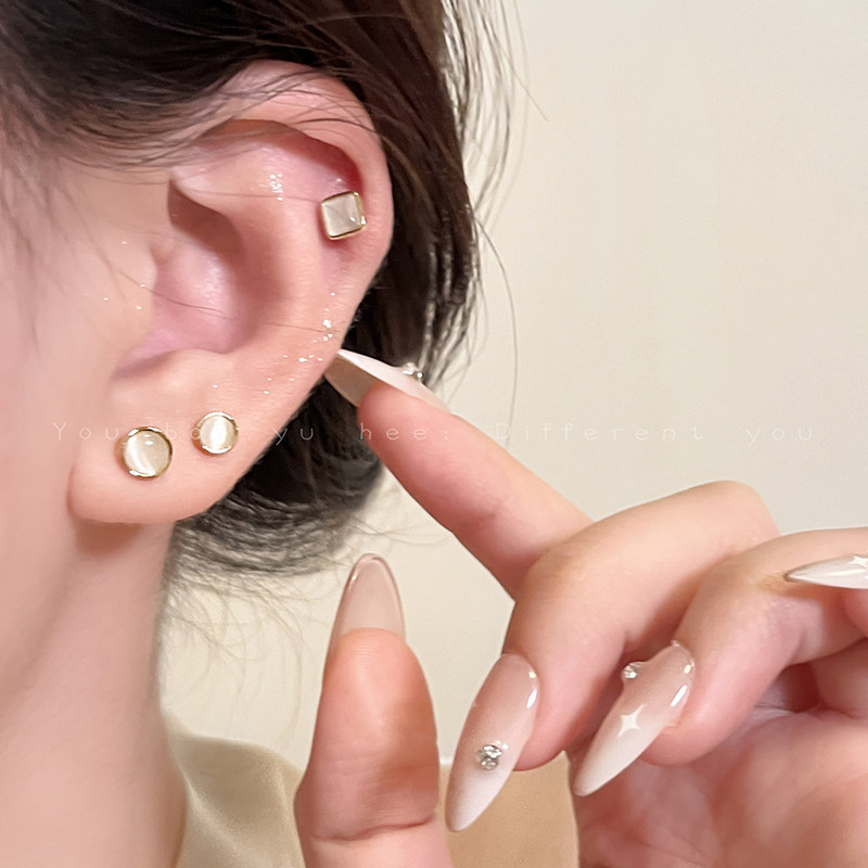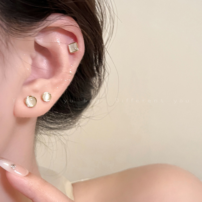 三對裝!貓眼石耳釘女輕奢高級感精緻耳環小巧養耳洞睡覺免摘耳飾