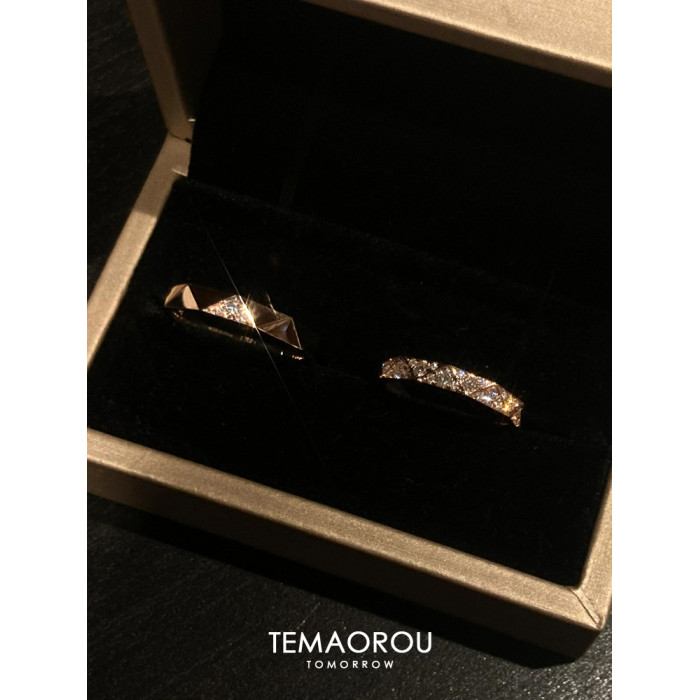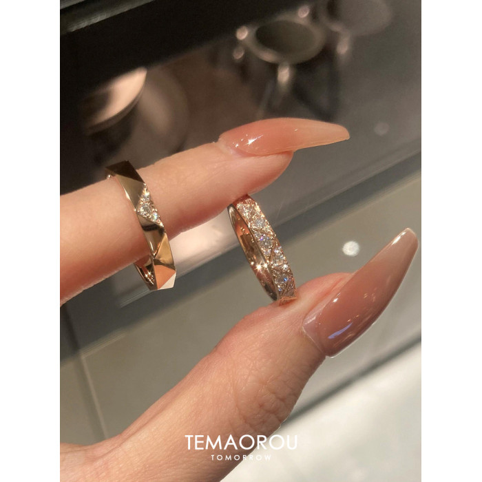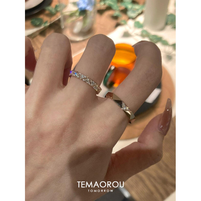 兩件套!爆閃滿鑽金色素圈光面戒指女款輕奢高級感曡戴食指戒對戒