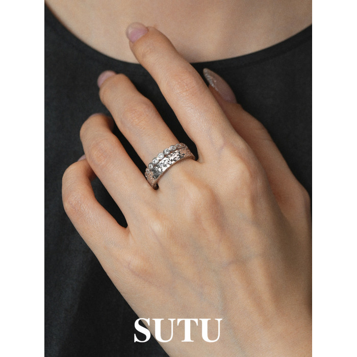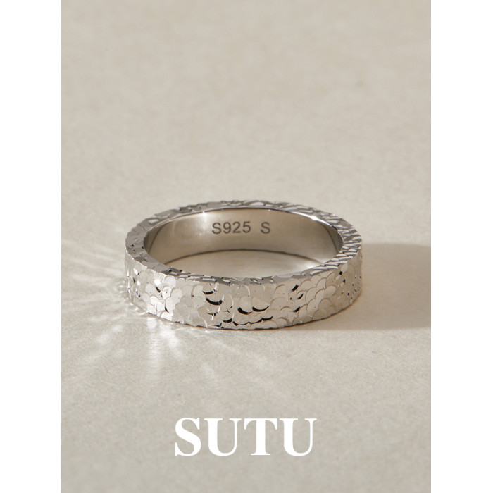 素圖戒指925銀碎冰冰魚鱗指環簡約小衆設計冷淡風輕奢高級食指戒