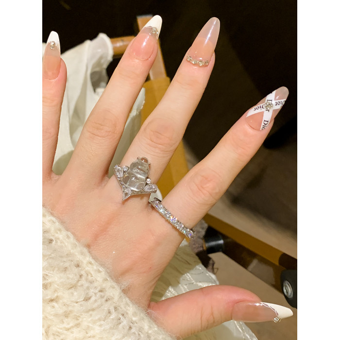 一眼淪陷!超閃滿鑽戒指女輕奢高級感尾戒素圈戒指女小衆設計指環